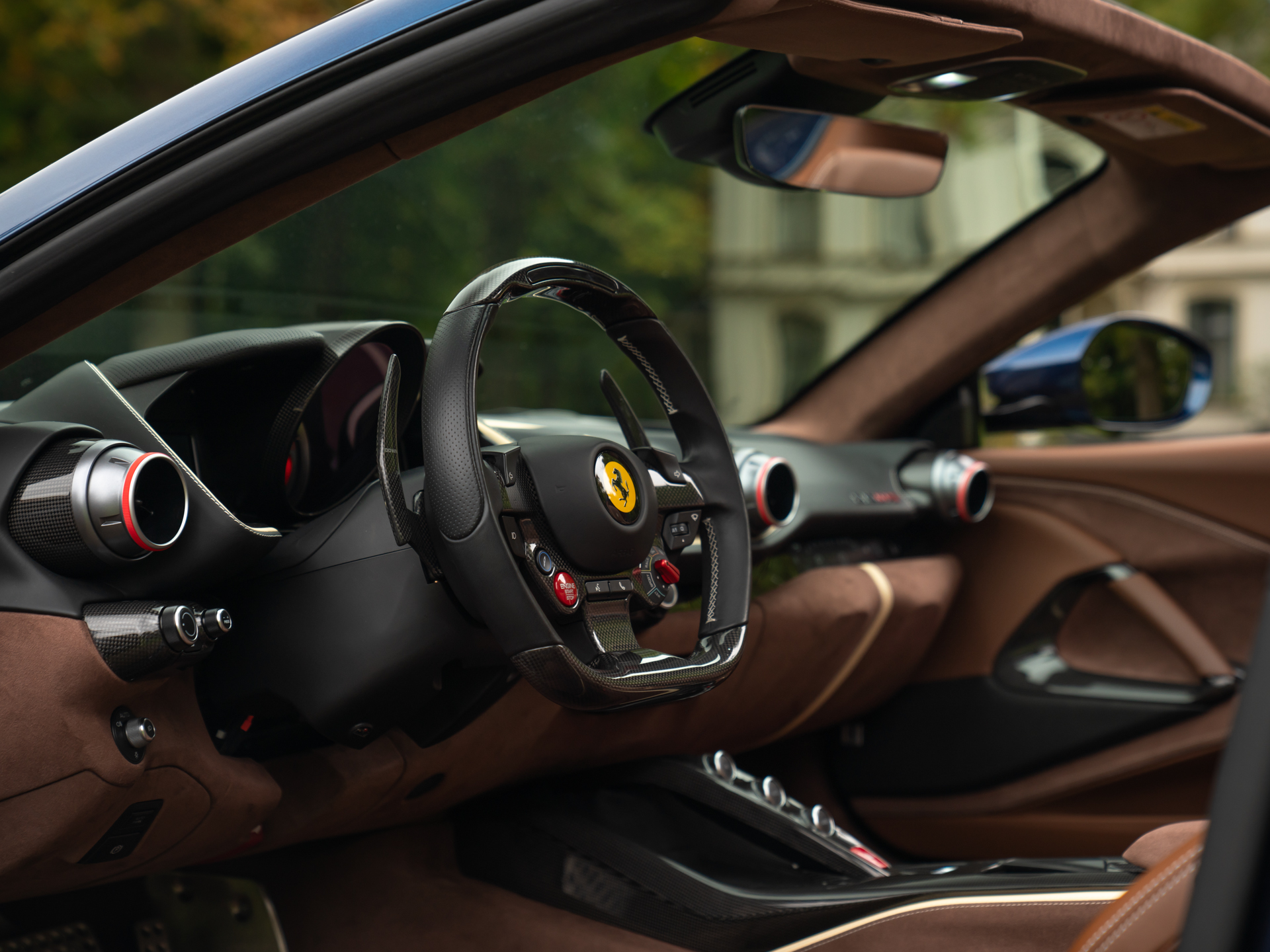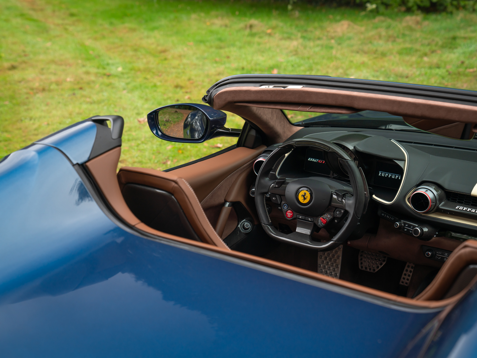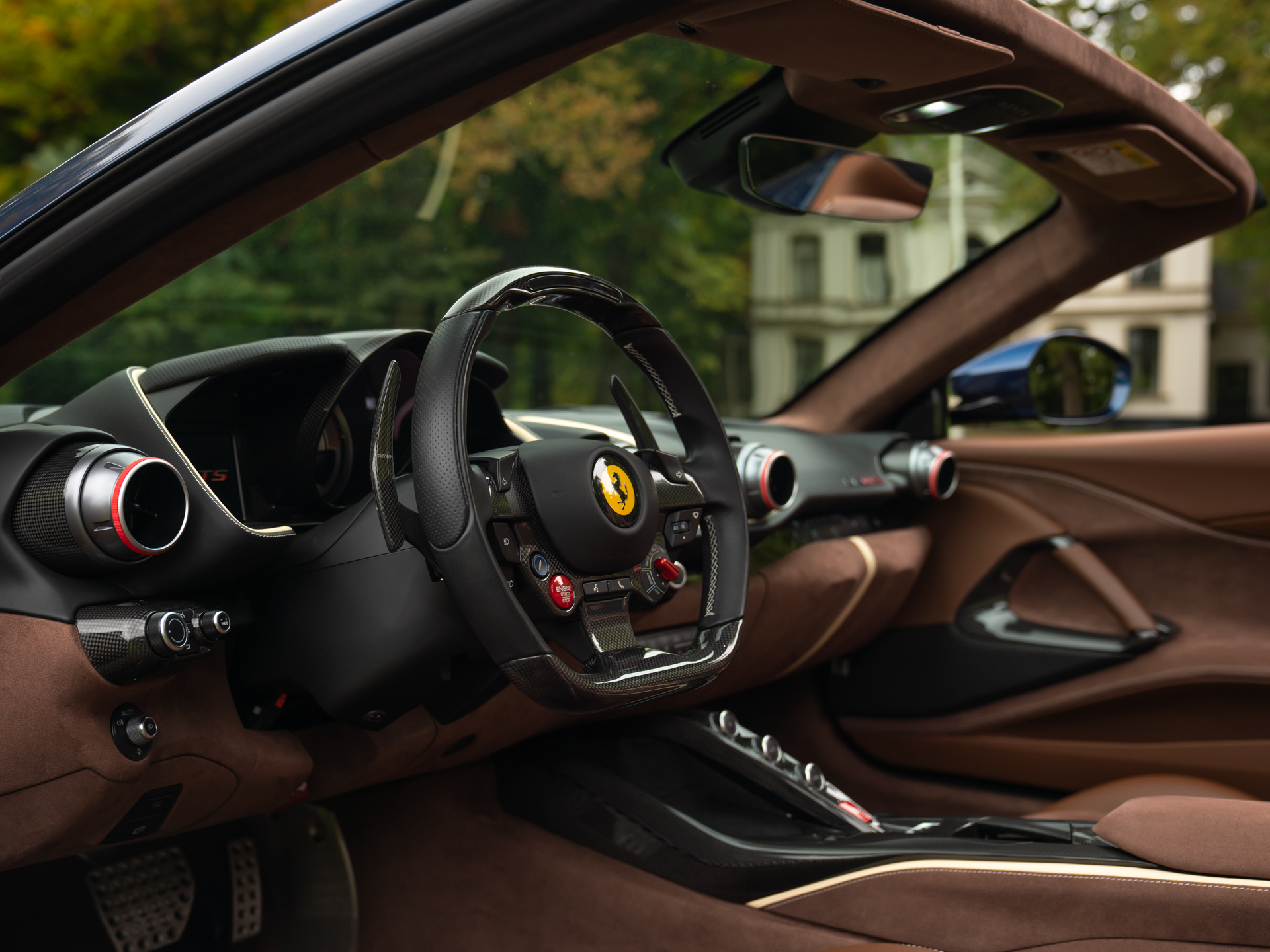 Vaak zie je het één óf het ander, maar deze bizar fraai samengestelde Ferrari 812 GTS ticks all the boxes! Zowel qua kleurstelling als qua optielijst is de 12-cilinder Ferrari absoluut uniek en overtreft hij alle verwachtingen. Dit maakt hem extra speciaal… De vraag “wat zoekt u in een auto” kunnen we in gesprek met geïnteresseerden dus wel achterwege laten. Deze GTS heeft werkelijk alles mee. Plus een beetje meer dan dat: zoveel carbon (vrijwel álle opties!) en Alcantara (tot en met de kofferruimte!) zagen we zelden op een Italiaanse schone. Laat staan op een model met een andere herkomst. De cijfers liegen er ook niet om: onze 812 GTS heeft 12 cilinders, 800 pk en slechts 20.000km.En dan te bedenken dat het mooiste nog moet komen… De combinatie Blu Swaters “Historical” lakwerk met Iroko bruine bekleding zou tijdens de bestelprocedure geen moment in ons opkomen. Dit zegt iets over de originaliteit. Maar ook over het feit dat we zouden zijn afgeleid door opties als Carbon Racing Seats, Surround View Camera, Passenger Display en JBL Audio. Scroll verder voor alle andere highlights van dit absolute hoogtepunt uit Maranello!