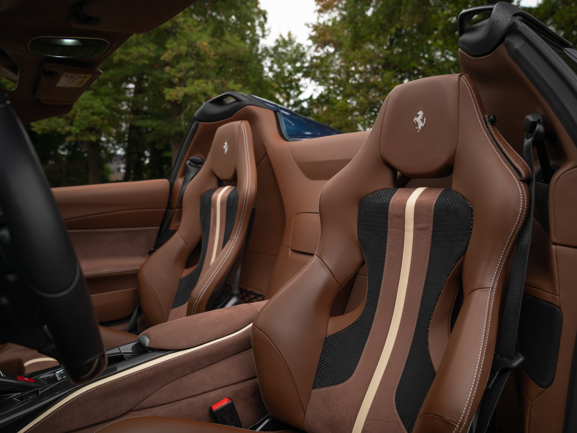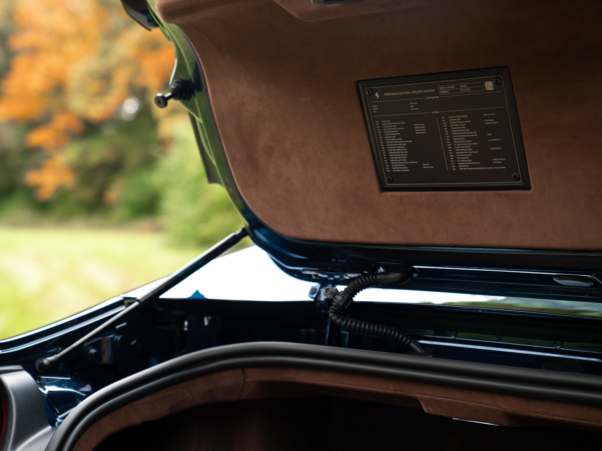 Kijkend naar de oogstrelende carrosserie van deze Ferrari 812 GTS krijgen we acuut flashbacks naar de 90s. Dat heeft allerminst iets met het design te maken. Des te meer met de Historical Color die deze hightech beauty opsiert: het Blu Swaters lakwerk was bovengemiddeld in trek onder kopers van modellen als de F355, 550 Maranello en 456 GT. Stuk voor stuk legendarische Ferrari’s, dus de keuze om ook de 812 GTS ermee uit te rusten is eigenlijk niet meer dan logisch. Net als de toevoeging van standaard aluminium remklauwen; de gekleurde versies werden pas na de jaren 90 een rage. Wat het model nog meer een klassieker van de toekomst maakt zijn de Airbrushed Shields. Was u uzelf nog niet verloren in de diep donkerblauwe gloed van de metallic koets, dan loopt het water u wel spontaan in de mond bij het zien van de gespoten logo’s in de voorste schermen van dit stijlvolle snelheidswonder. Als opvolger van de F12 Berlinetta lag de lat voor de 812 qua design extra hoog. Op de één of andere manier weet Ferrari de vele aerodynamische features dusdanig te verpakken dat ze optisch één vloeiend geheel vormen. De 20 inch zwarte velgen uitgezonderd uiteraard. Verder gebruikt deze GTS carbon als testosteron: hij kan er geen genoeg van krijgen. Sterker nog, vrijwel álle opties zitten erop!