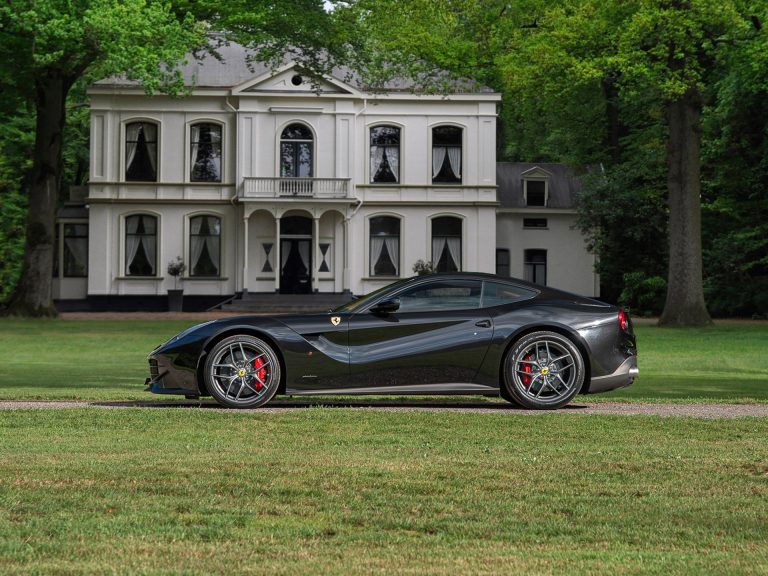 Wat ons betreft is de Ferrari F12 één van de best gelukte creaties uit de moderne koker van Maranello. De klassieke GT-configuratie gemend met compromisloze supercar looks maakt ‘m uniek in zijn soort. De stroomlijn is geavanceerd, de details zijn beeldschoon en de verhoudingen uitermate gespierd. Deze Berlinetta is progressief van aard zonder het historische Ferrari DNA te vergeten. Het strakke silhouet staat bol van de inkepingen en luchtsleuven die het koetswerk op hoge snelheid naar de grond toe duwen. Wat een downforce. Wat een beauty! Een black beauty nog wel, compleet met Nero Daytona kostuum. Verder staat de F12 op donkergrijze 20 inch Forged Diamond wielen met daarachter Rosso remklauwen die er qua tint bijna letterlijk uitknallen. Voeg daaraan toe het platte P Zero rubber plus de Scuderia Ferrari Shields op de voorste schermen en iedereen zal weten dat het dit luxepaard om pure performance te doen is. Het centraal boven de enorme diffusor geplaatste mistachterlicht à la Formule 1 is dan ook een statement dat we serieus dienen te nemen!