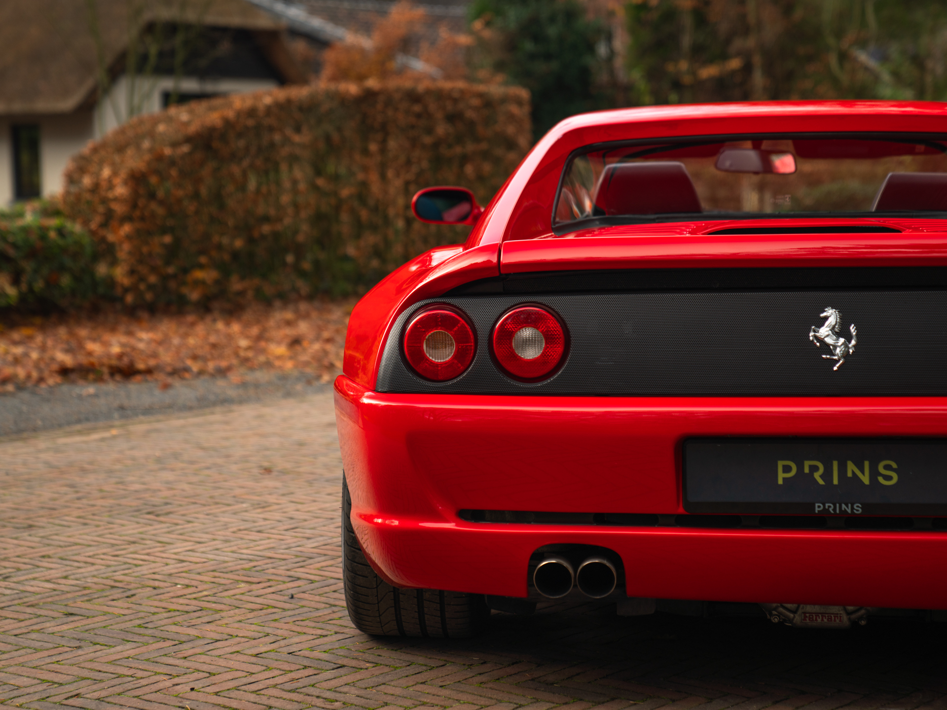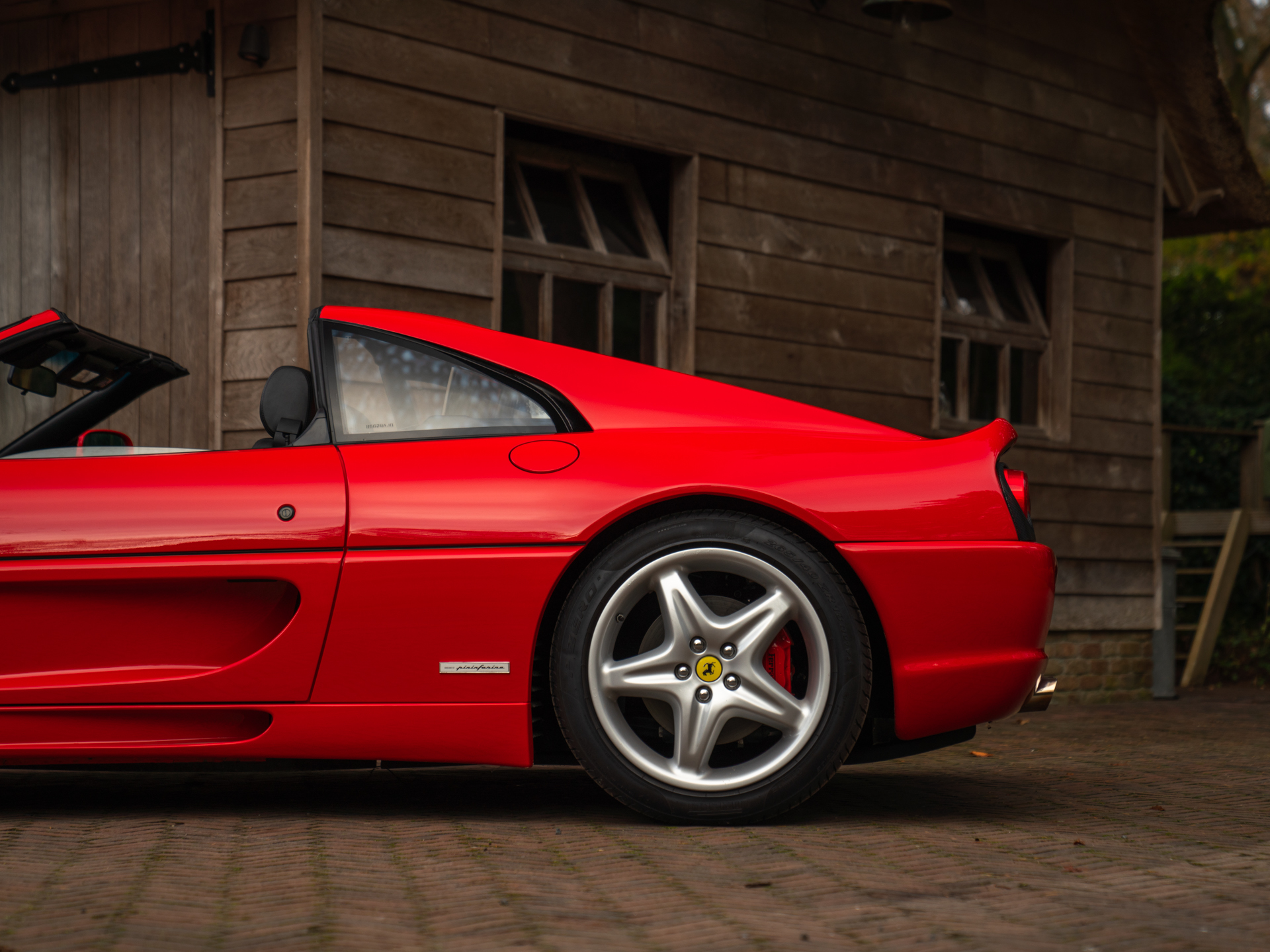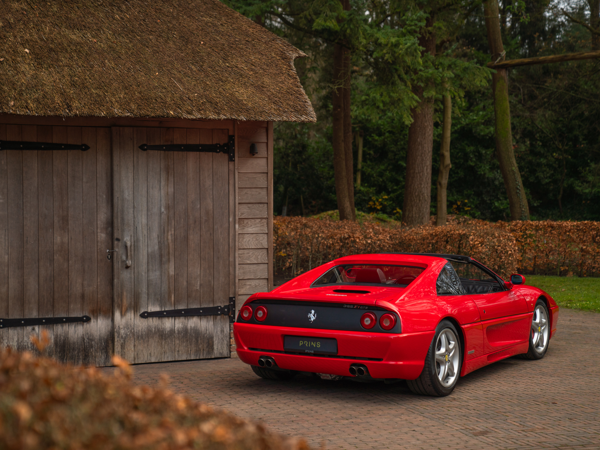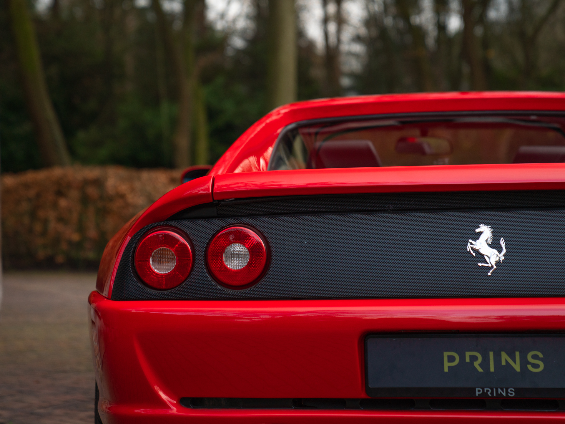 De Ferrari F355 is het boegbeeld van de 90s supercars. Met zijn opwindende design en opzwepende techniek heeft hij heel wat wanden bekleed en harten gestolen. Het model stond aan de basis van ontelbare jongensdromen en is een geboren klassieker. In deze Targa-configuratie is hij een stukje zeldzamer, en daarmee begerenswaardiger dan zijn dichte Berlinetta broer of dakloze bloedverwant genaamd Spider. Sterker nog, in combinatie met de F1-transmissie is de GTS tamelijk uniek: slechts 529 exemplaren zijn ervan gebouwd van de in totaal zo’n 11.000 geproduceerde F355’s. Dat deze relatief dichtbij huis nieuw op kenteken is gezet, maakt ’t verhaal extra speciaal. In 2020 verhuisde de Italiaan van Duitsland naar Nederland, om vervolgens in 2023 kennis te maken met het vakmanschap in onze werkplaats: de Prinselijke technici voorzagen de Ferrari klassieker van een koninklijke servicebeurt. Onderhuids is de F355 GTS dus tot in perfectie geprepareerd, om vervolgens compleet vertroeteld te worden in ons Hotel, waar de bella macchina de afgelopen 2 jaar verbleef.