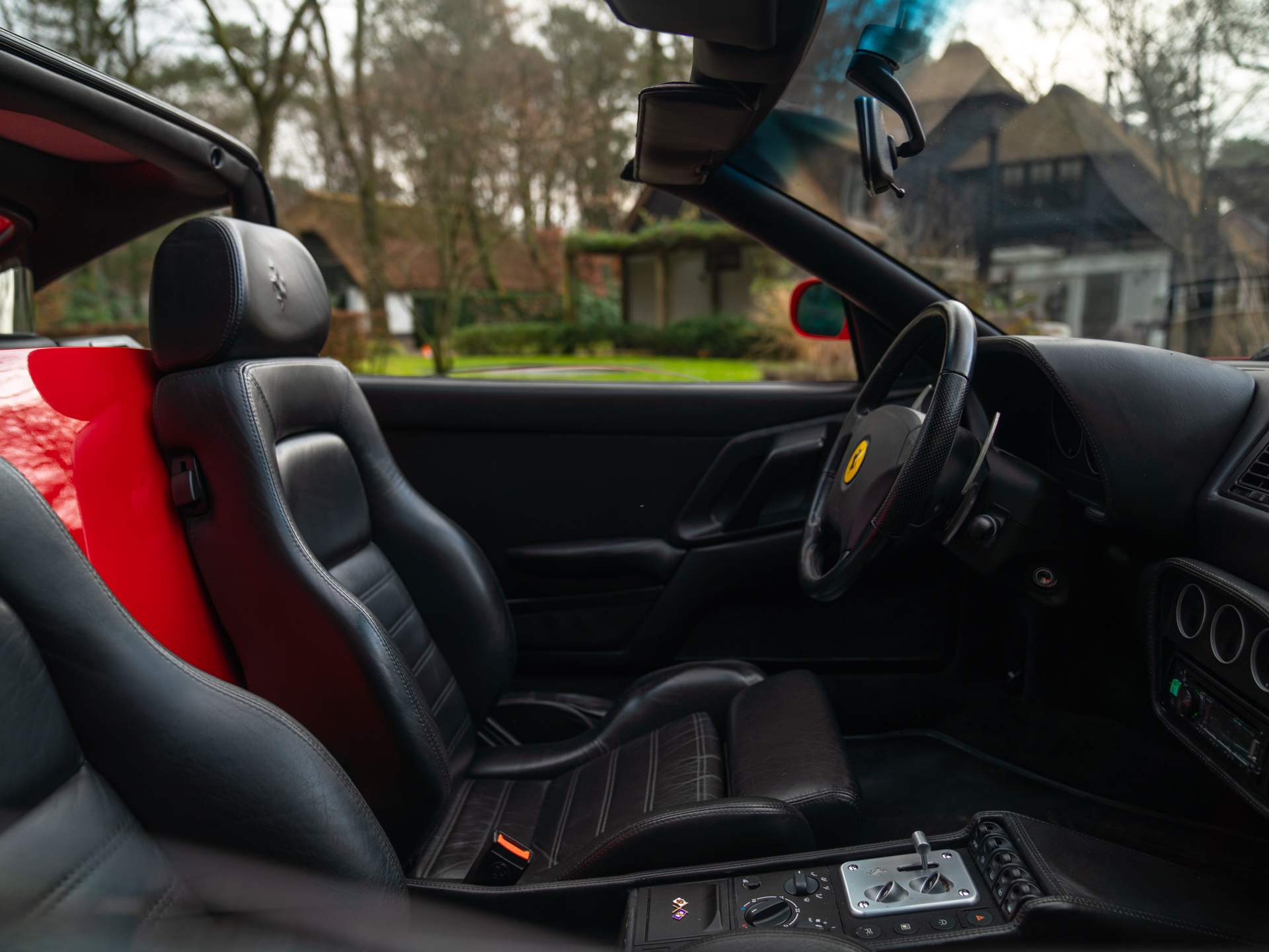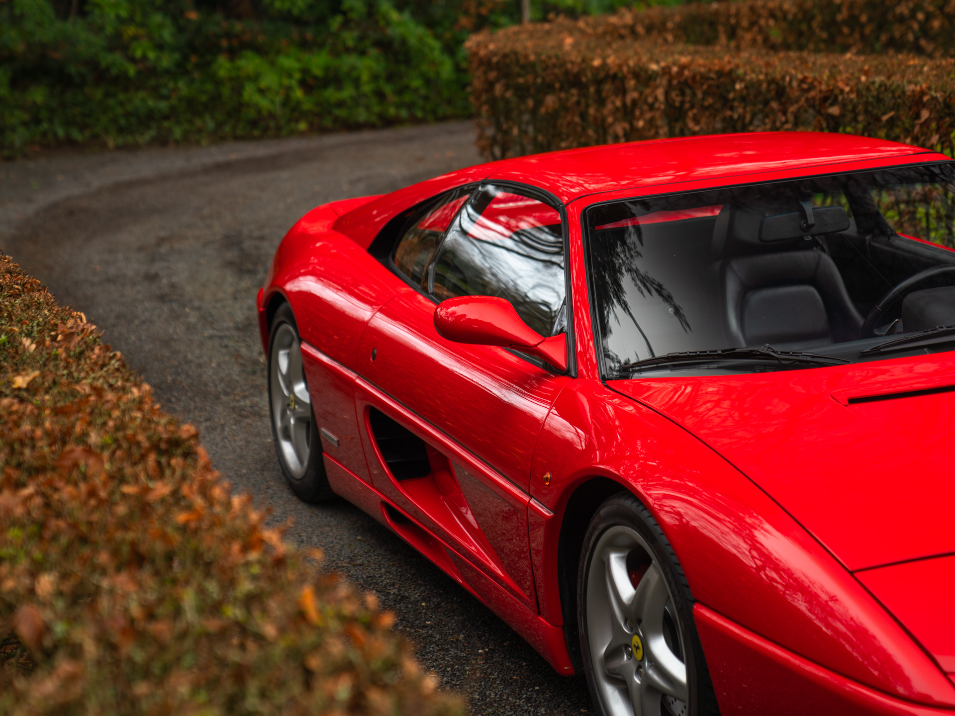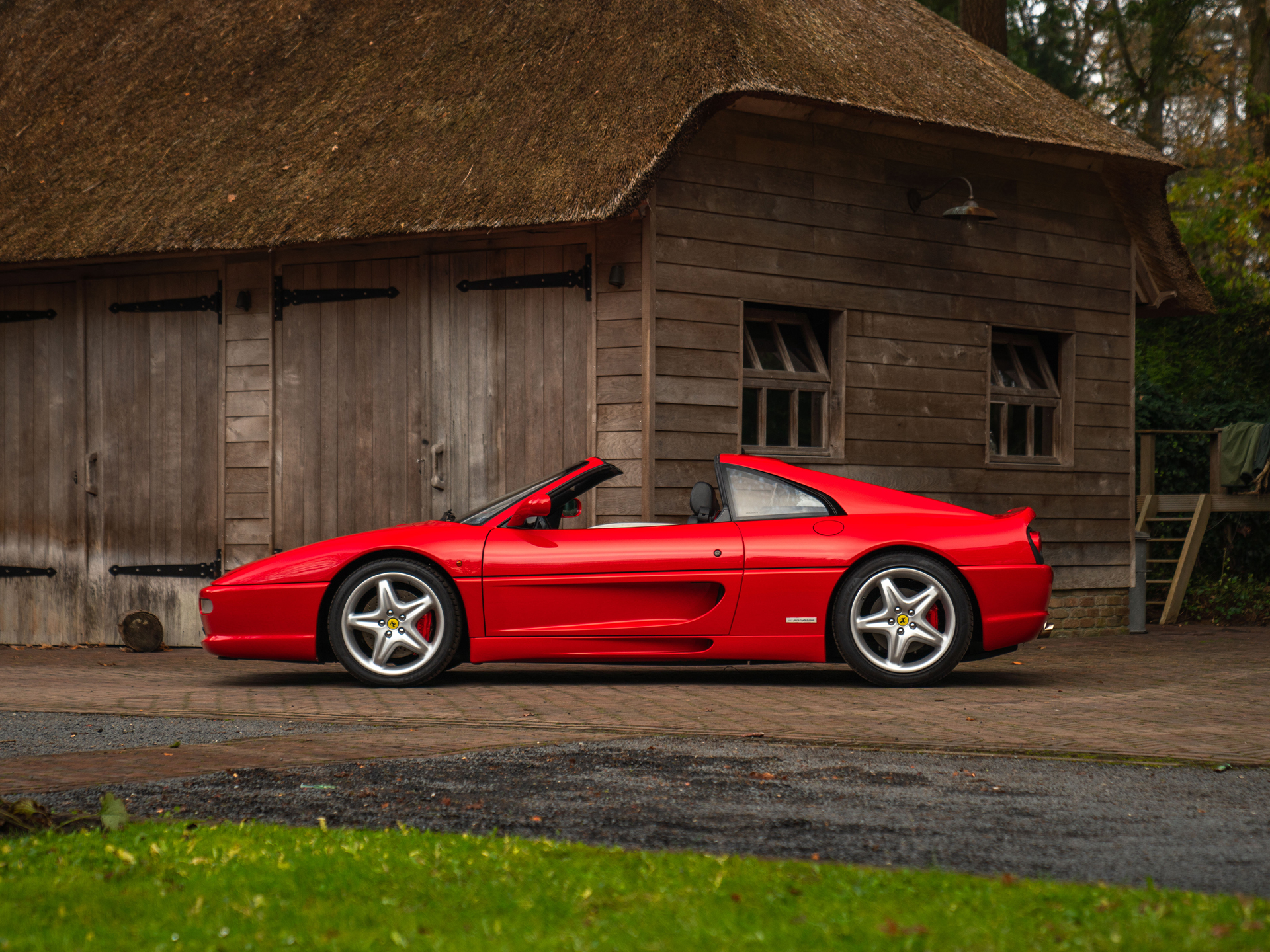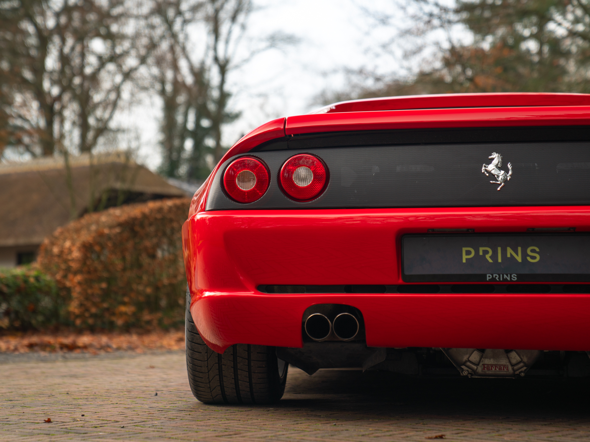 De Ferrari F355 is het boegbeeld van de 90s supercars. Met zijn opwindende design en opzwepende techniek heeft hij heel wat wanden bekleed en harten gestolen. Het model stond aan de basis van ontelbare jongensdromen en is een geboren klassieker. In deze Targa-configuratie is hij een stukje zeldzamer, en daarmee begerenswaardiger dan zijn dichte Berlinetta broer of dakloze bloedverwant genaamd Spider. Sterker nog, in combinatie met de F1-transmissie is de GTS tamelijk uniek: slechts 529 exemplaren zijn ervan gebouwd van de in totaal zo’n 11.000 geproduceerde F355’s. Dat deze relatief dichtbij huis nieuw op kenteken is gezet, maakt ’t verhaal extra speciaal. In 2020 verhuisde de Italiaan van Duitsland naar Nederland, om vervolgens in 2023 kennis te maken met het vakmanschap in onze werkplaats: de Prinselijke technici voorzagen de Ferrari klassieker van een koninklijke servicebeurt. Onderhuids is de F355 GTS dus tot in perfectie geprepareerd, om vervolgens compleet vertroeteld te worden in ons Hotel, waar de bella macchina de afgelopen 2 jaar verbleef.