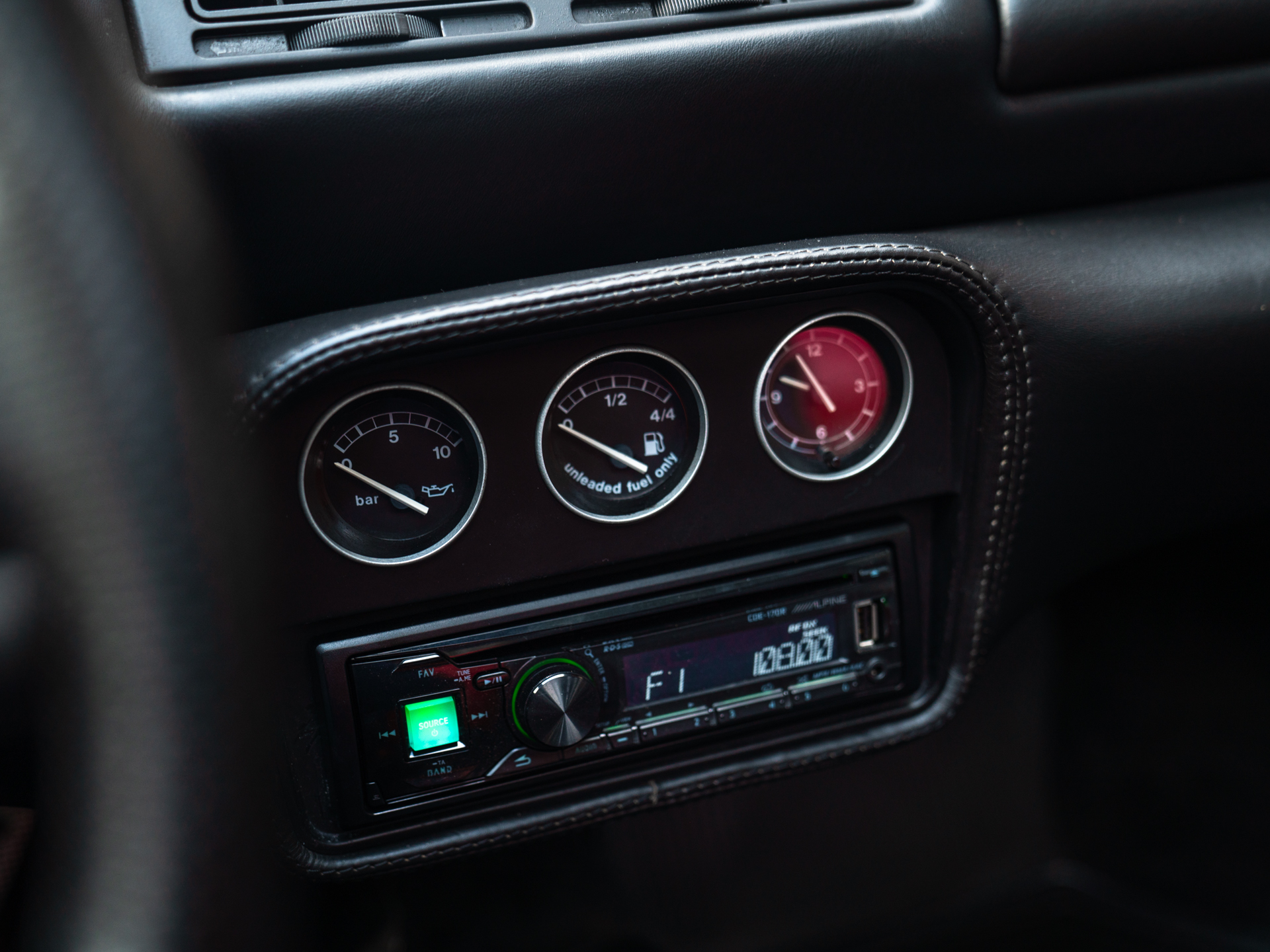 Een bijpassend interieur misschien? Kunt u ook afvinken: de met Nero lederen beklede cockpit is lekker no nonsens en ademt 90s stijl. Het compacte instrumentarium doet racy aan en bevat diepliggende kokers met daarin analoge tellers en meters voorzien van een subtiele chromen rand. In de brede tunnelconsole schitteren een aluminium pook en H-patroon door afwezigheid. In plaats daarvan hebben aluminium schakelflippers zich achter het stuurwiel verschuild. Deze knipoog naar de F1 is meteen een reden om de Alpine radio-/CD-speler volledig links te laten liggen. Immers, uiteindelijk is er slechts één ding waar u naar wilt luisteren…