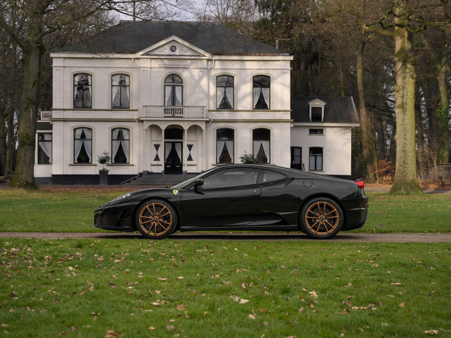 Voetbalfan of niet, de voormalig FC Barcelona spits had wel smaak als het om auto’s gaat. Eto’o koos voor een ‘ingetogen’ Nero Daytona carrosserielak, maar voegde hier het ene na het andere spectaculaire foefje aan toe. Samen zorgen ze voor een zeer exclusieve livery: de Golden NART Racing Stripes (Extracampionario!) en 20 inch Forged Gold Rims vormen simpelweg een gouden match. Helemaal wild worden we ook van de vele lichtgewicht exterieurdetails: de Ferrari 430 Scuderia is uitgerust met een carbon frontspoiler, carbon spiegels, carbon achterpaneel (onder de achterlichten) en zelfs de naafkapjes van de wielen zijn carbon-made. Op een Ferrari Scuderia horen Scuderia Ferrari Shields, dat moge duidelijk zijn. Het klinkt misschien tegenstrijdig, maar de grote luchtinlaten in het front, aangedikte sideskirts en opgetrokken diffusor horen eveneens bij de afgeslankte F430 show. De dubbele sportuitlaat met een enkel eindstuk aan beide zijden van het kenteken achter, zit er natuurlijk niet enkel voor show. Het draagt daadwerkelijk bij aan de verpletterende performance van de 430. Inclusief bijpassend geluid… Kippenvel!