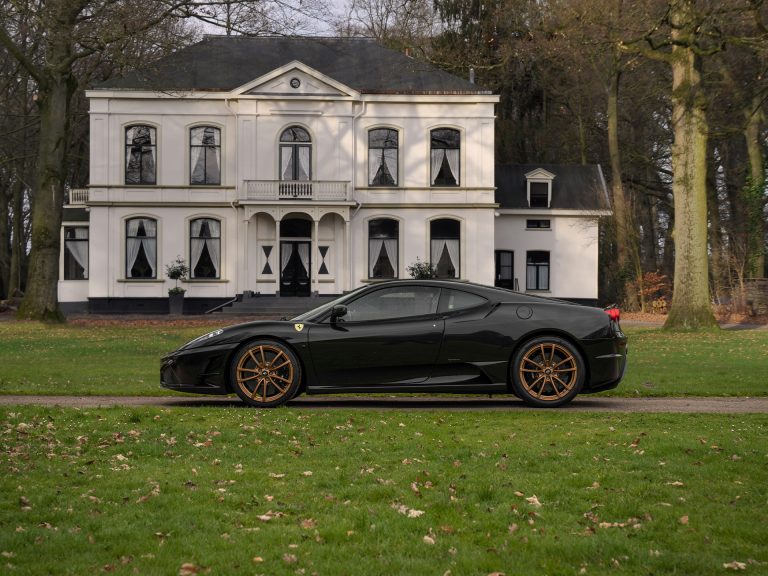 Altijd al eens in de schoenen willen staan van een wereldberoemde profvoetballer? Niet? Dan gaat het feit dat deze absoluut uniek samengestelde Ferrari 430 Scuderia nieuw aan Samuel Eto’o is geleverd u niet over de streep trekken. Wel heeft u goud in handen: deze Scud beschikt namelijk over gouden racestrepen, wielen en dito stiksels, gecombineerd met talloze carbon in- en exterieurdetails. Waaronder de Racing Seats, Driver Zone + LED’s en motorruimte. Via Spanje kwam de straatversie van de race-geprepareerde F430 in handen terecht van een Duitse liefhebber, gevolgd door een waarachtig Ferrari verzamelaar waarvan we diverse pareltjes uit de collectie hebben kunnen bemachtigen. Deze zwarte krijgt in totaal 510 paardenkrachten te verwerken op de achteras en schreeuwt het uit van genot als de atmosferische V8 in de carbon machinekamer tot het uiterste wordt gedreven. Zó hoort een compromisloze supercar eruit te zien én te klinken!