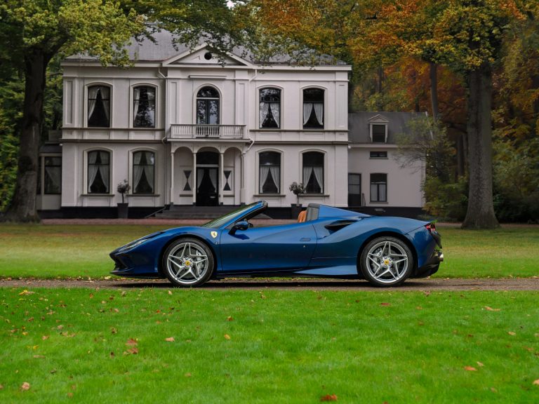 Oog voor traditie. Dat is wat de oorspronkelijke eigenaar van deze meesterlijk samengestelde, hypermoderne macchina moet hebben gehad. Alles aan de Ferrari F8 Spider is namelijk hightech, hoogst geavanceerd en vlijmscherp. Behalve de spec: die is zo traditioneel als het maar kan. En precies dat maakt dit exemplaar super zeldzaam en uitzonderlijk mooi. We bedoelen, Blu Tour de France lakwerk met Cuoio leder en heel veel alcantara; zo zagen we de open F8 nog nooit! Het contrast met de andere highlights is dan ook even groot als beeldschoon: veel carbon – inclusief Driver Zone, adaptieve koplampen, full electric seats, een Suspension Lifter en Surround View camera zijn inbegrepen. Handig dat overzicht rondom de auto, al zullen de ogen vooral naar voren gericht zijn met 720 pk aan turbo-V8 power onder de rechtervoet…