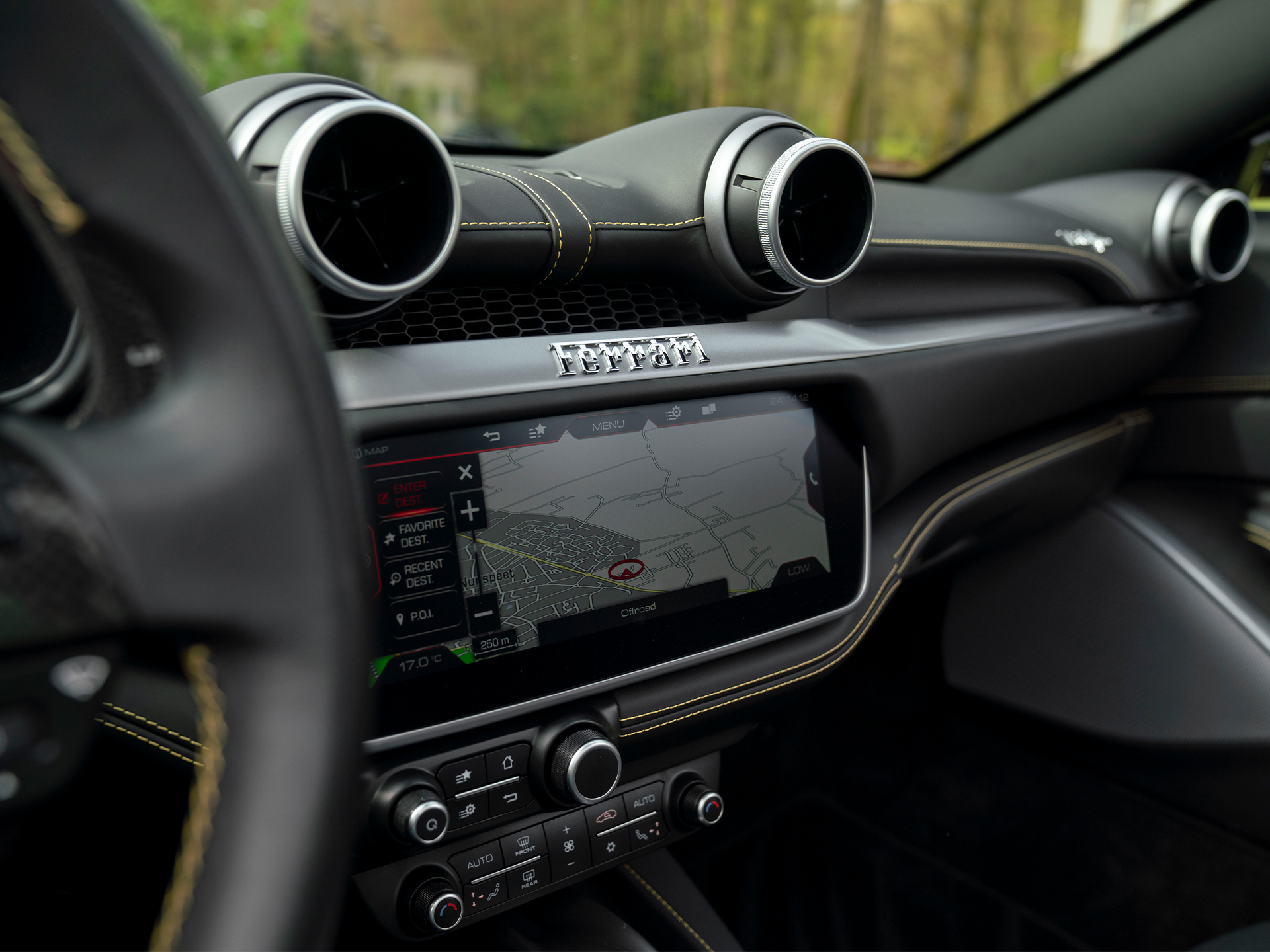 Behalve bloedsnel, is het comfortabel vertoeven in de Ferrari Portofino. De stoelen zien er niet alleen stijlvol uit, ze laten zich ook in stijl bedienen: volledig elektrisch. De Magneride Dual Mode Suspension en originele sportuitlaat zijn eveneens als extra af-fabriek gemonteerd. Bluetooth, Climate Control en parkeersensoren completeren de standaard rijke uitrusting van dit blauwe wonder op wielen. Ook is er voor de muziekliefhebber een high-end audio upgrade gedaan door Clanck t.w.v. €4.500,-. Al hebben wij genoeg aan de roffel van de V8!