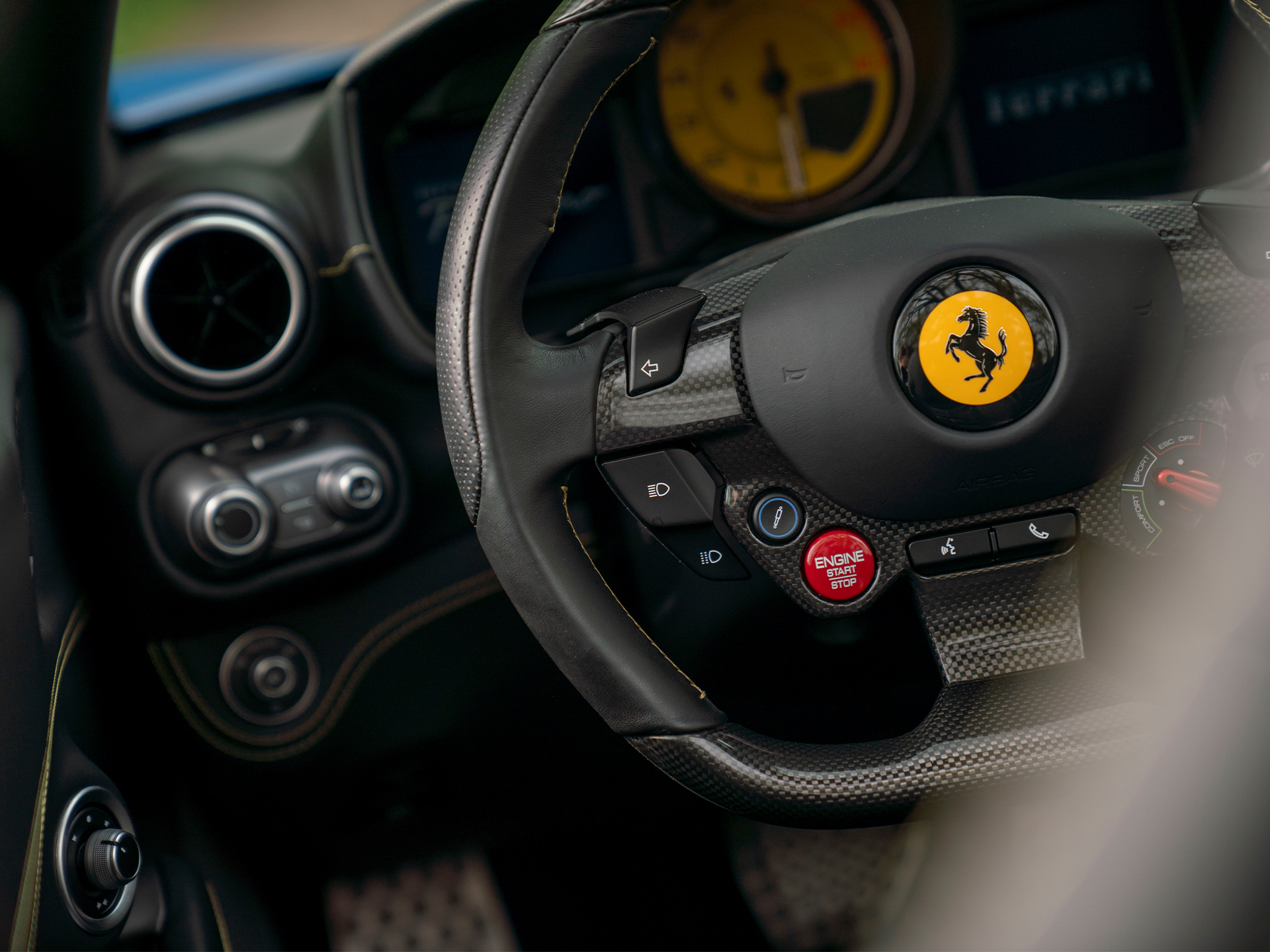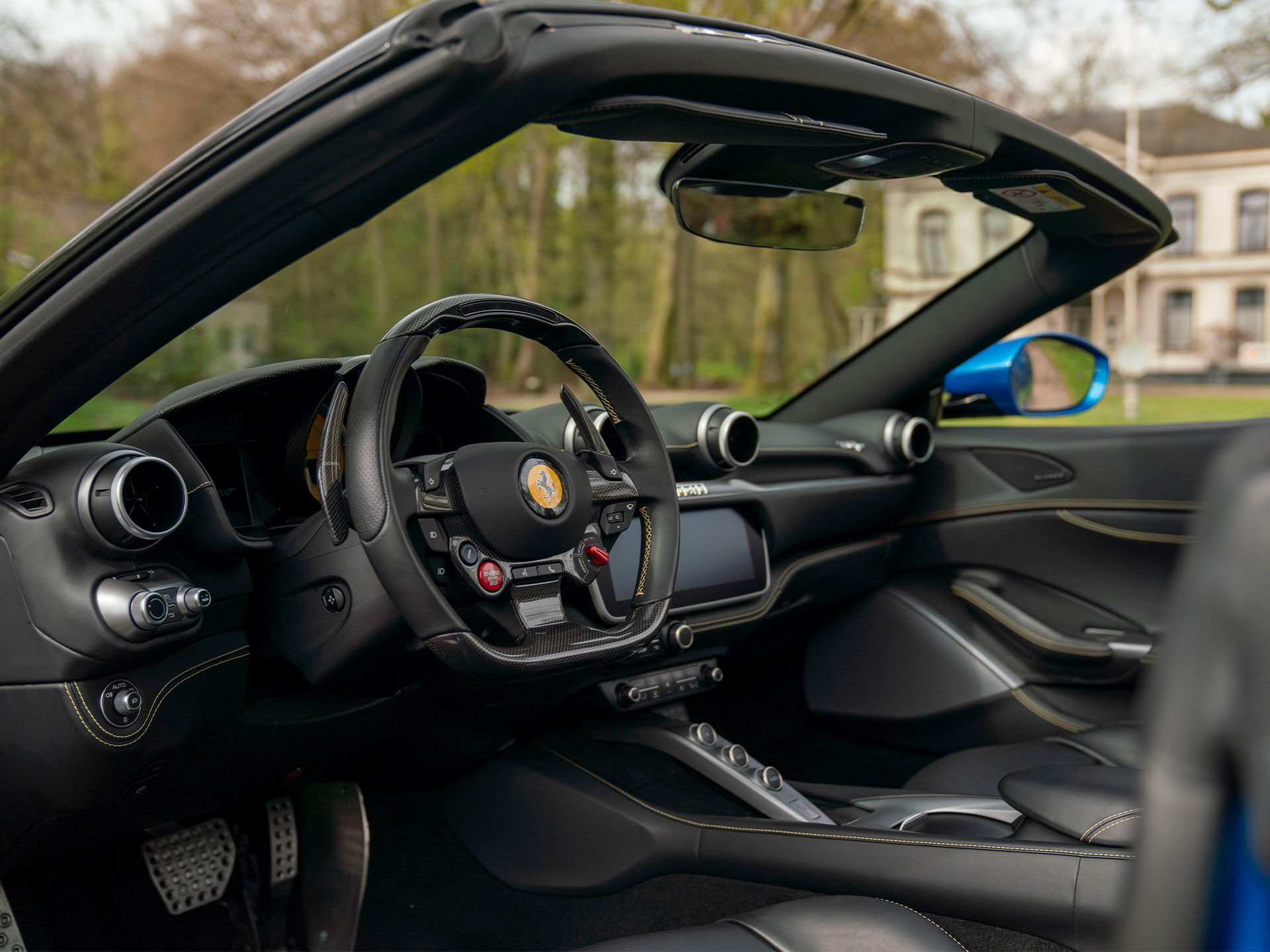 Bella Blu! De toevoeging “Corsa” kennen we allemaal van raspaarden die knalrood kleuren, maar voor deze absoluut unieke Ferrari Portofino uit 2020 maakte Maranello wat graag een uitzondering. Het betreft hier een zogenaamde “Atelier car”. Wij leverden de auto aan zijn een goede klant, die (te) weinig gebruik maakte van deze Blu Beauty. Redenen om daar verandering in te brengen zijn er in overvloed. Met in de hoofdrol de 600 pk sterke bi-turbo Ferrari V8. Aan de andere kant, naar een Portofino in deze briljante samenstelling – inclusief full-electric Daytona Seats, Carbon Driver Zone met LED’s, Magneride, sportuitlaat en heel veel meer, blijf je kijken.