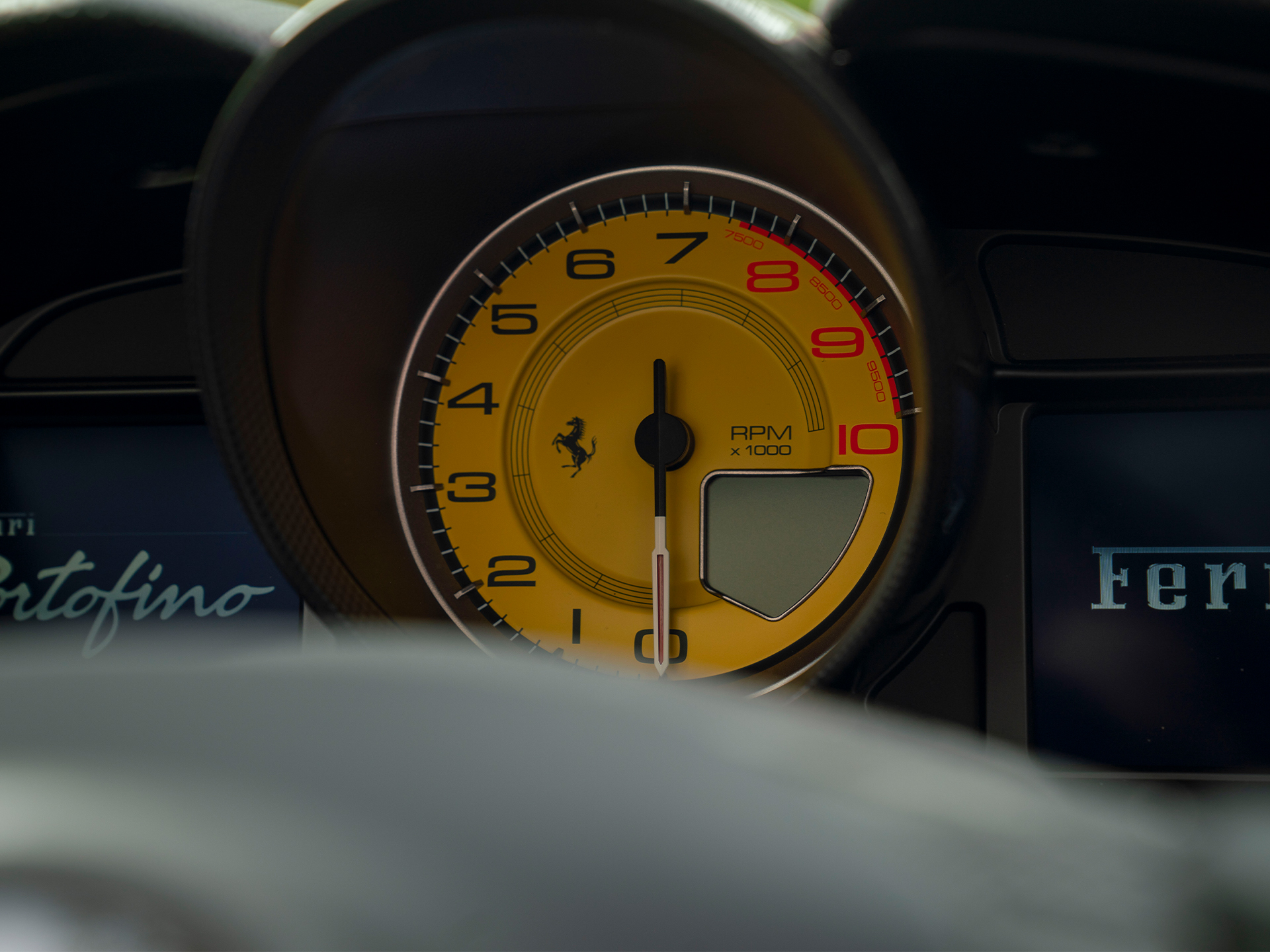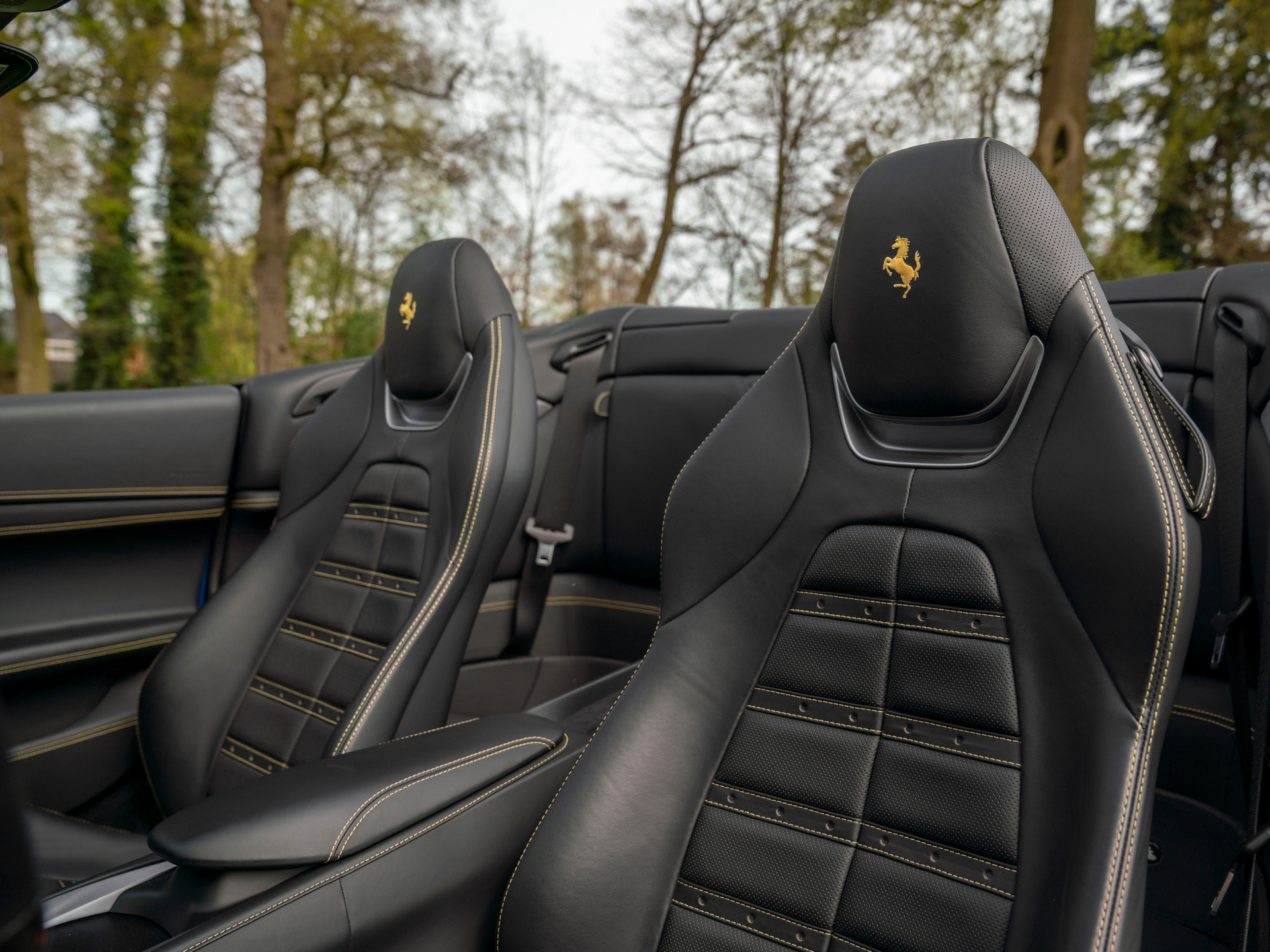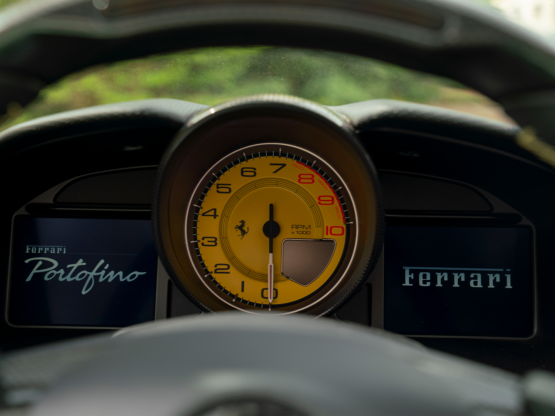 De Ferrari Portofino, hoe modern en hightech ook, is misschien wel de meest traditionele Ferrari uit onze Prins stal. Nergens zijn de verwijzingen naar voorganger California – en daarmee ook naar de gelijknamige klassieker uit de jaren 60 namelijk zó groot. Maar er zijn meer knipogen naar de rijke Ferrari historie: let bijvoorbeeld op de Nero lederen stoelen, geheel in Daytona Style. Precies, dat is die andere rijdende legende uit Maranello. Gestikte paarden in de hoofdsteunen steken samen met Giallo stiksels opvallend (en) fraai af bij de zwarte cockpit. Voor extra contrast zorgen de Carbon Driver Zone inclusief LED Shift Indicator, de aluminium sportpedalen en natuurlijk de Giallo rev-counter. Erg racy voor een classy supercar!