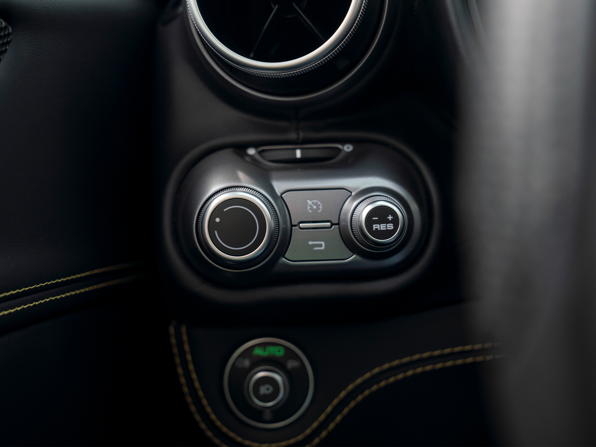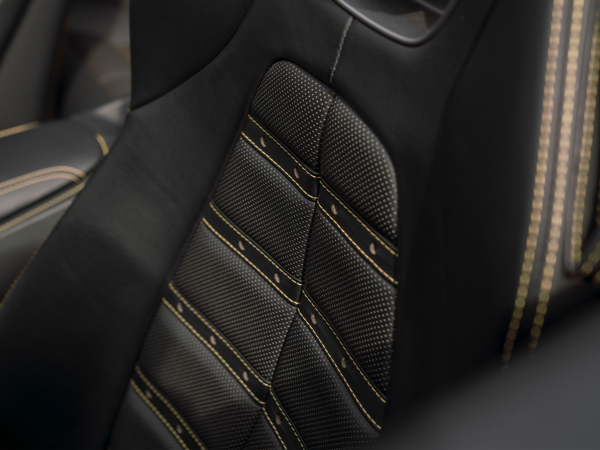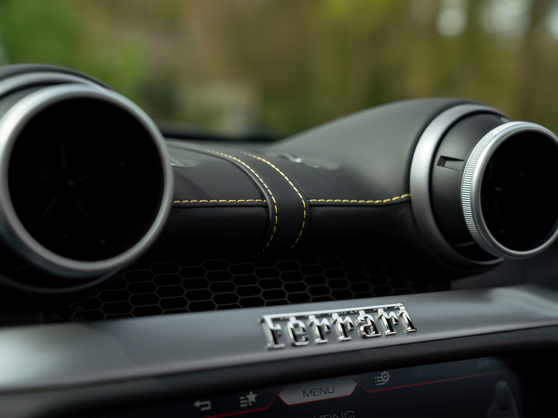 De Ferrari Portofino, hoe modern en hightech ook, is misschien wel de meest traditionele Ferrari uit onze Prins stal. Nergens zijn de verwijzingen naar voorganger California – en daarmee ook naar de gelijknamige klassieker uit de jaren 60 namelijk zó groot. Maar er zijn meer knipogen naar de rijke Ferrari historie: let bijvoorbeeld op de Nero lederen stoelen, geheel in Daytona Style. Precies, dat is die andere rijdende legende uit Maranello. Gestikte paarden in de hoofdsteunen steken samen met Giallo stiksels opvallend (en) fraai af bij de zwarte cockpit. Voor extra contrast zorgen de Carbon Driver Zone inclusief LED Shift Indicator, de aluminium sportpedalen en natuurlijk de Giallo rev-counter. Erg racy voor een classy supercar!