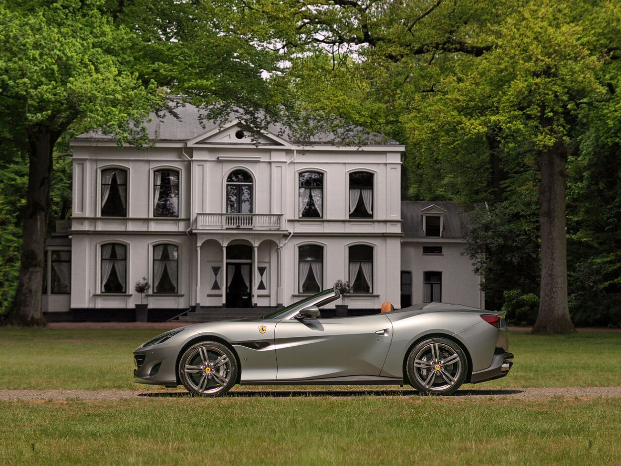 Bij de introductie wachtte de Ferrari Portofino een zware taak: het succes van voorganger California (T) in stijl voortzetten. Dat zijn grote schoenen om te vullen. Maar de Portofino maakt het waar: Ferrari koos bewust voor een evolutie en geen revolutie. Het model kent immers vele invloeden uit het verleden, dus qua design kon en mocht het roer absoluut niet rigoureus om. Zo komt de grille met chromen spijlen rechtstreeks bij de California vandaan. Toch zag Ferrari kans om haar classy coupé-convertible in een eigentijds kostuum te steken. Let bijvoorbeeld op het vloeiende lijnenspel, de scherp gesneden koplampunits en vooruitstrevende aerodynamica in de vorm van prachtige inkepingen achter de voorwielen en dito openingen aan de binnenzijde van de ronde achterlichten. Niet geheel toevallig zijn juist laatstgenoemde twee details in dit geval gemaakt van koolstofvezel. Andere onderdelen uit het Carbon Exterior Pack zijn de frontlipspoiler en sideskirts. Zwarte uitlaatstukken steken ondertussen net zo fraai af bij de Grigio Titanio carrosserielak als de carbon elementen én de antracietkleurige wielen. De remklauwen zijn ‘behouden’ aluminiumkleurig, de Scuderia Ferrari Shields – uiteraard – hartstikke geel.