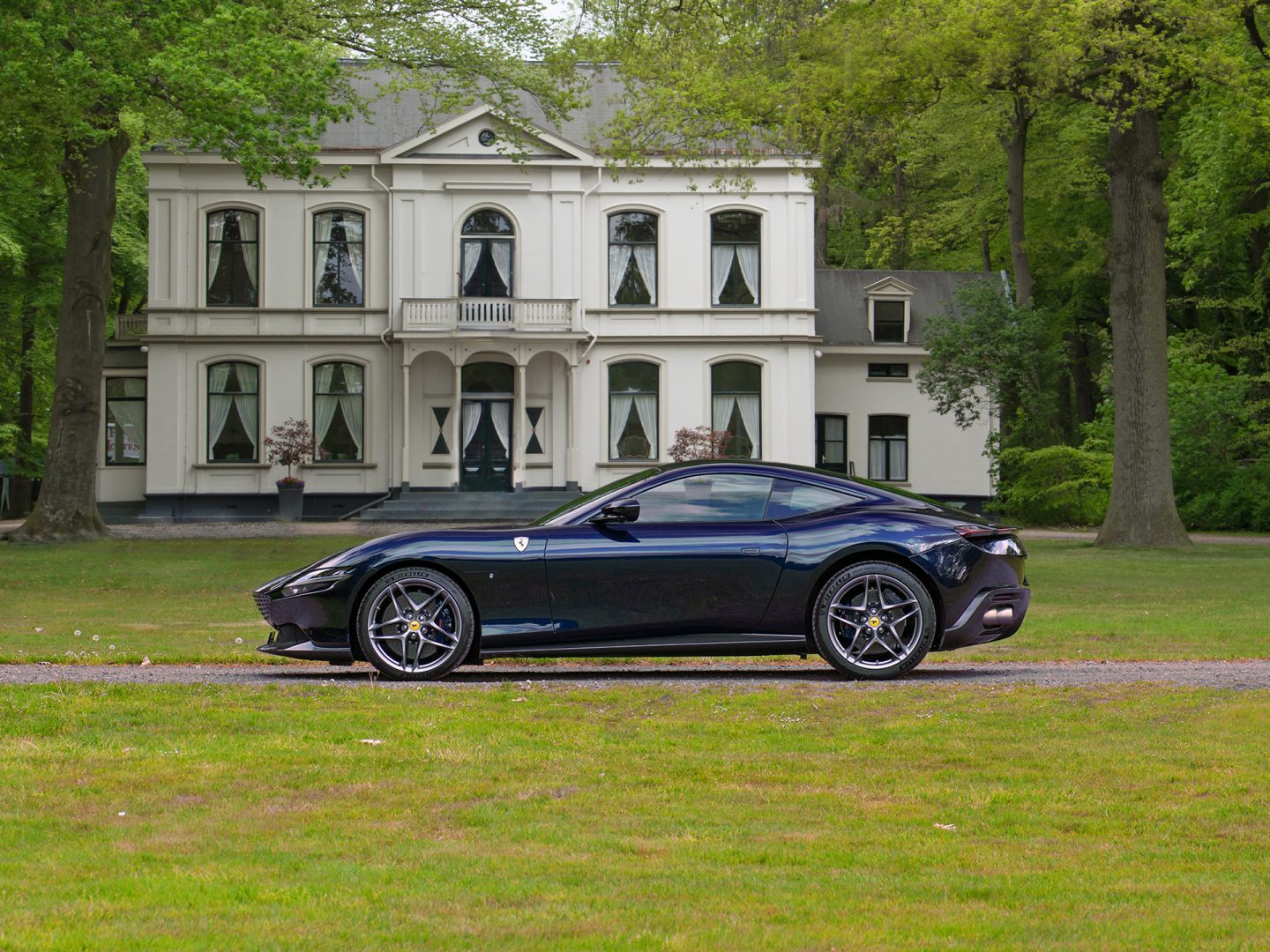 Deze fraaie Italiaan is niet lichtblauw, niet donkerblauw, maar Blu America. De hoeveelheid licht die op de wonderschone carrosserie schijnt is bepalend voor hoe fel de Extra-Range Colour op uw netvlies staat gebrand. Het is een kleur die altijd kan en toch dermate onderscheidend is dat het geen sterveling ontgaat. Maar wat wil je ook, als het een beauty als de Ferrari Roma opsiert? Het nieuwe model uit Maranello blinkt uit in tijdloze elegantie; geen lijn werd te veel getekend en tóch oogt het koetswerk hypermodern. Knap hè? Laat dat maar aan topontwerper Flavio Manzoni over. De extreem smaakvol gestileerde GT staat bol van de stijlvolle details, waaronder Matte Grey wielen met erachter Blu America remklauwen en eromheen vers (slechts 8.200 km!) Michelin rubber. Voorts bevat de Roma sportuitlaat eindstukken, maar dé verrassing is toch wel het vele carbon: dit begint al met de frontlipspoiler en wordt doorgetrokken tot en met de sideskirts (over de gehele breedte), diffusor achter en zelfs de kofferklep is deels afgewerkt met lichtgewicht koolstofvezel. Kortom, een luxe paradepaardje dat zijn pure race-DNA wat graag showt.