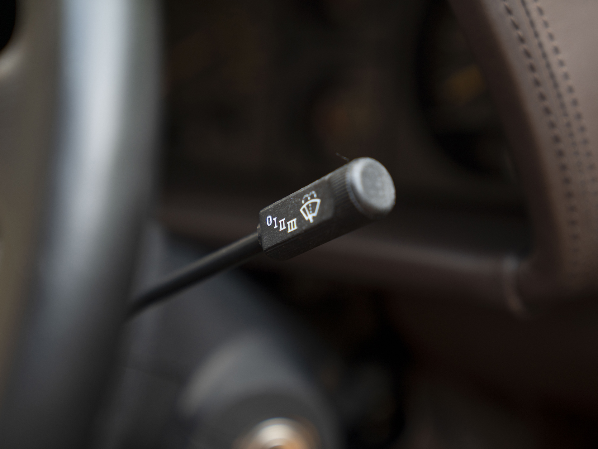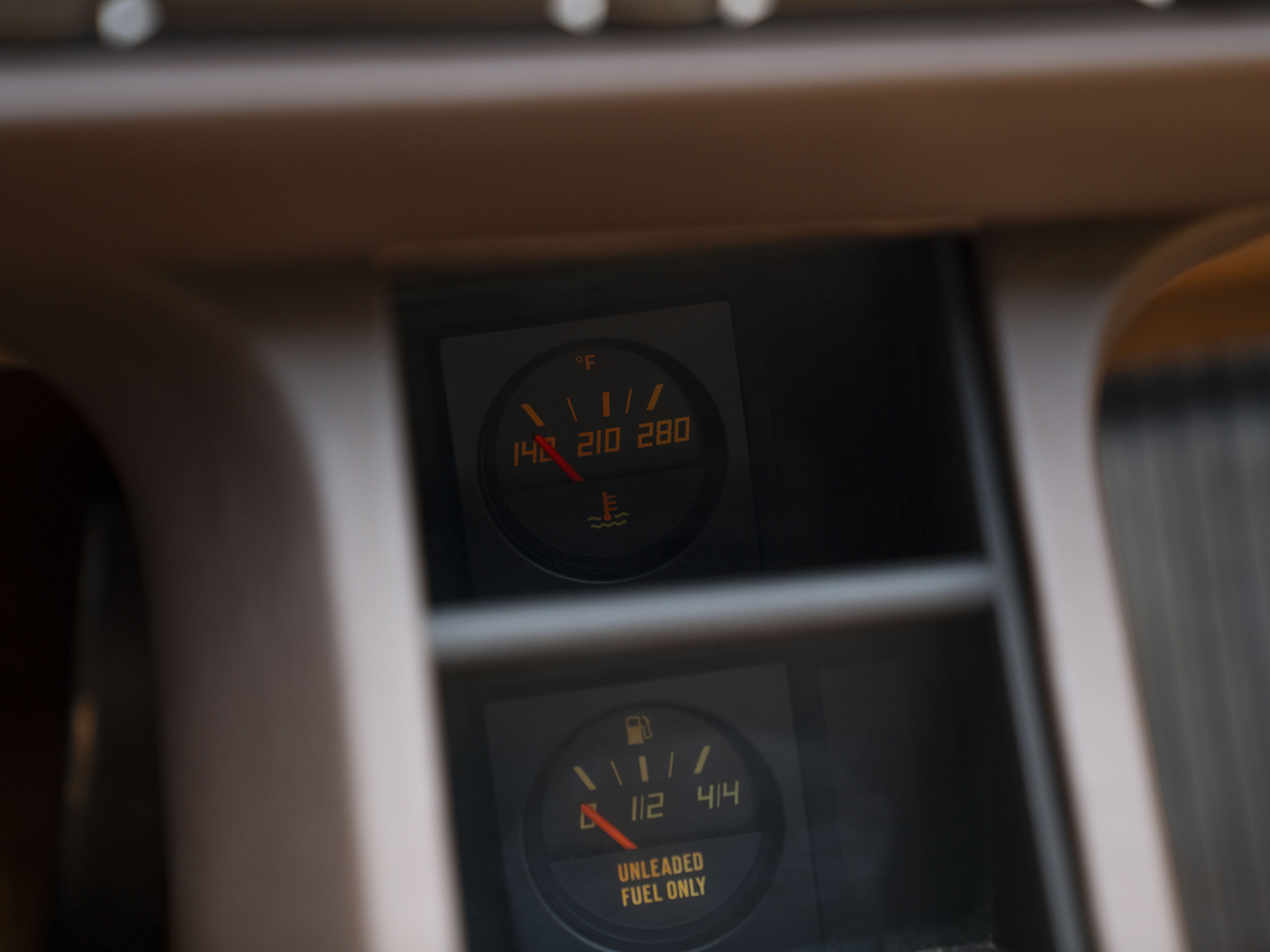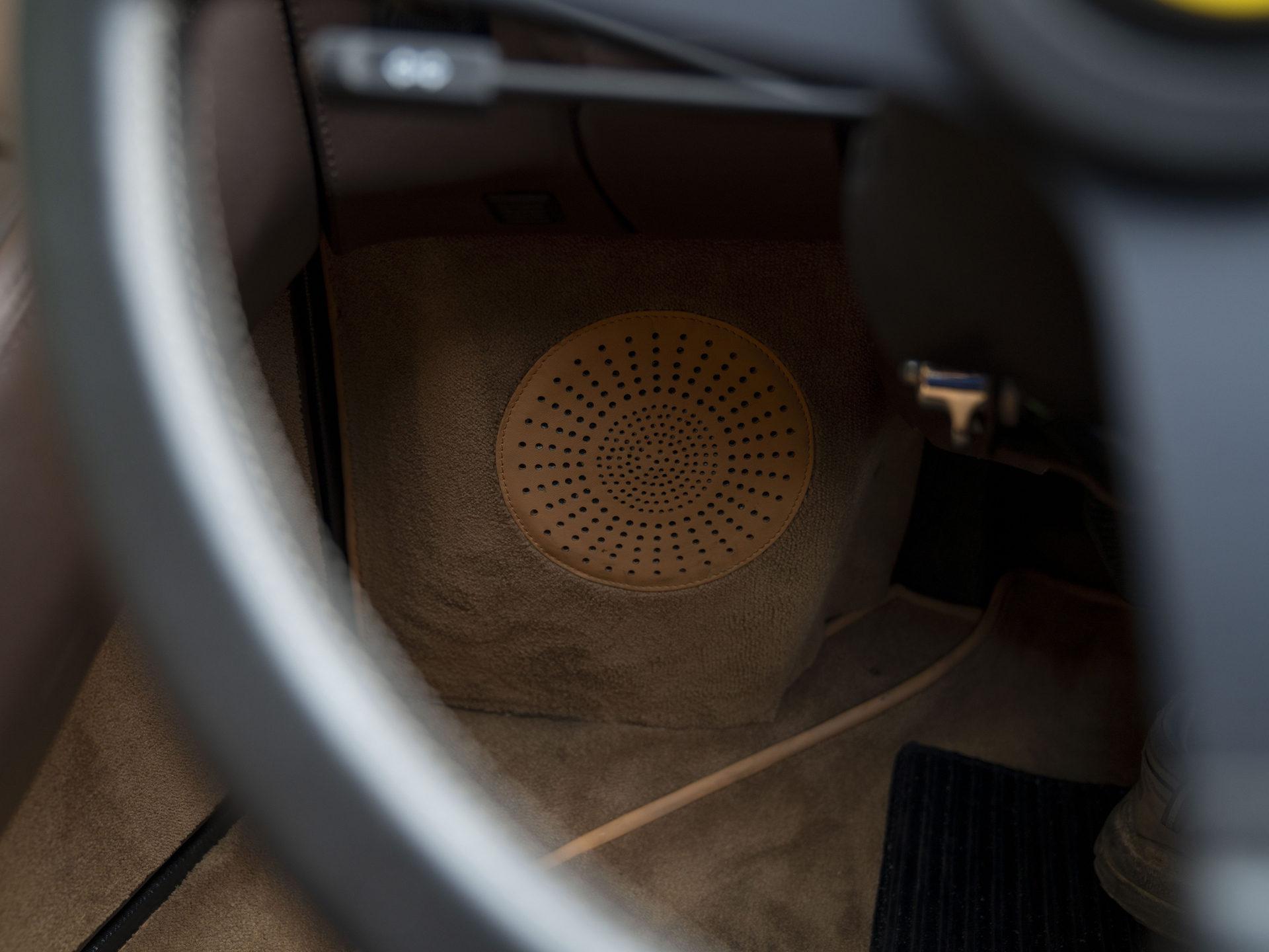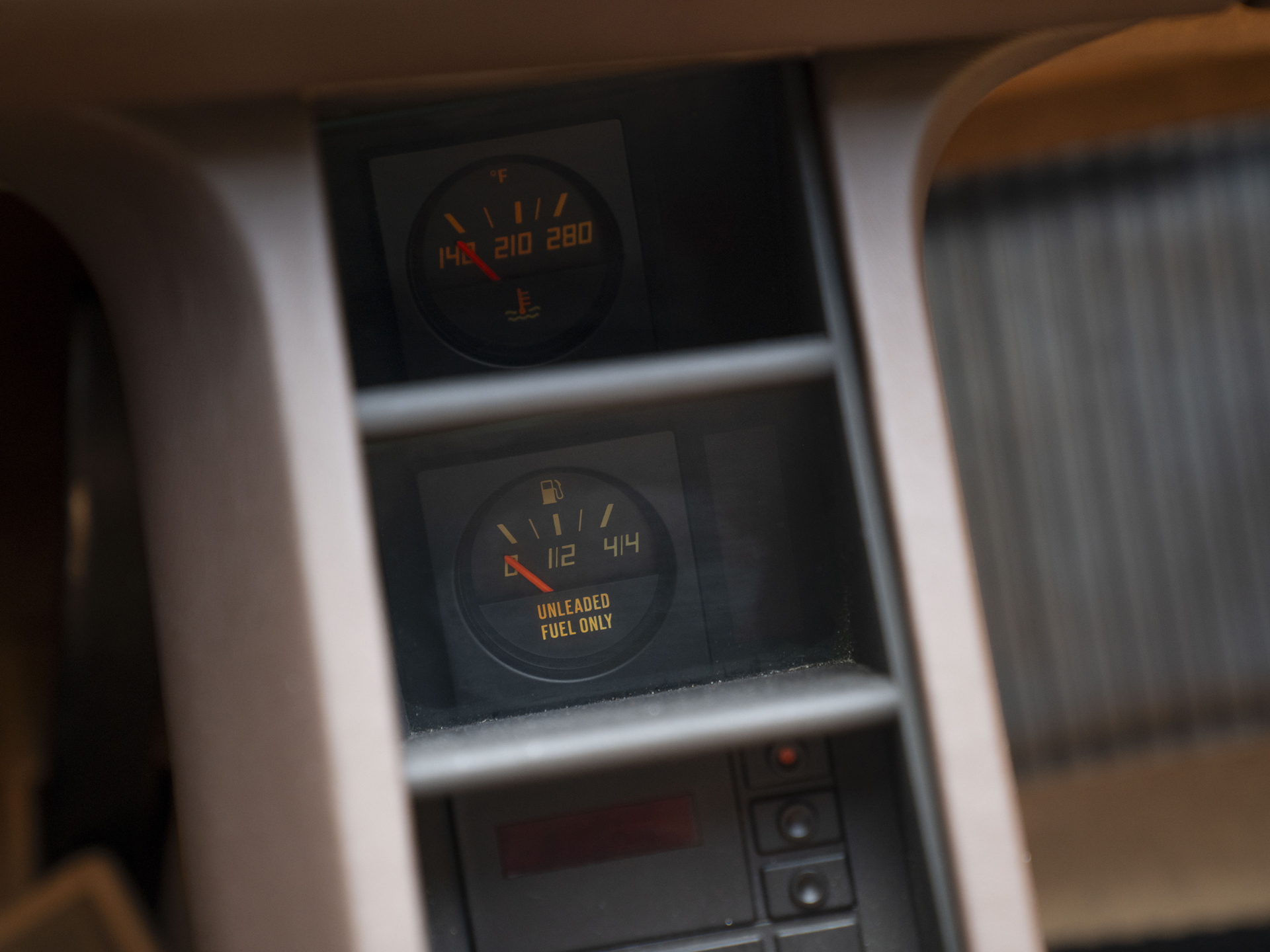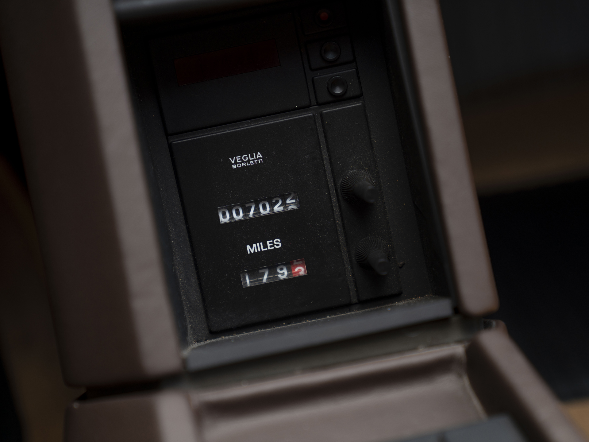 Menig liefhebber zou voor een Nero lederen interieur hebben getekend, echter deze combinatie van Beige lederen stoelen met een bruin lederen dashboard is toch wel de absolute droomspecificatie voor kenners. De smetteloze staat maakt dat dit geen klassieker, maar een tijdmachine is. Wie een beetje nostalgisch is aangelegd, zal bijzondere gevoelens krijgen bij het zien van het hoekige instrumentarium en de schitterend uitgefreesde aluminium schakelcoulissen van de manuele transmissie met klassiek H-patroon. Let ook op de contraststiksels in het minimalistisch vormgegeven Nero lederen Momo-stuurwiel!