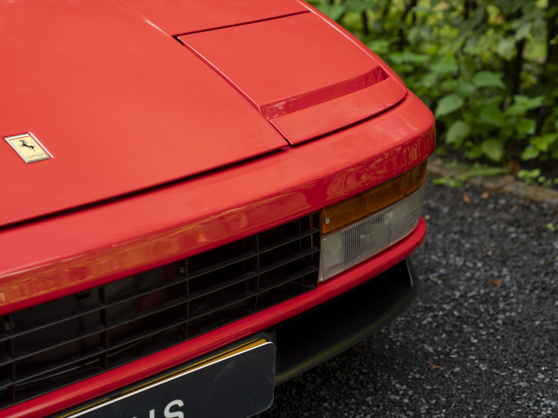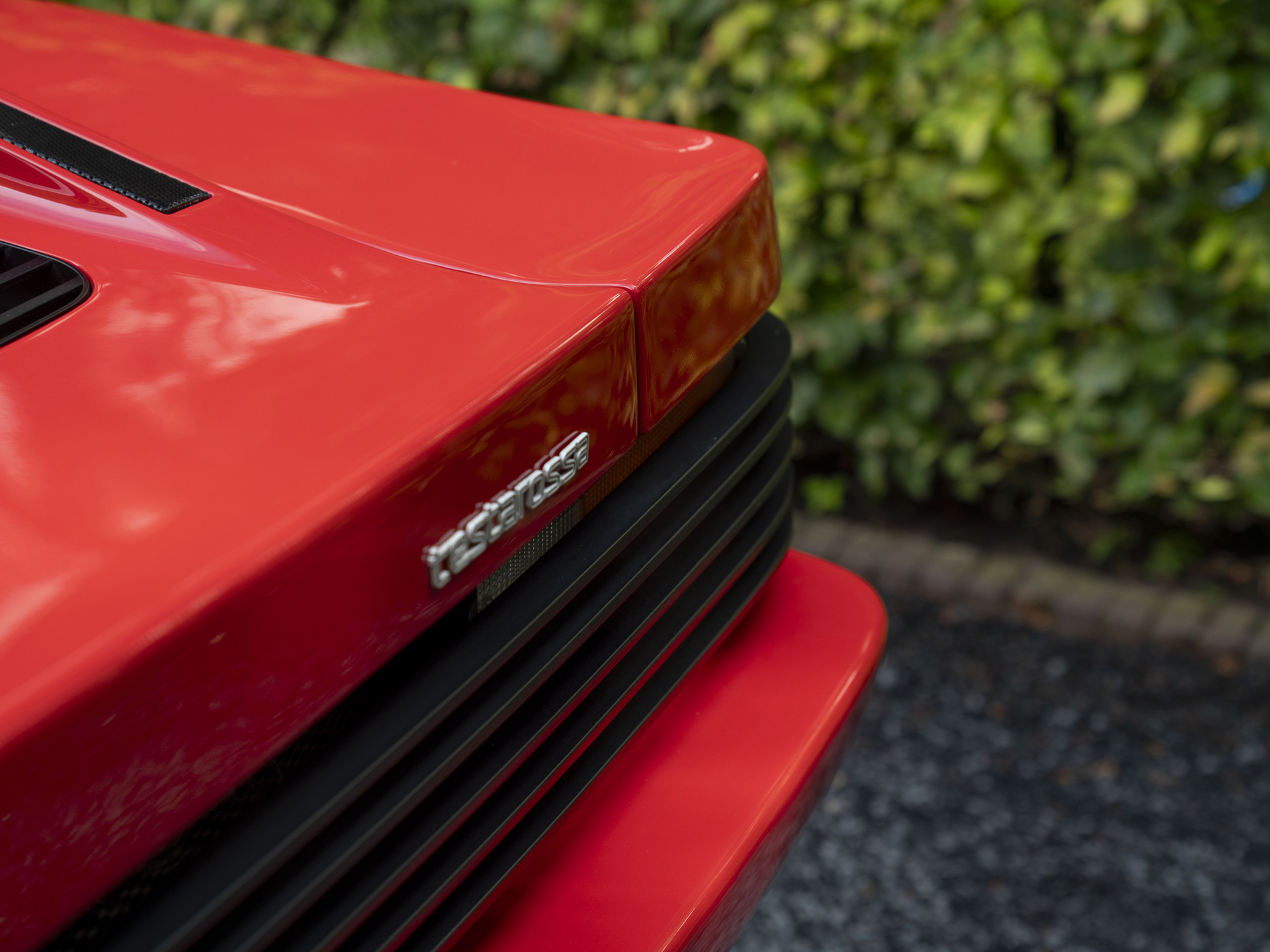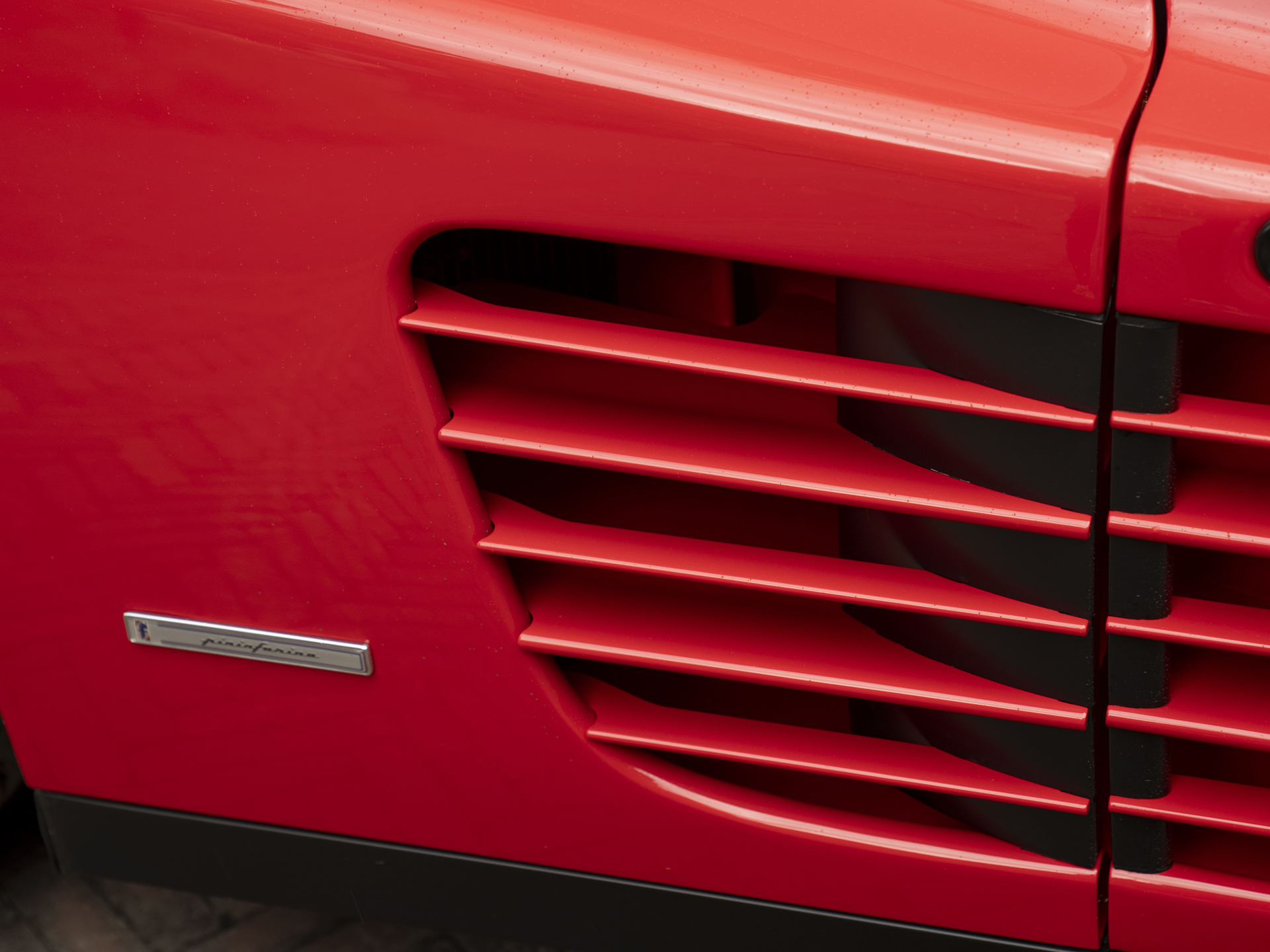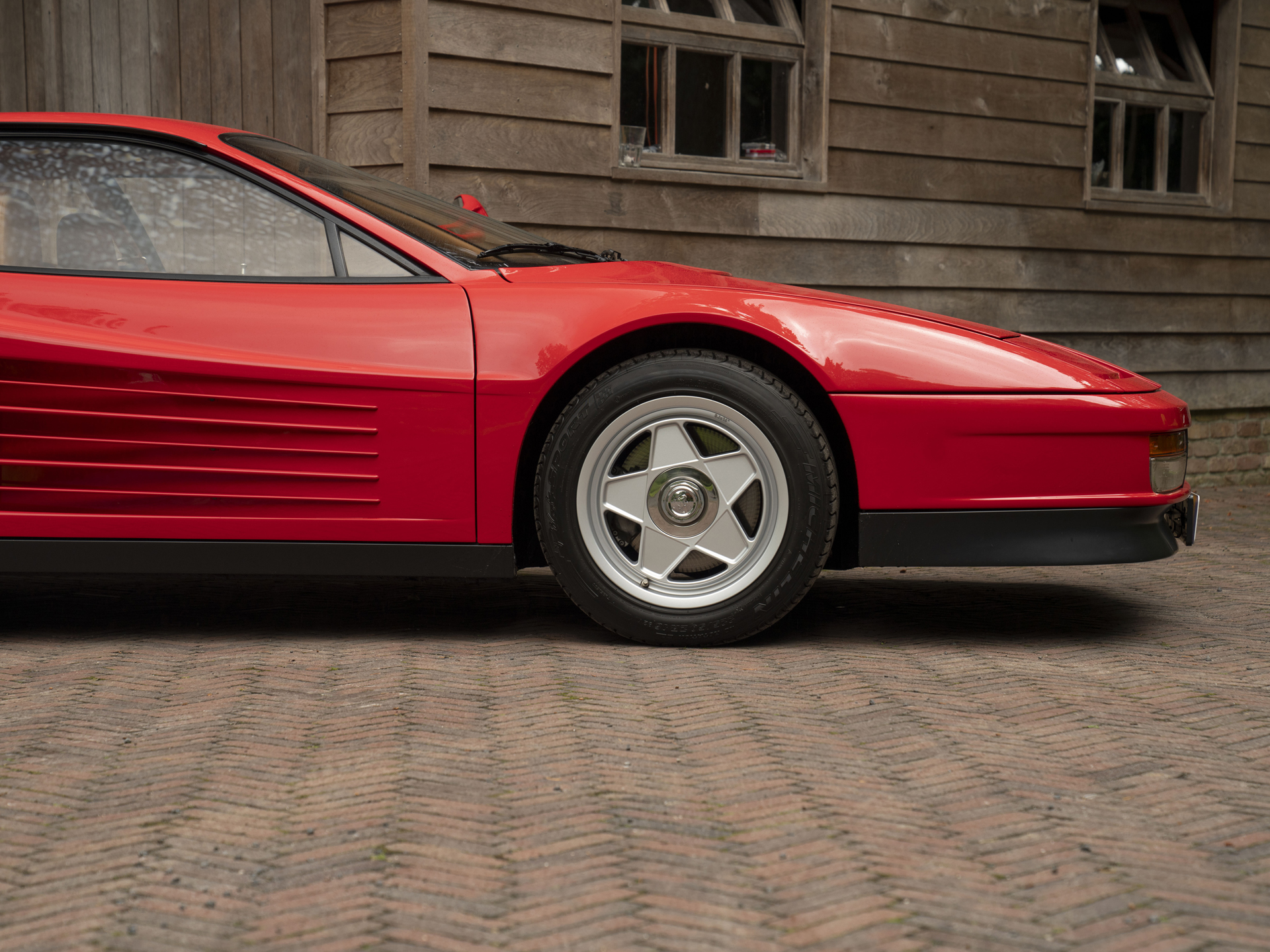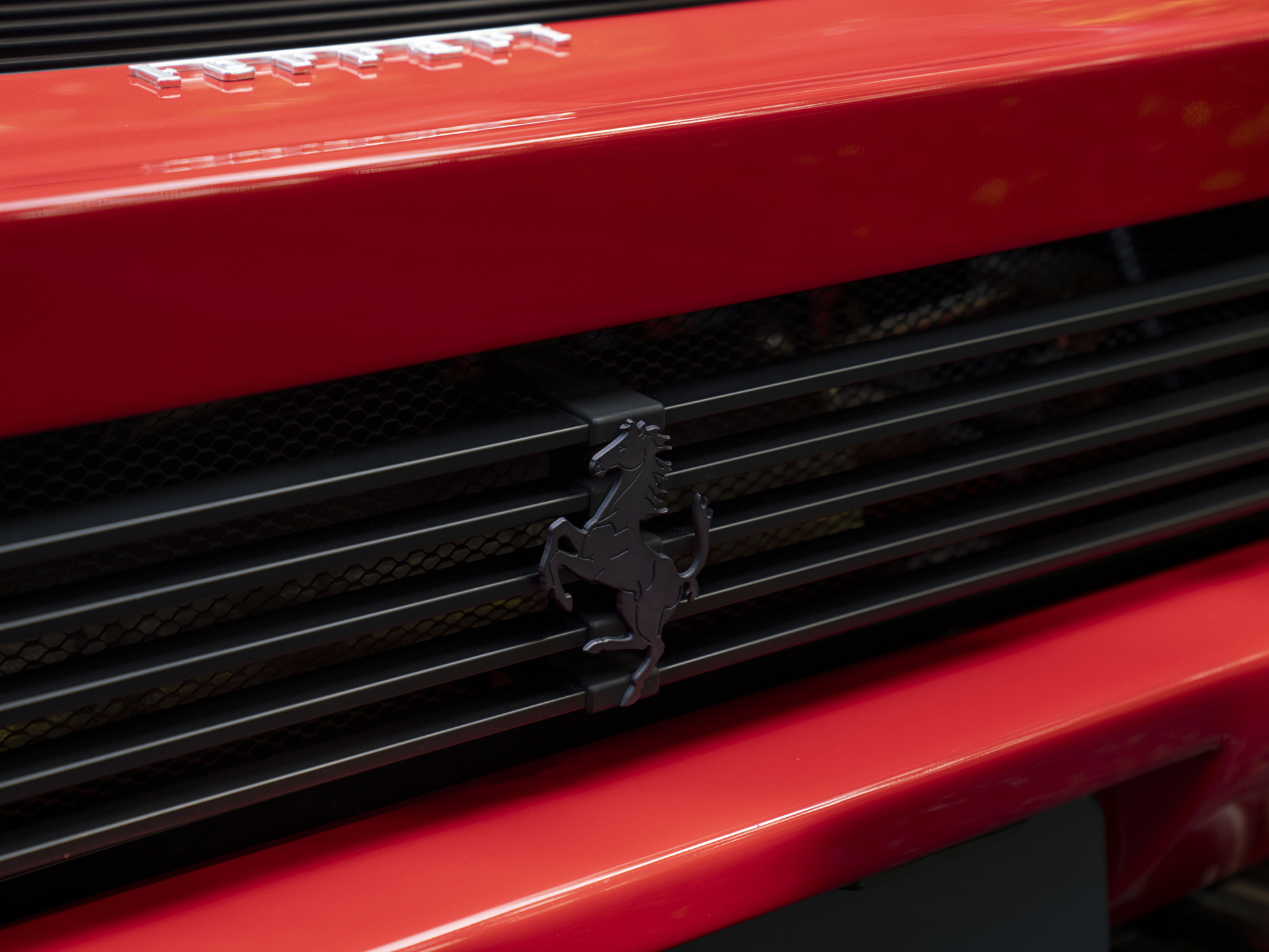 Zonder Testarossa had de toekomst van Ferrari er heel anders kunnen uitzien. Dit karakteristieke model drukte zijn stempel op het merkimago zoals we dat nog nooit eerder hebben gezien. Met zijn vlijmscherpe koets en buitengewone styling is de sportauto te herkennen uit duizenden. Juist in een Rosso Corsa kostuum. De uitvoering én conditie van dit exemplaar is simpelweg ‘perfetto’: het origineel had immers één enkele buitenspiegel (Monospecchio) die opvallend hoger was geplaatst op de A-stijl, plus velgen voorzien van een sterdesign met één centrale wielmoer: de Monodado. Kortom, precies zoals Sonny Crockett ‘m ook had. Die van ons is echter beduidend netter, want deze vurige Italiaan werd allesbehalve ingezet om met 390 paarden tegelijk op jacht te gaan naar schurken. Maar de onmiskenbare ‘slats’ die de achterlichten ‘coveren’, of de aerodynamische ‘vinnen’ die naar de koelradiatoren achter de portieren leiden, hebben niet minder indruk gemaakt op de samenleving…