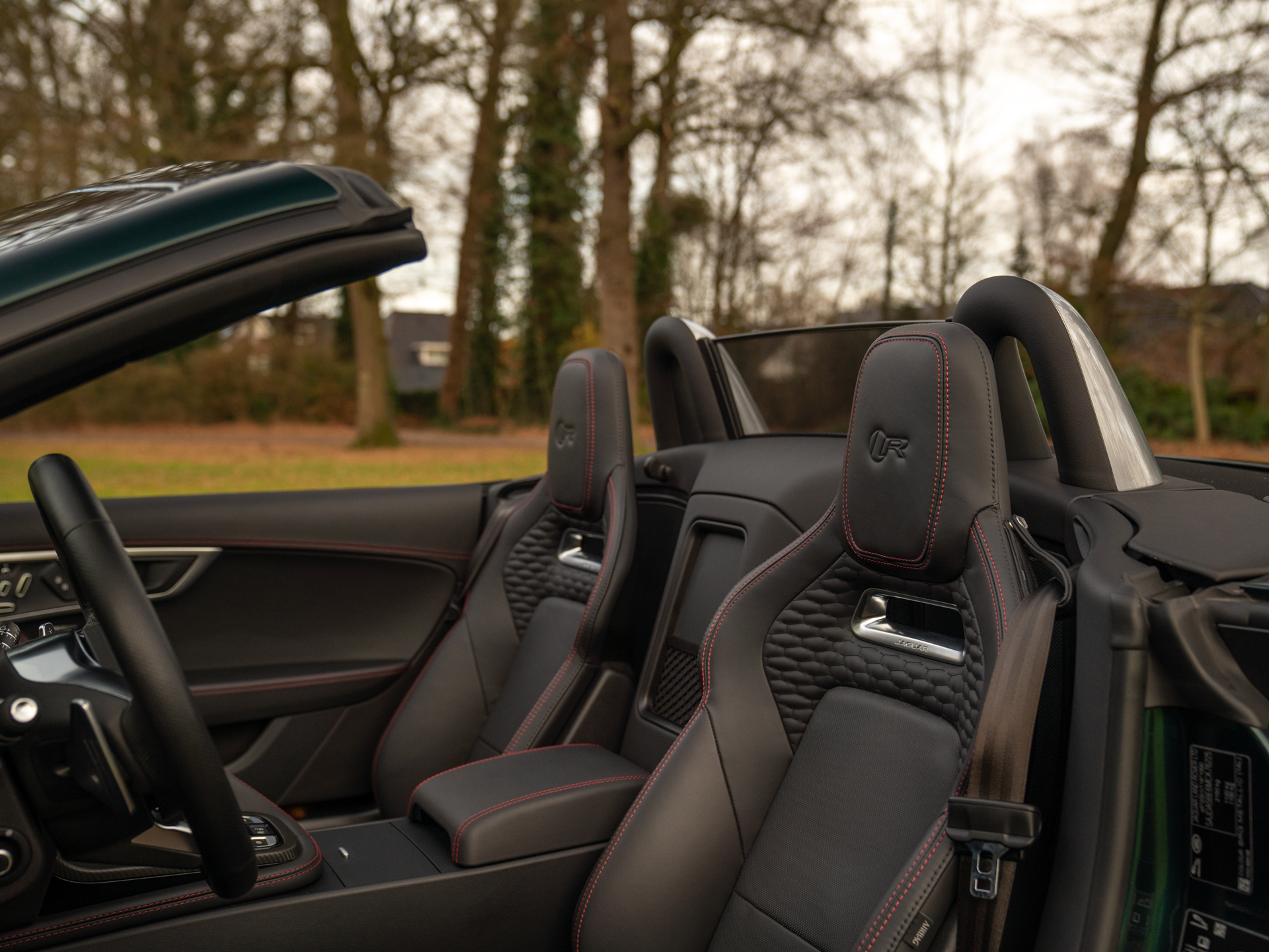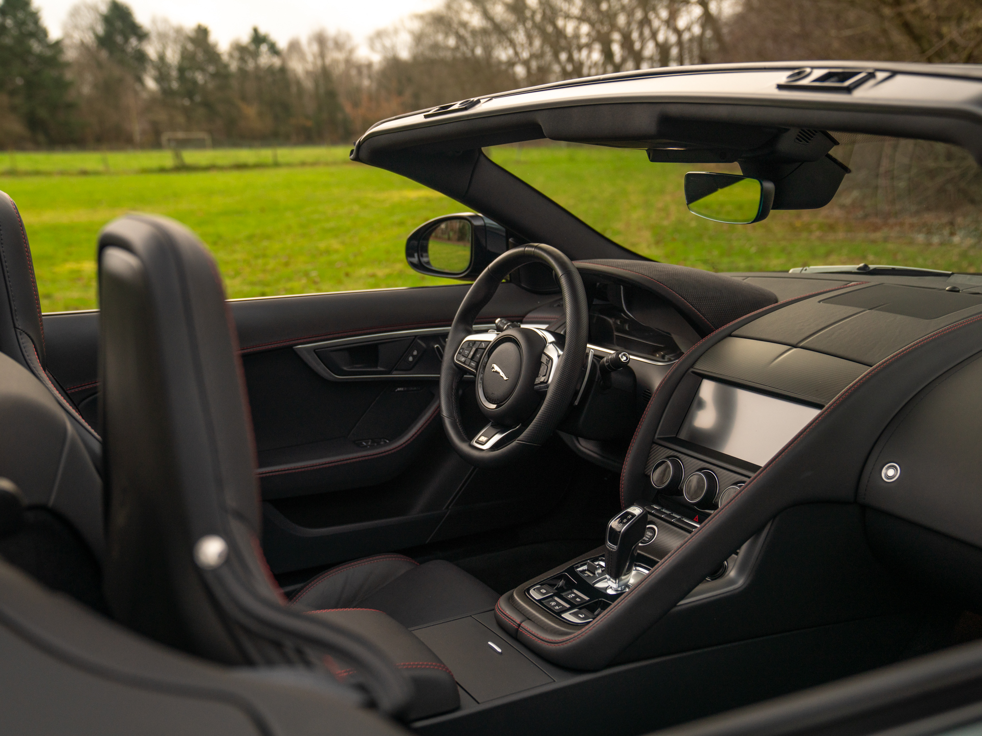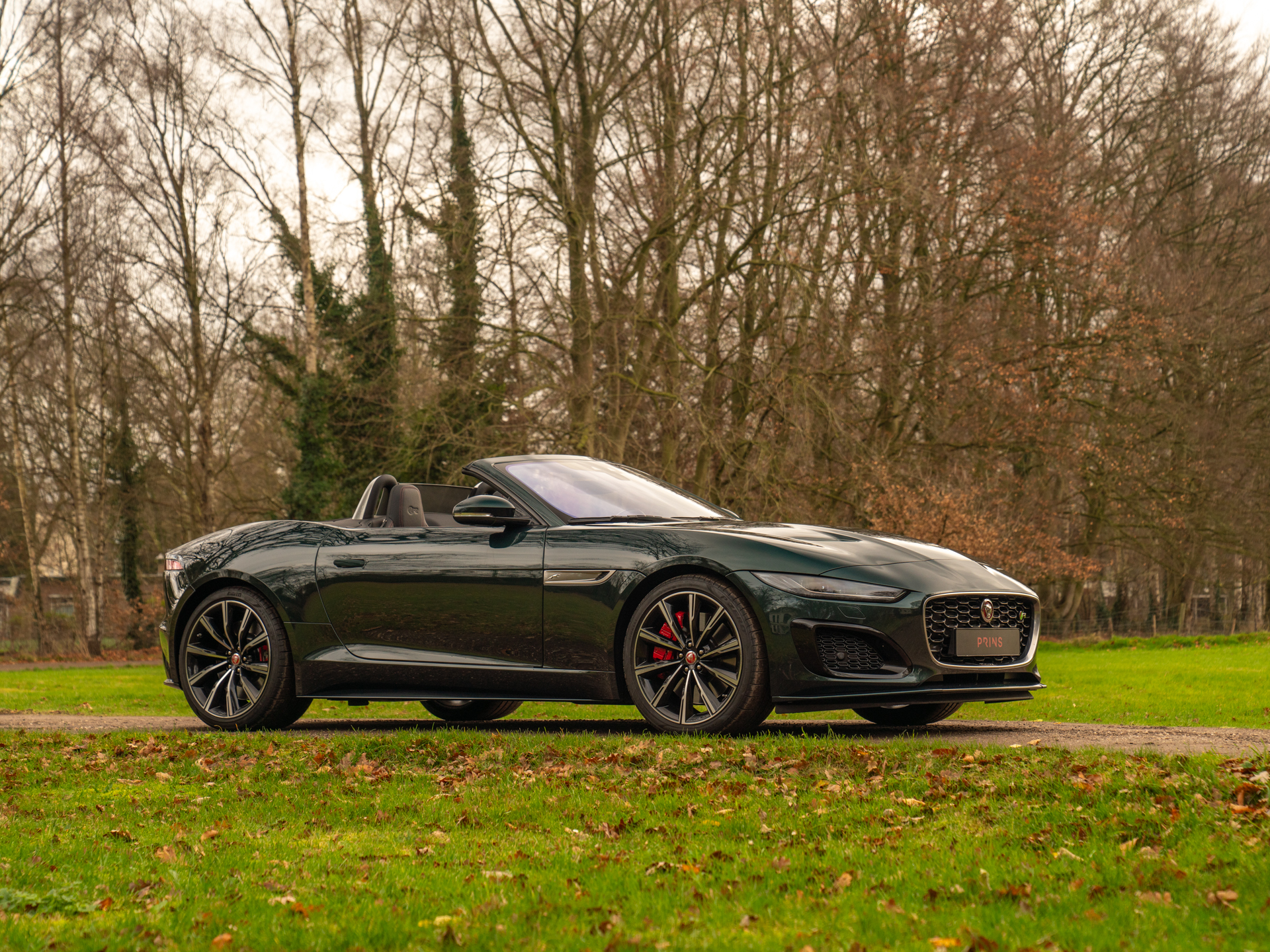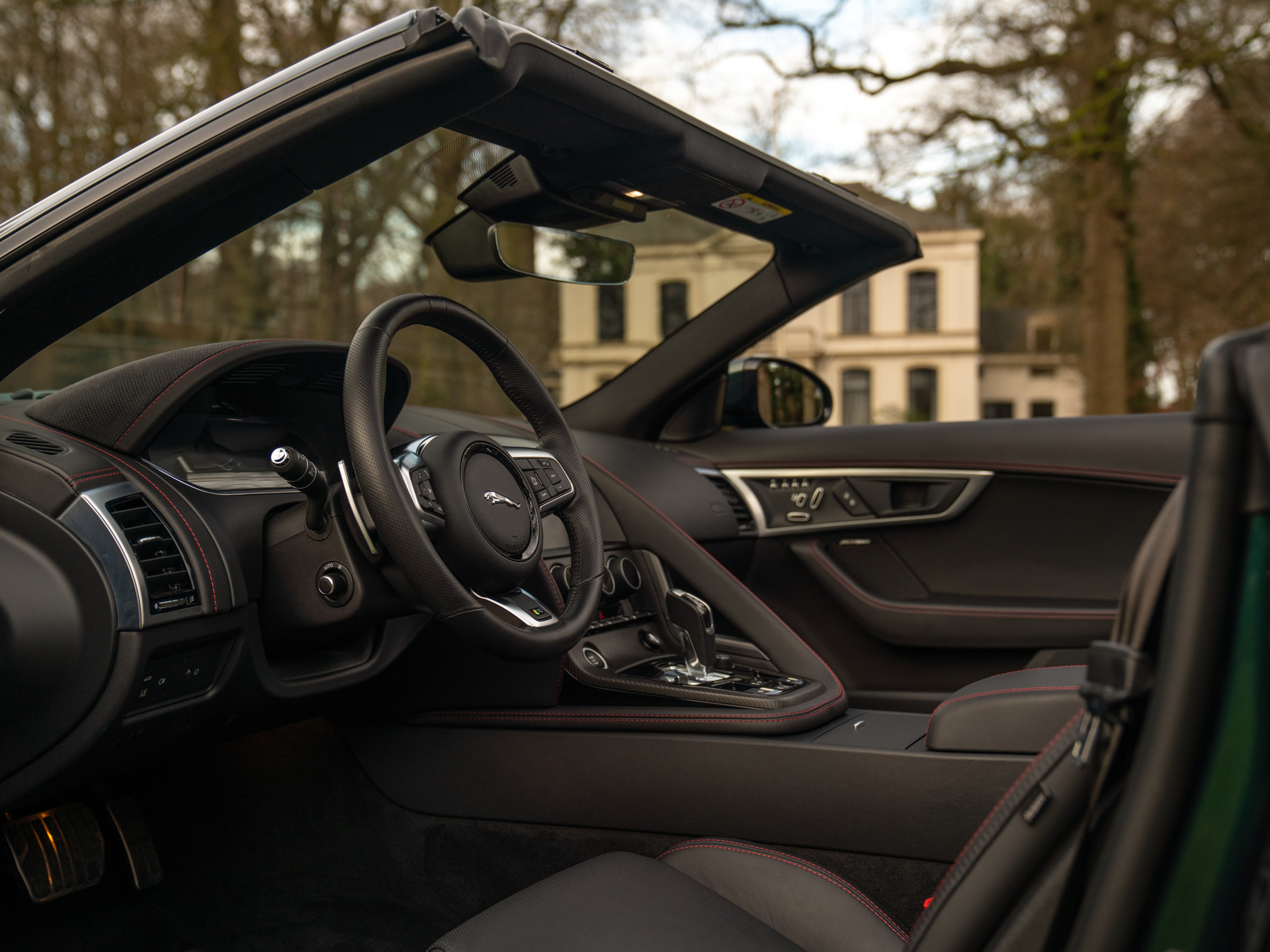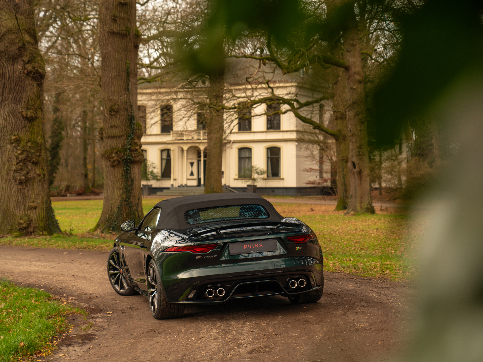 Werkelijk fantastische Jaguar F-Type R in het British Racing Green. In een tijd vol downsizing en kleine motoren beschikt deze ultieme cabrio over een 575pk 5.0 V8!