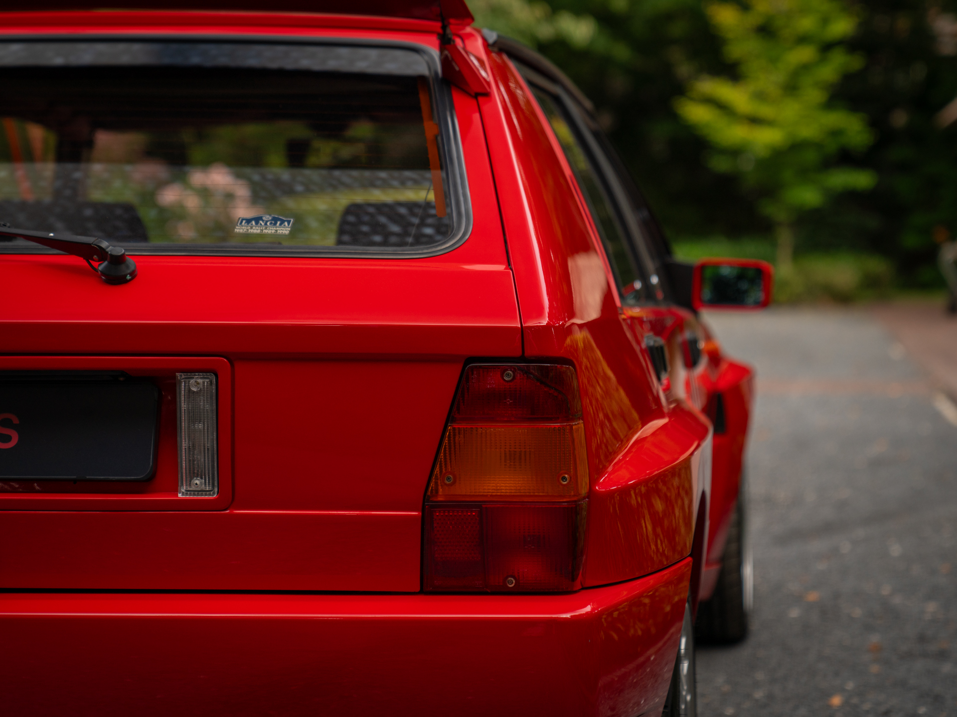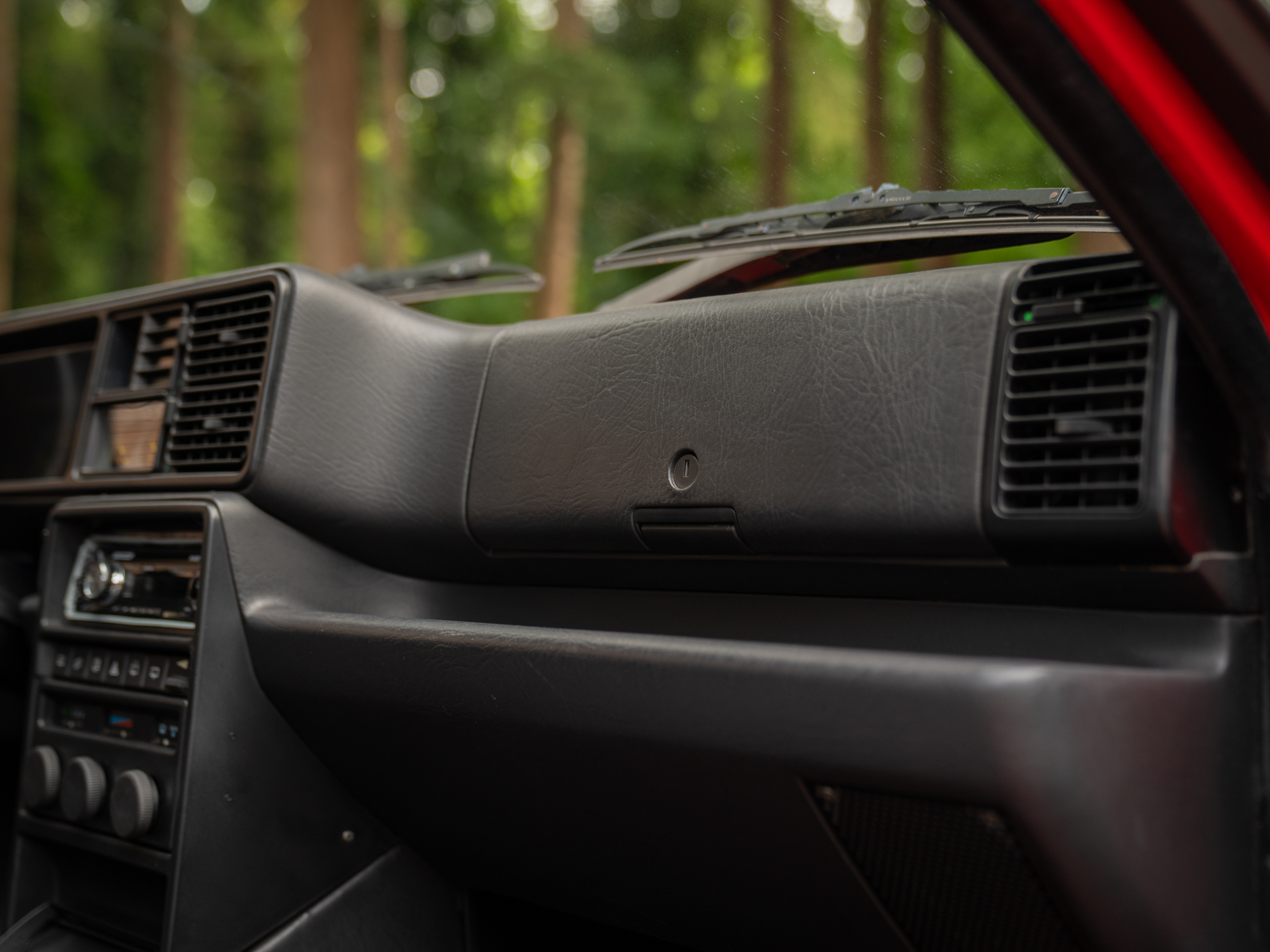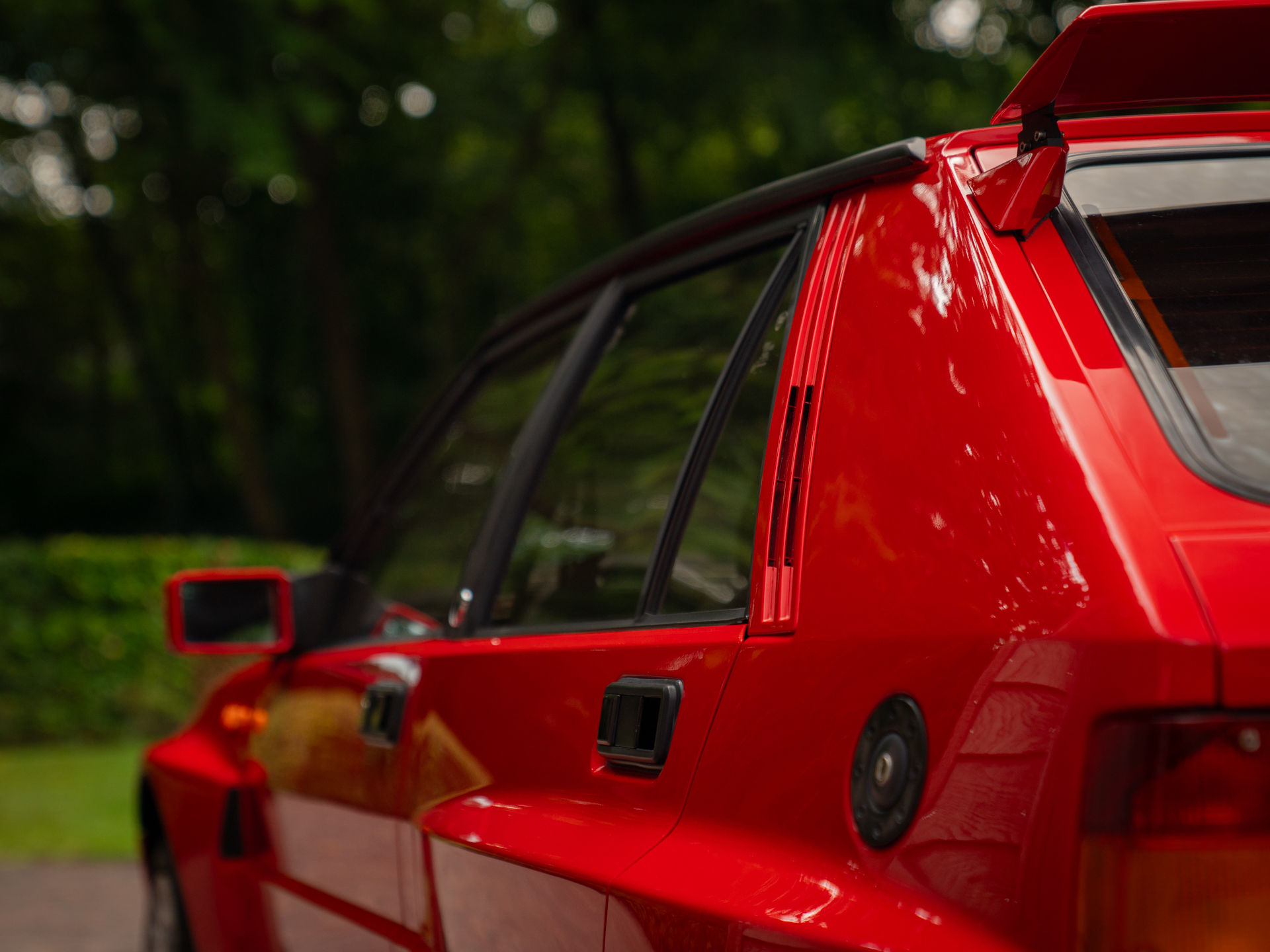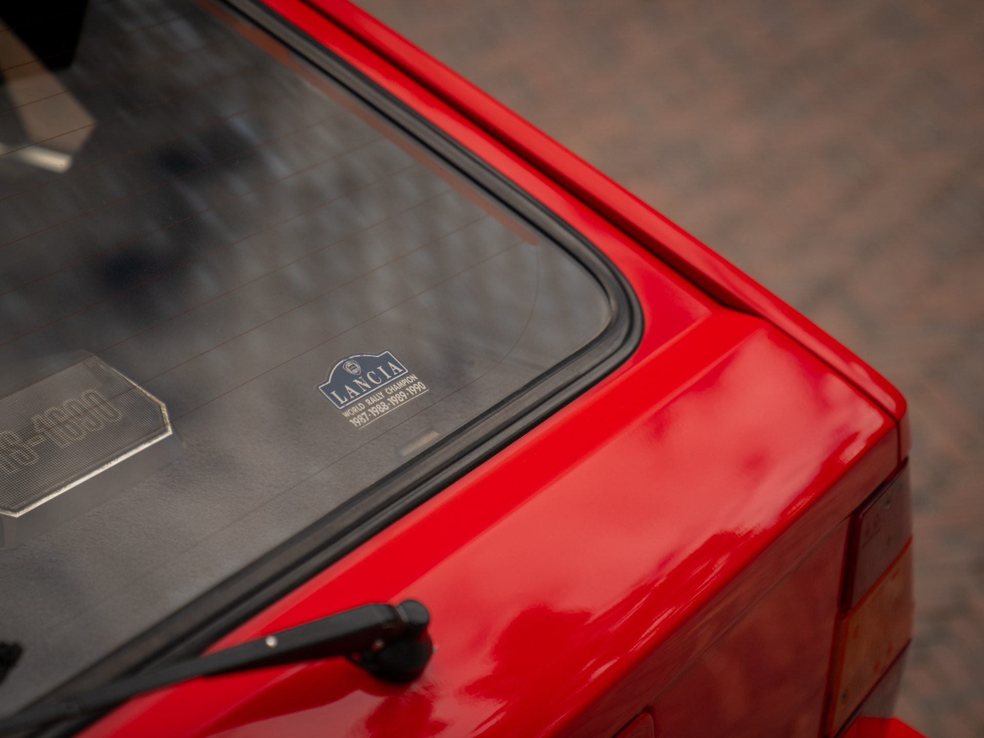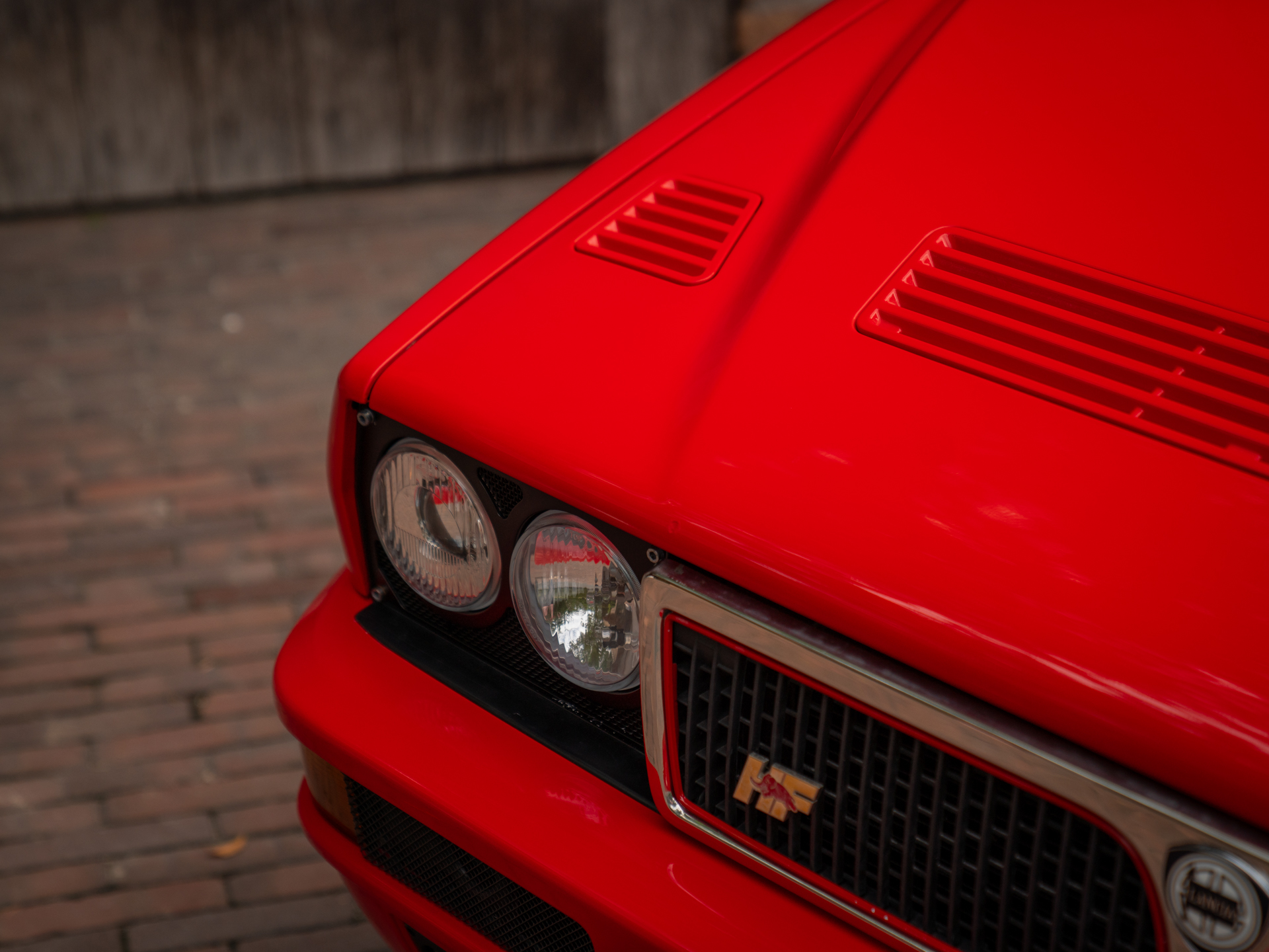 We hoeven dus niet uit te leggen dat deze familie uit échte liefhebbers bestaat. De Delta Evo ziet er dan ook uit alsof hij altijd met een fluwelen voet is bediend. En dat is extra knap, aangezien we weten hoe verleidelijk het kan zijn om met dit rallyicoon de grens op te zoeken. Het Rosso Monza lakwerk is in al die jaren slecht één keer overgedaan. Voor de rest is alles nog precies zoals hij af-fabriek is geleverd. Dus inclusief de originele raampartijen, verlichtingsunits en ook het elektrisch bedienbare schuif-/kanteldak hoort daarbij. De hoekige koets, brede spatborden, 15 inch lichtgewicht wielen en uitbundige dakspoiler zijn synoniem aan HF Integrale. Wij houden ervan.