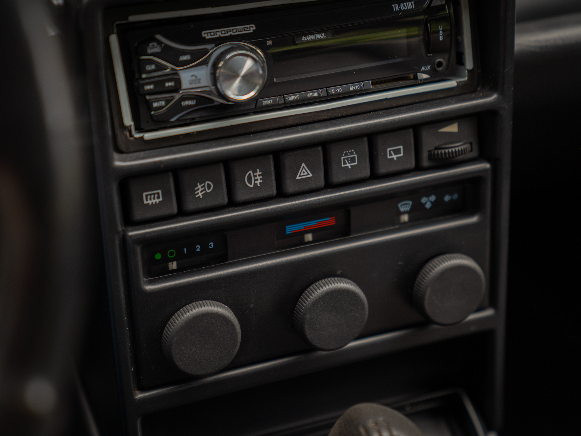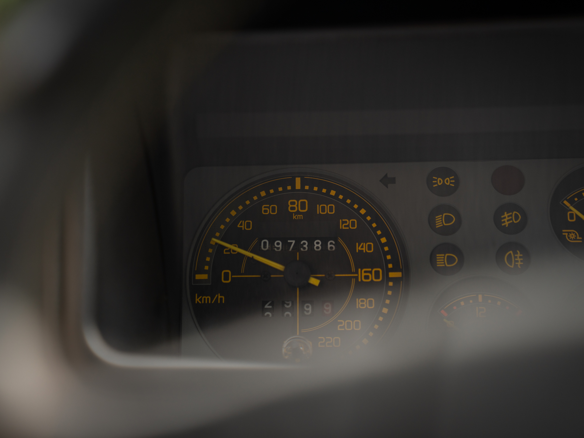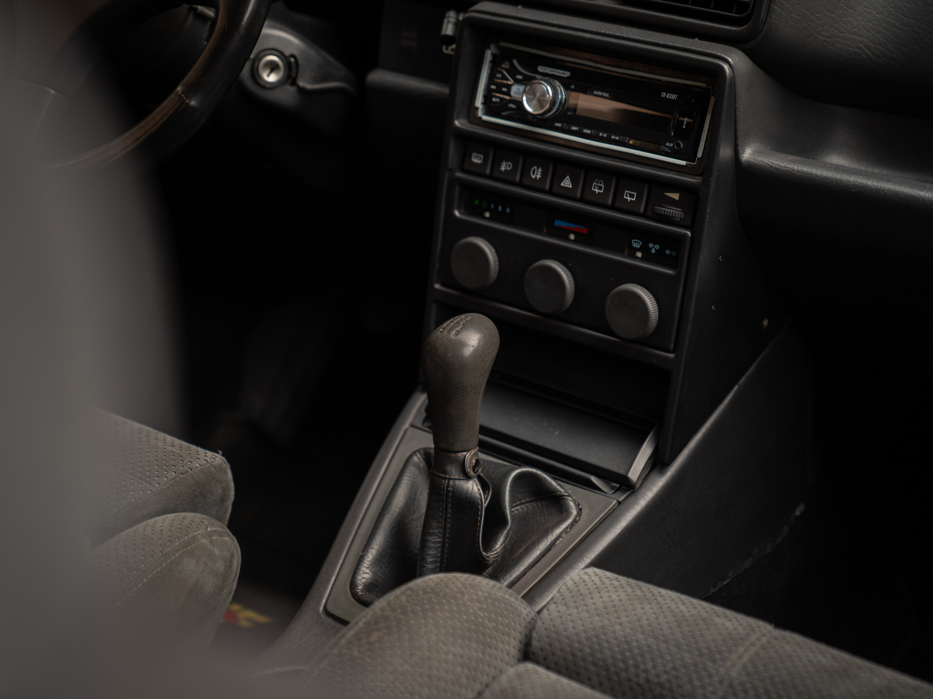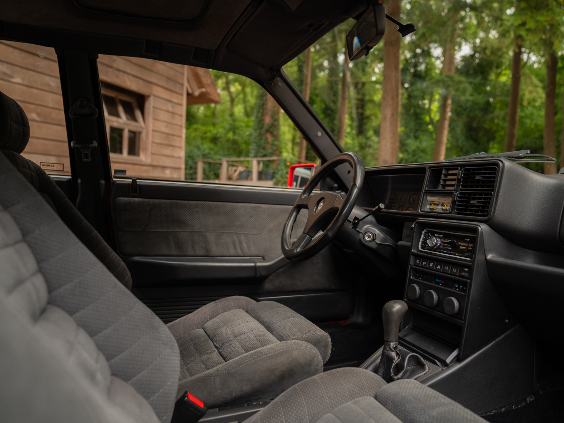 Dit mag dan een racer pur sang zijn, Lancia wilde duidelijk niets weten van een sobere uitrusting. Binnenin onderscheidt de opper-Delta zich van zijn ‘mindere’ soortgenoten aan de hand van uitstekend zittend sportstoelen, geperforeerde aluminium sportpedalen en prachtige Alcantara grijze stoel-, portier- én hemelbekleding. Niet alleen de afwerking is de moeite waard, ook de algehele conditie laat niets te wensen over. De HF Integrale Evoluzione mag dan nauw aan de autosport verwant zijn, in deze cockpit is duidelijk niet heel hard gewerkt. En dat bedoelen we op een positieve manier.
