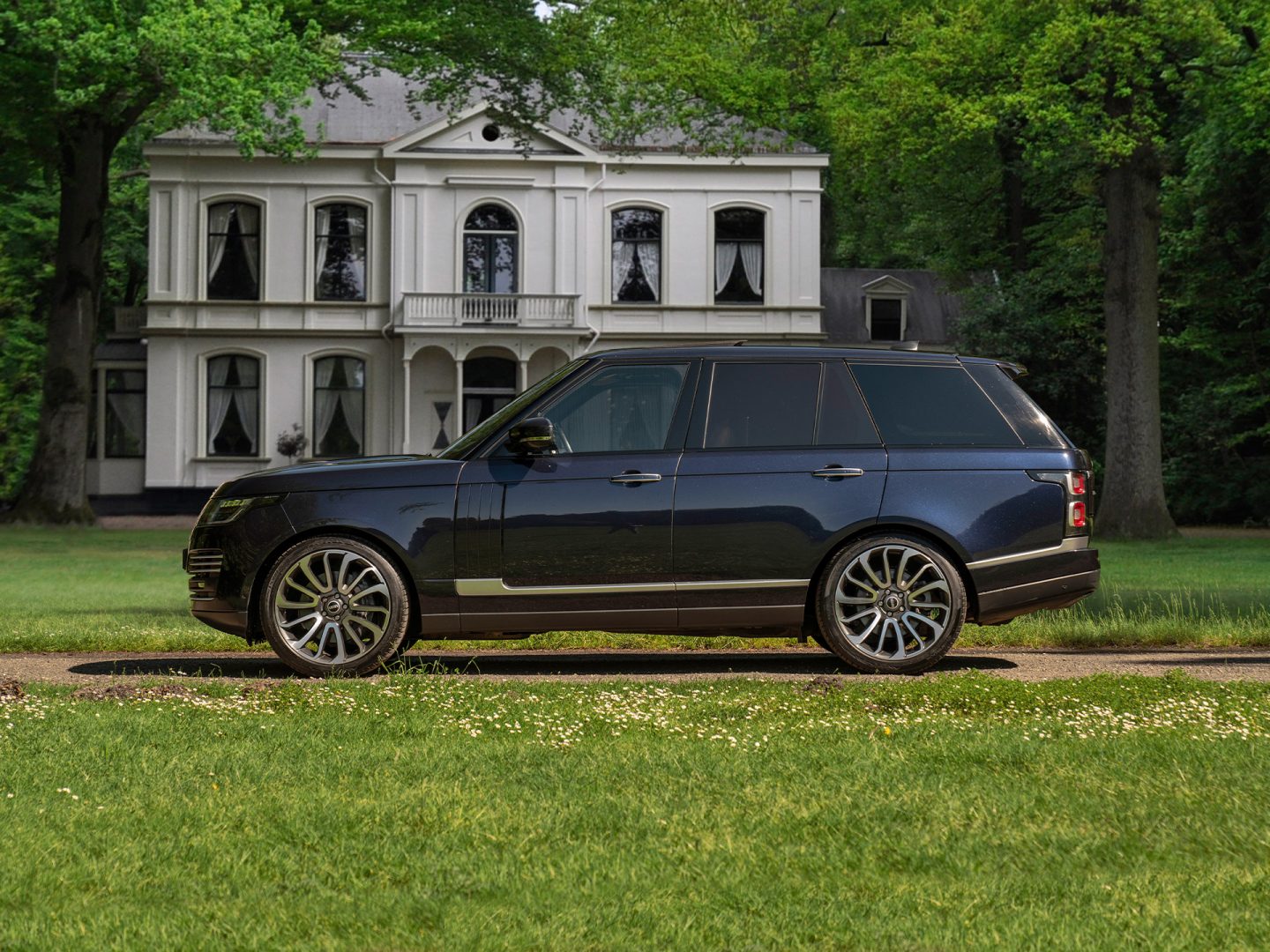 De status van icoon heeft deze koning der luxe SUV’s niet zomaar bereikt. De uitstraling van de Range Rover vormt namelijk een 100% match met de ongeëvenaarde capaciteiten van onze 4×4, on- én off-road. De hoeken zijn scherp, de details uiterst charmant en de vormgeving onmiskenbaar als altijd. In basis is de carrosserie zo traditioneel als het maar kan. Echter, de riante afmetingen, strakke lijnen en originele styling maken ‘m ongelooflijk imposant en tijdloos tegelijkertijd. Op het charisma van deze machtige machine staat simpelweg geen maat. Daarover gesproken: de statige Brit beschikt over chique 21 inch wielen voorzien van een schoependesign. Daarnaast contrasteert de grijze exterieurfinish subliem bij de vorstelijk blauwe carrosserielak. De diepe metallic gloed symboliseert niets dan klasse. Topklasse. Dit belooft wat voor de rijbeleving…