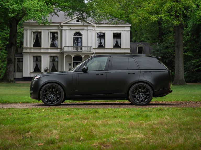 De nieuwste generatie Range Rover blijft zijn voorgangers qua profiel trouw. En ook het typische Land Rover karakter is – gelukkig – overeind gebleven. In zijn moderne vorm is de carrosserie echter strakker, gladder, meer hightech dan ooit. Het is knap hoe de Britten een no-nonsense lijn hebben getrokken in een auto die bruist van het onderscheid en de charmes. Vooral in deze trim maakt het exterieur een ongekend egale indruk, met details zoals achterlichten, grillerand, velgen en sierlijsten die qua tint een 100% match vormen met het lakwerk. De Santorini Black metallic kleurstelling is volledig intact, echter de matte Paint Protection Film van Xpel Stealth voegt een totaal andere kleurnuance toe. Hierdoor is de impact ook totaal anders: in plaats van traditioneel en klassiek doet de Range Rover Autobiography origineel en markant aan, zonder de indruk te wekken op den duur te gaan vervelen. Integendeel: naar deze unieke samenstelling kunnen we ongegeneerd blijven kijken!