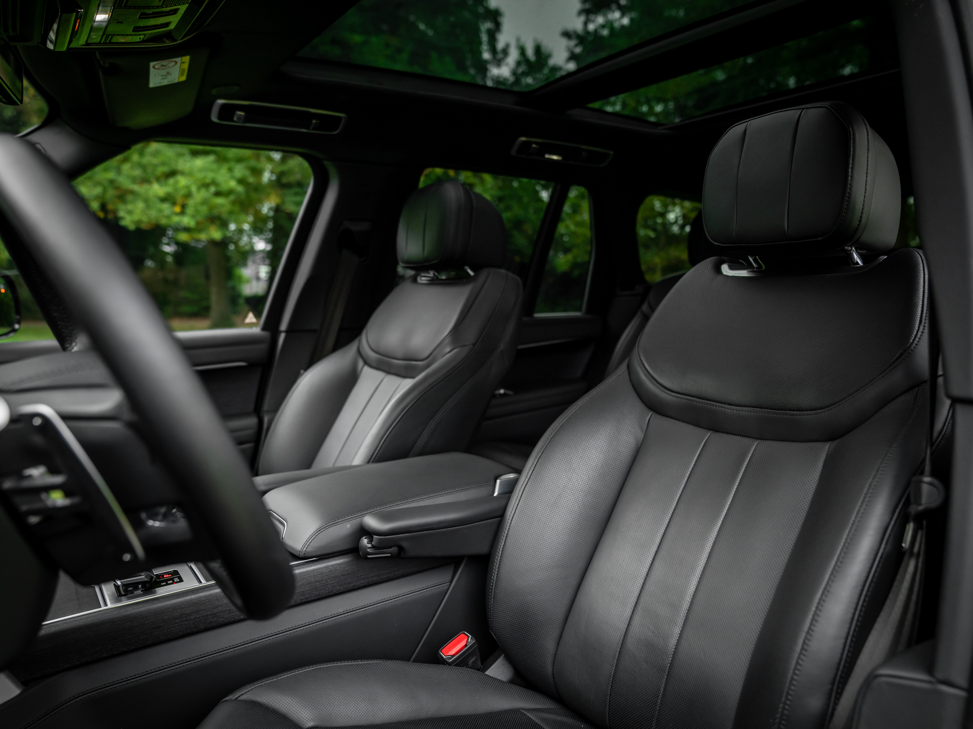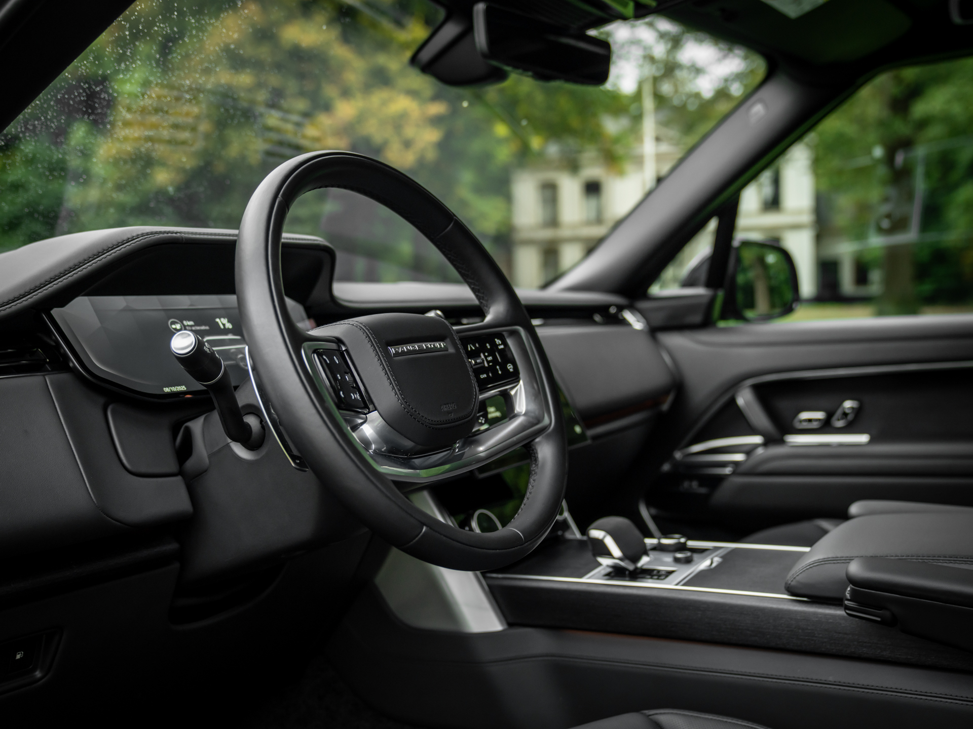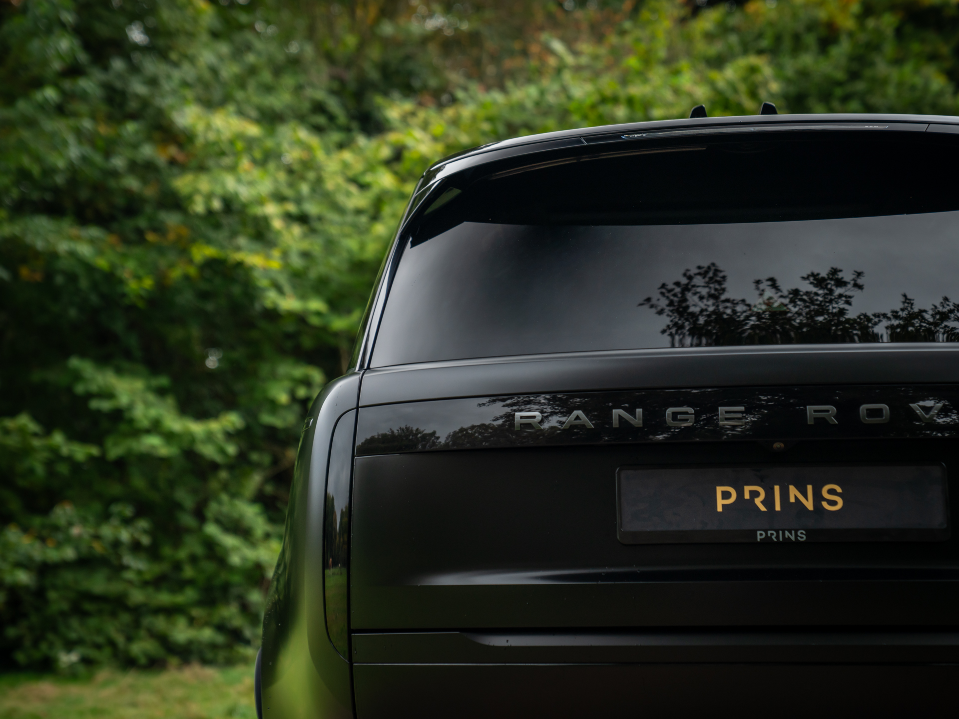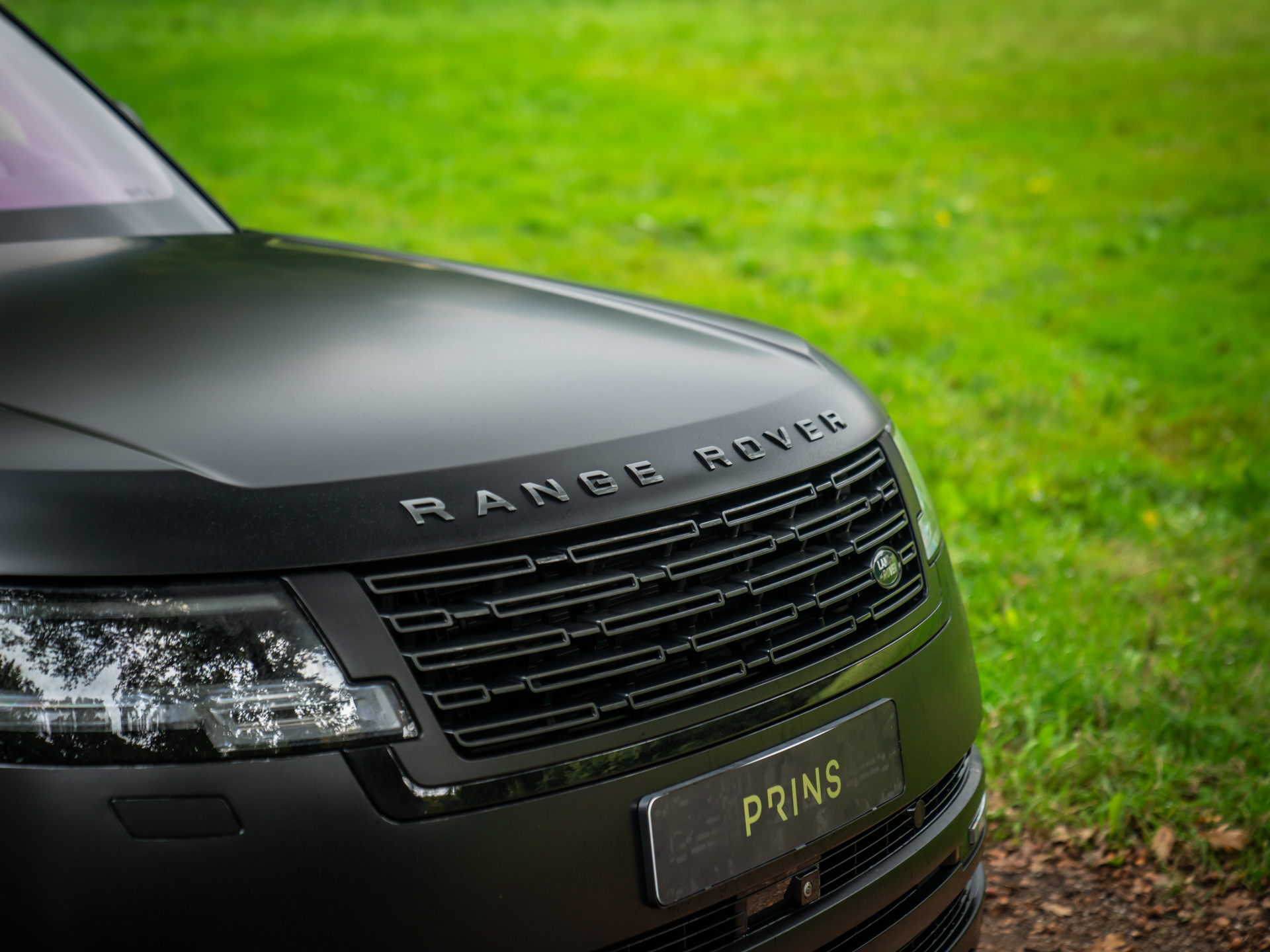 Nieuw binnen: zeer complete Range Rover P510e Autobiography PHEV in het zwart met een zwart lederen interieur.