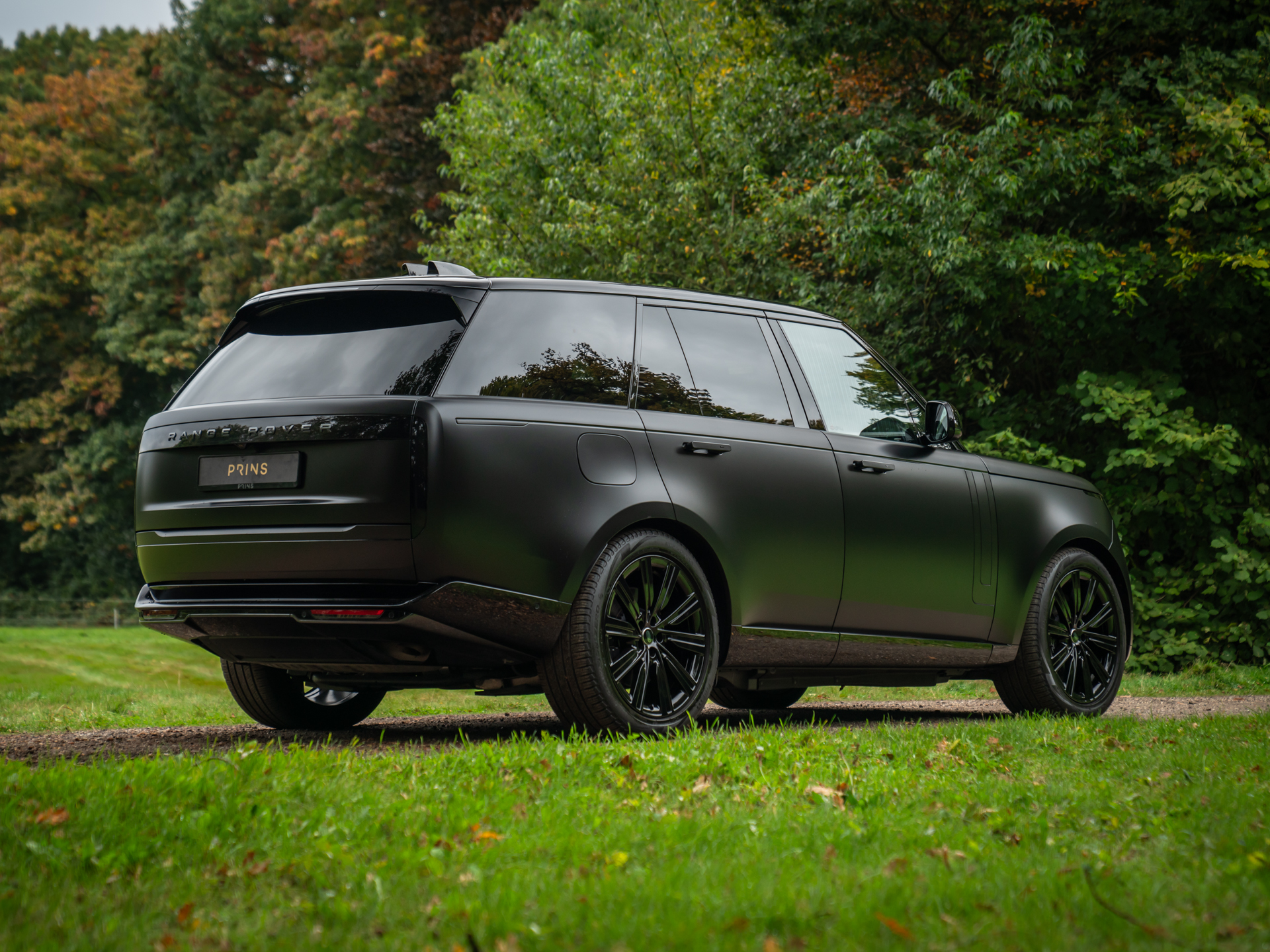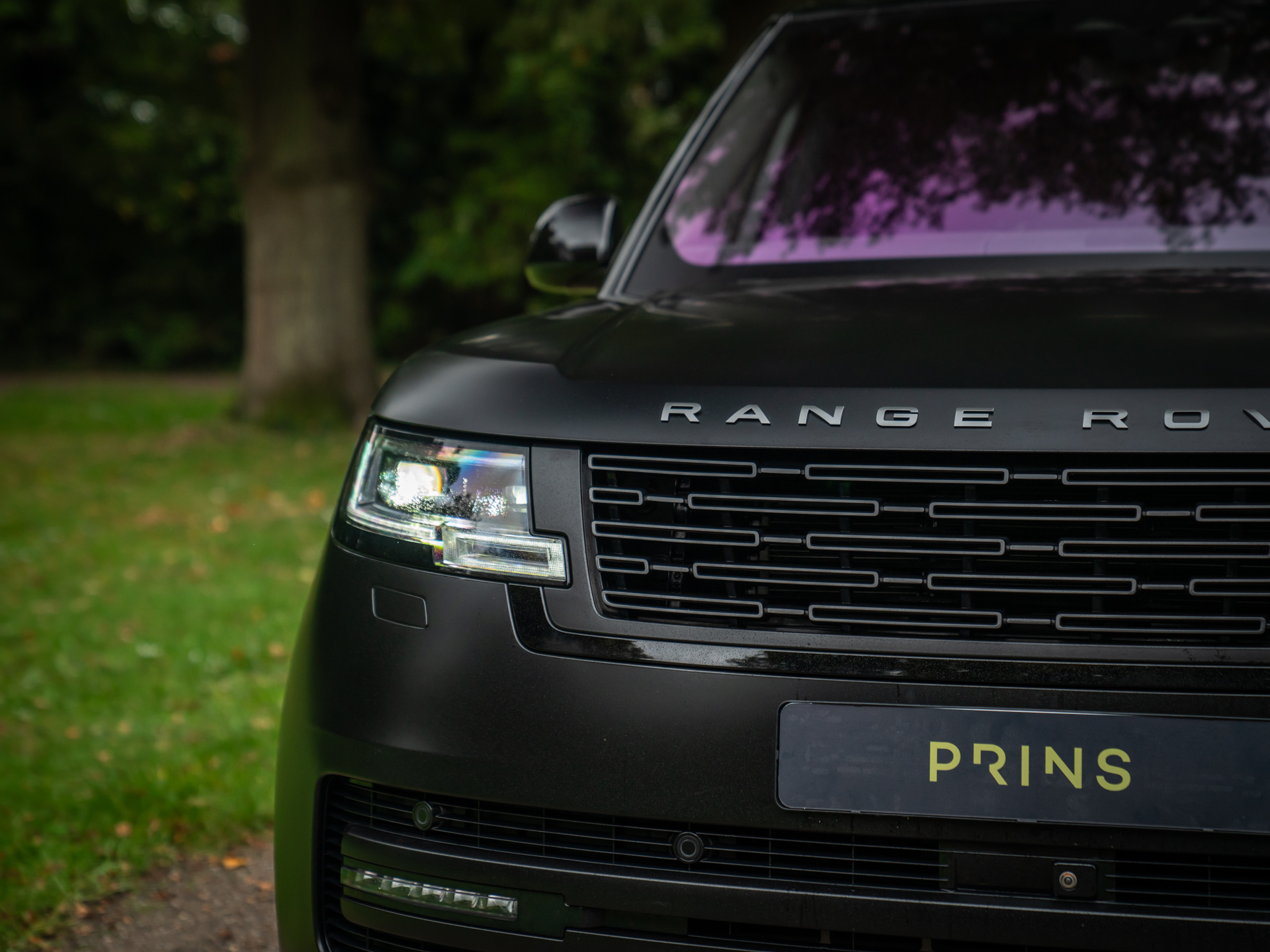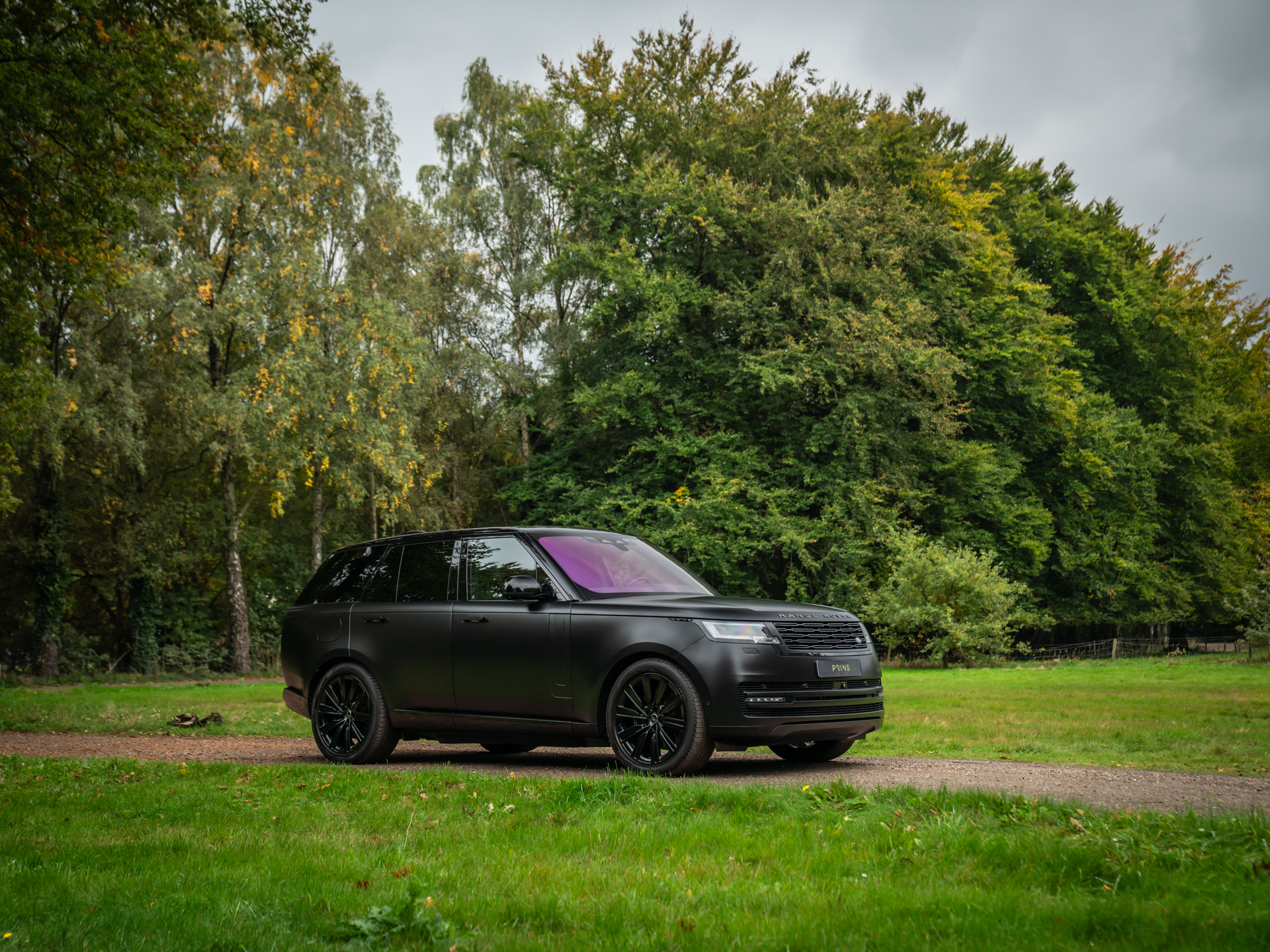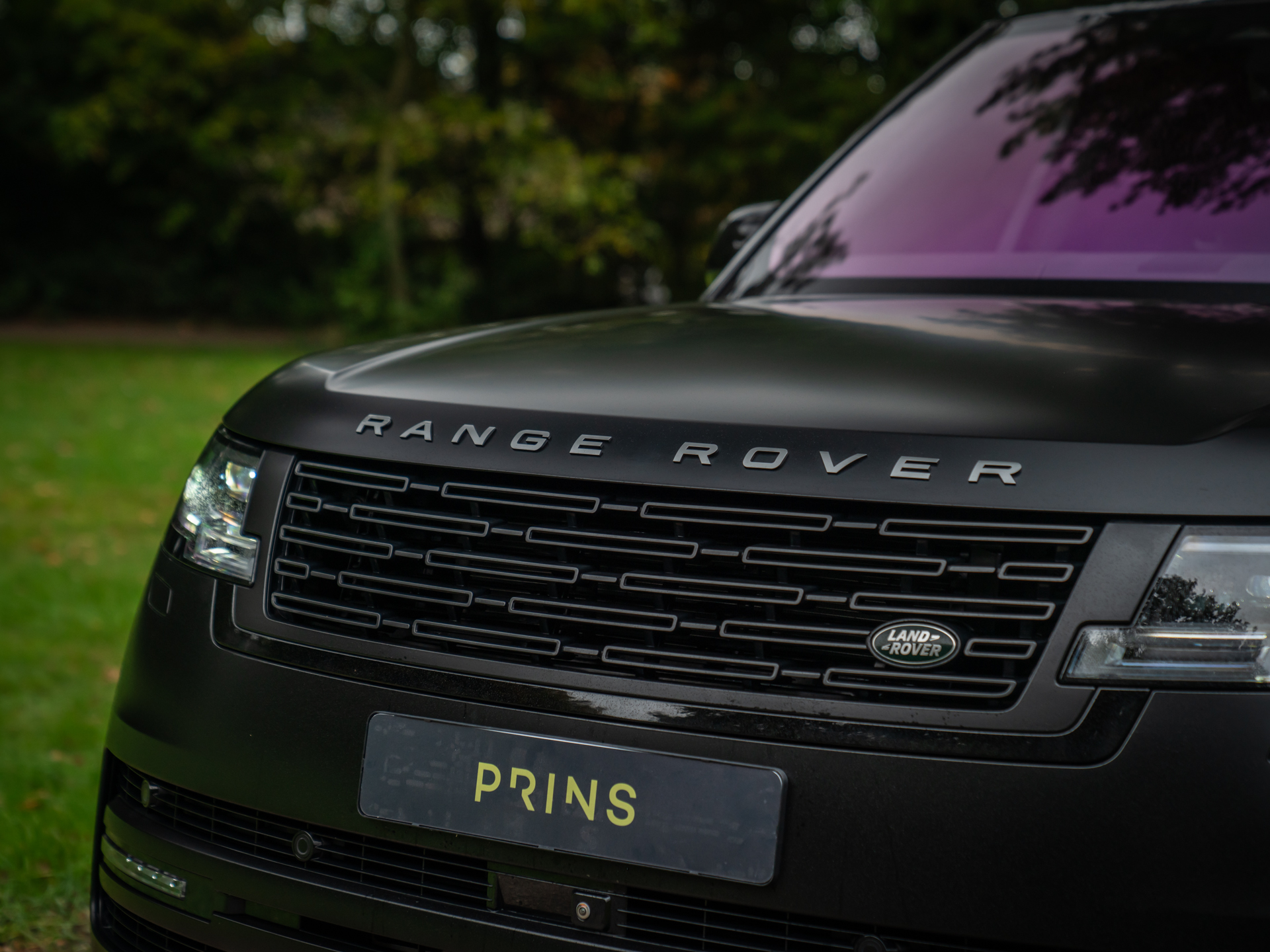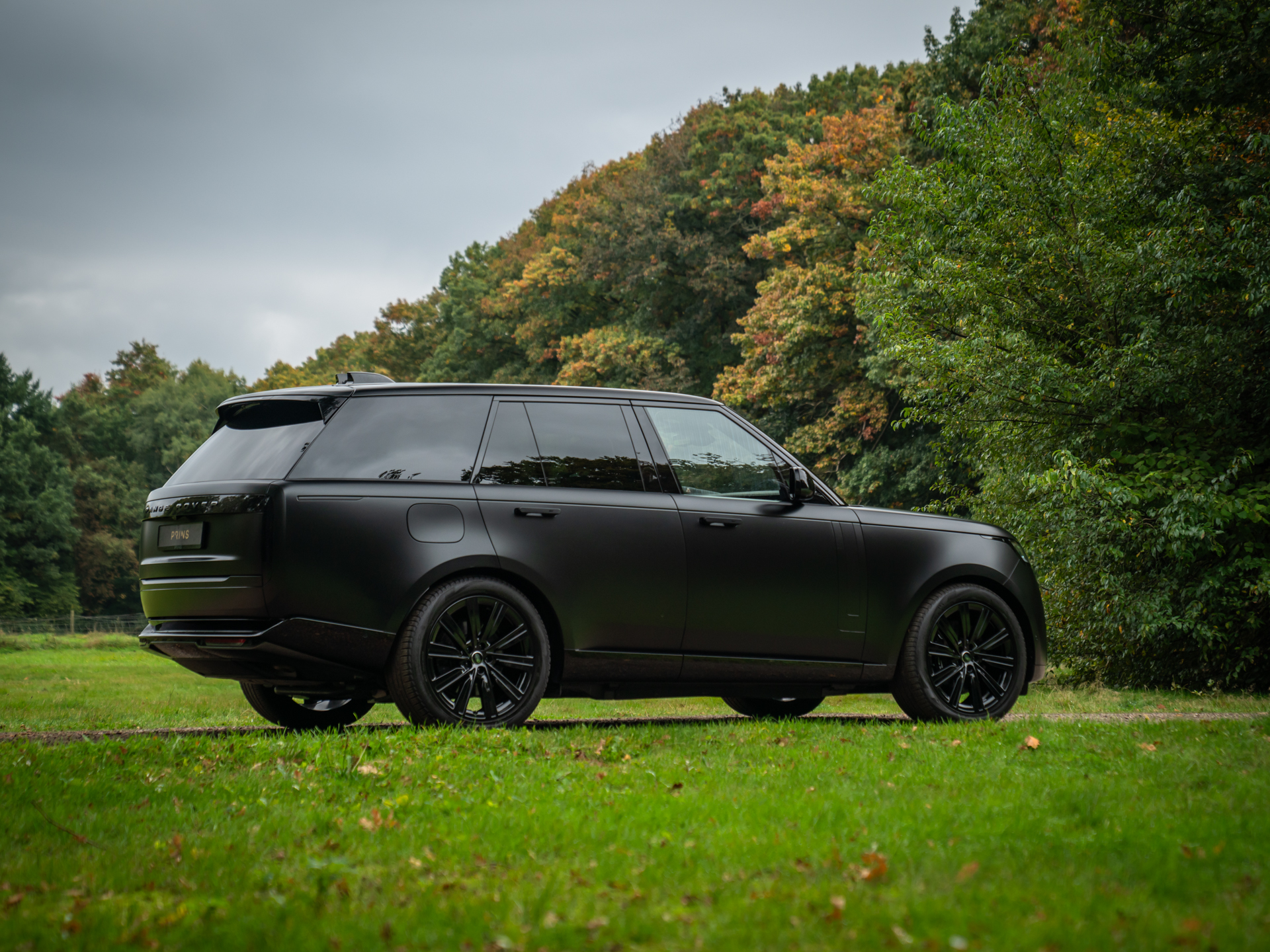 Nieuw binnen: zeer complete Range Rover P510e Autobiography PHEV in het zwart met een zwart lederen interieur.