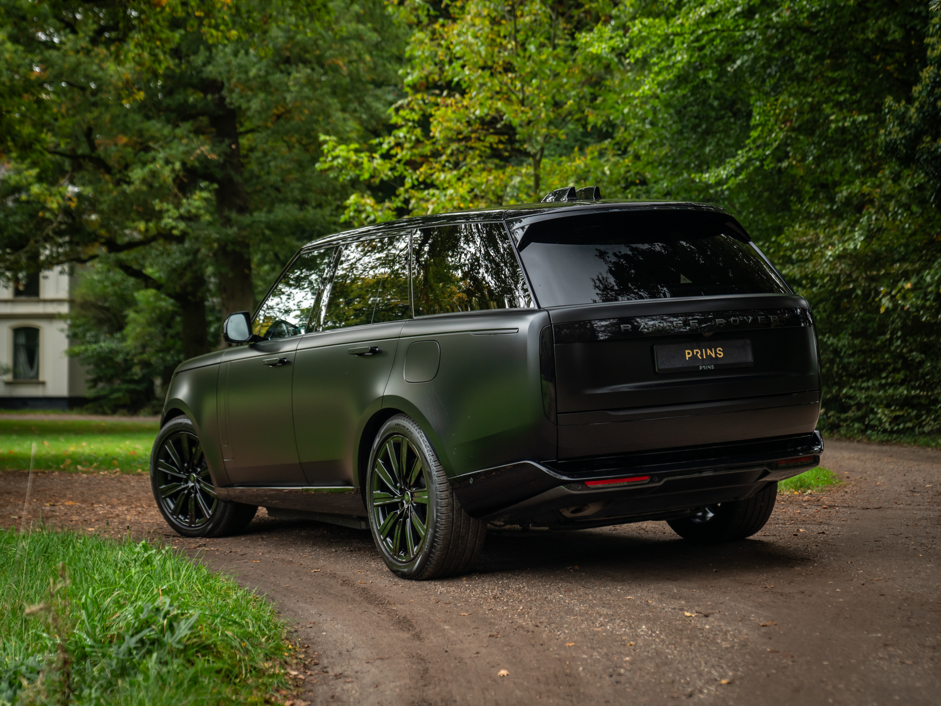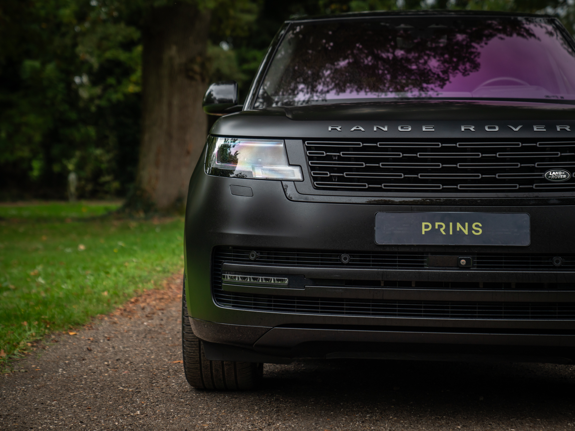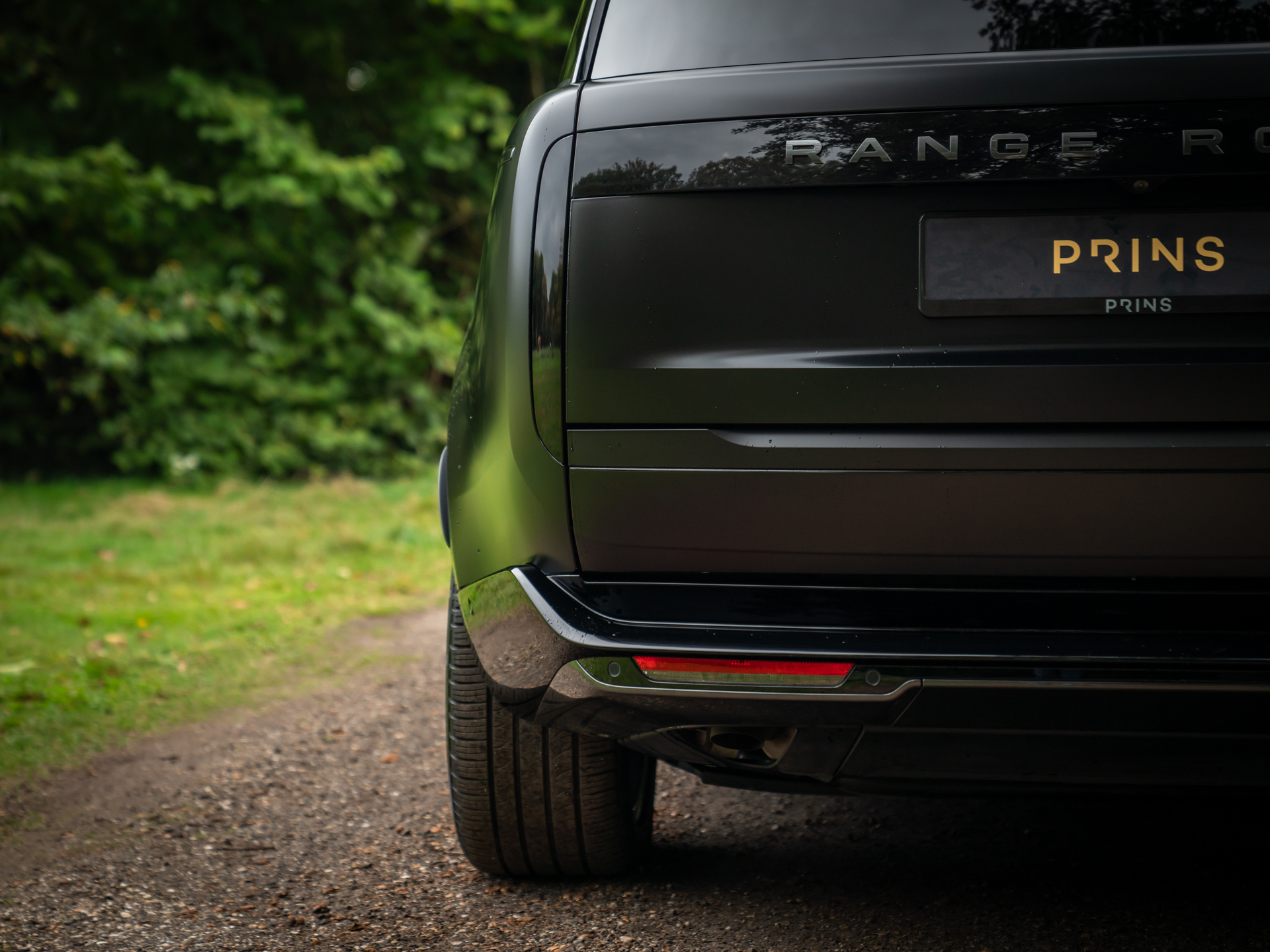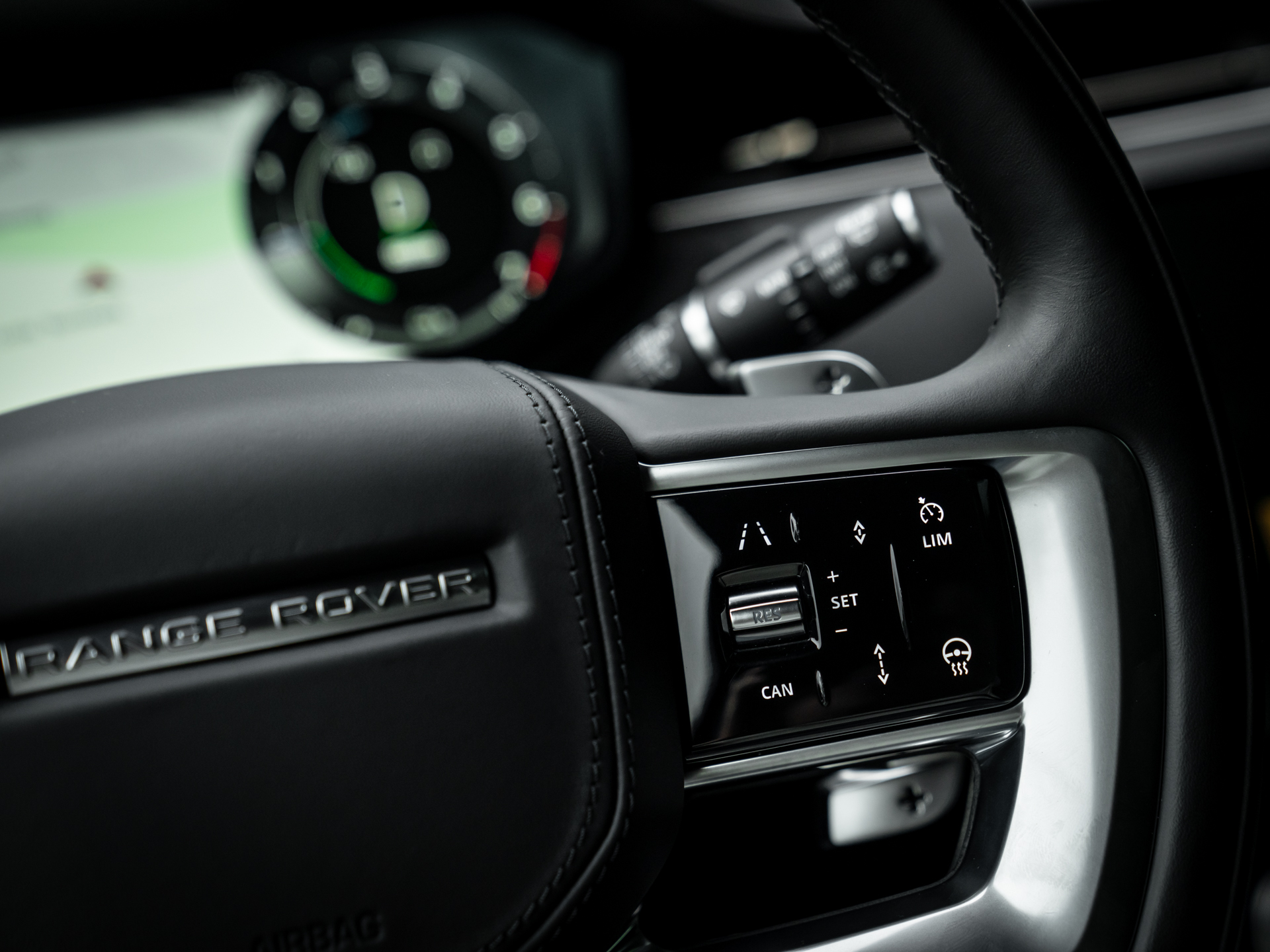 Nieuw binnen: zeer complete Range Rover P510e Autobiography PHEV in het zwart met een zwart lederen interieur.
