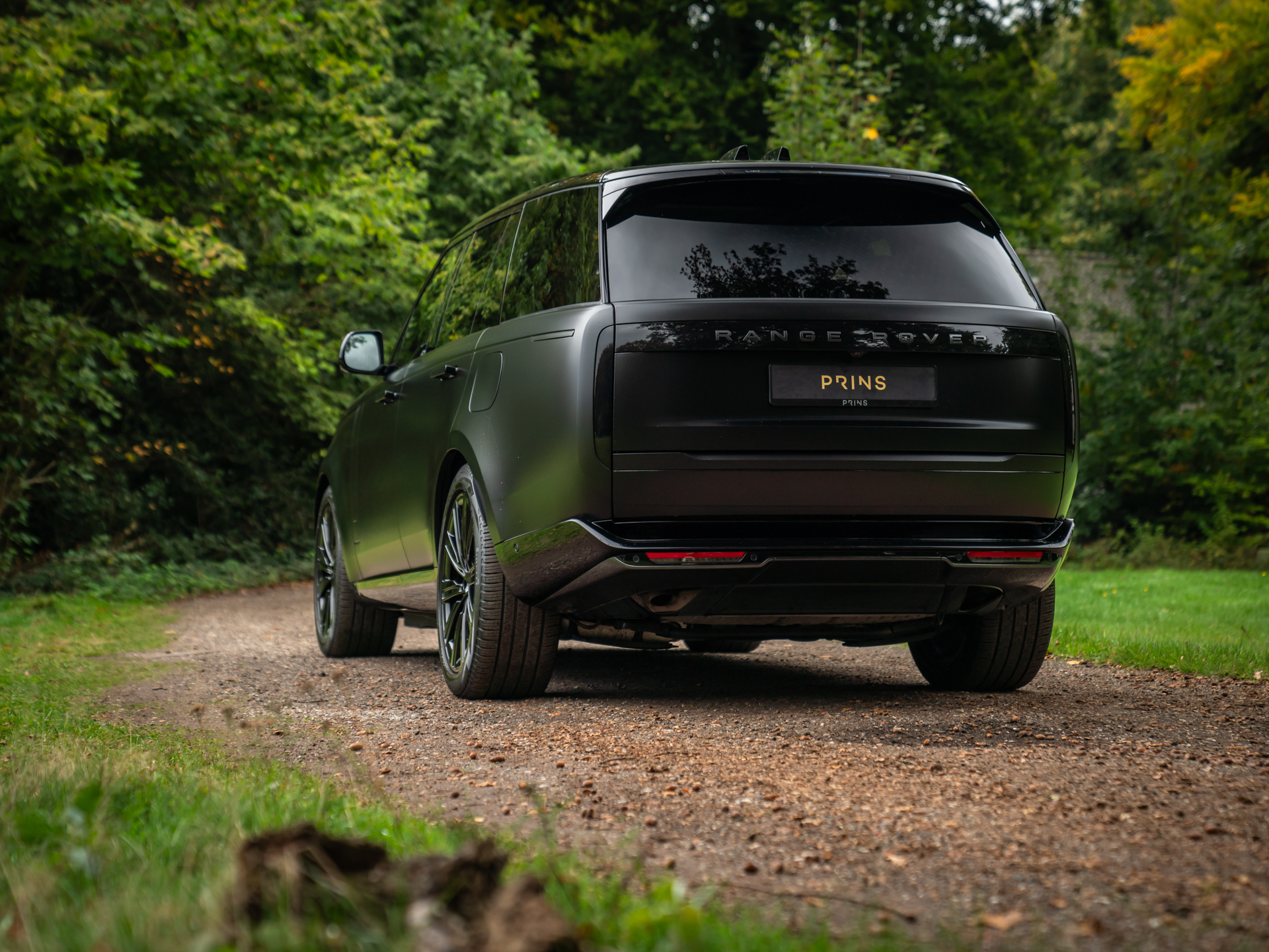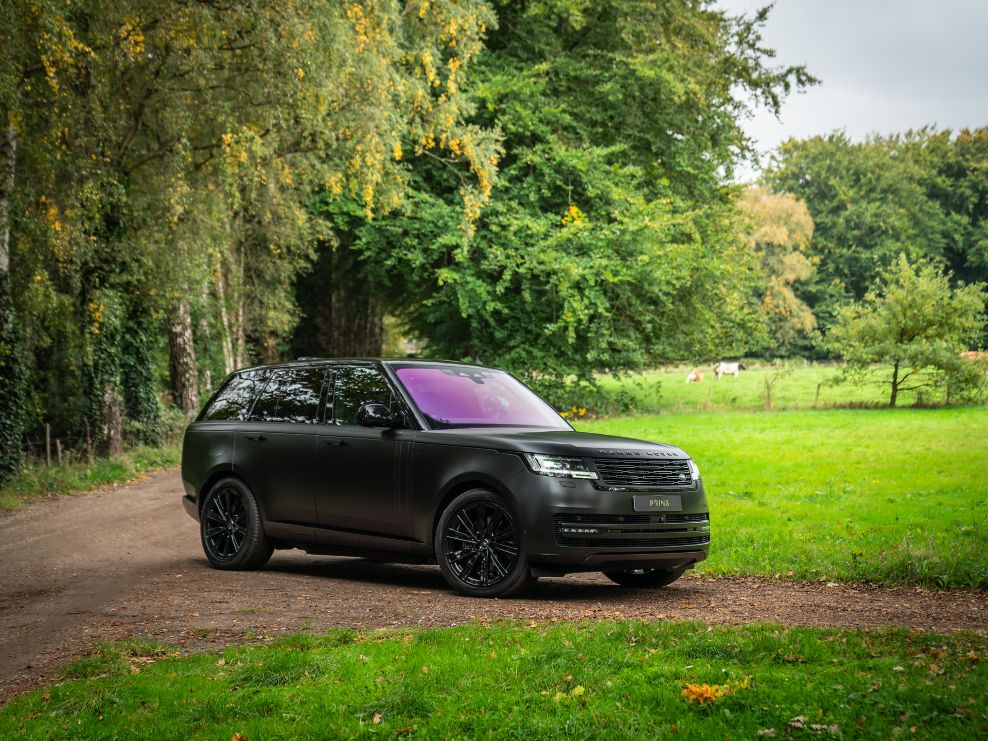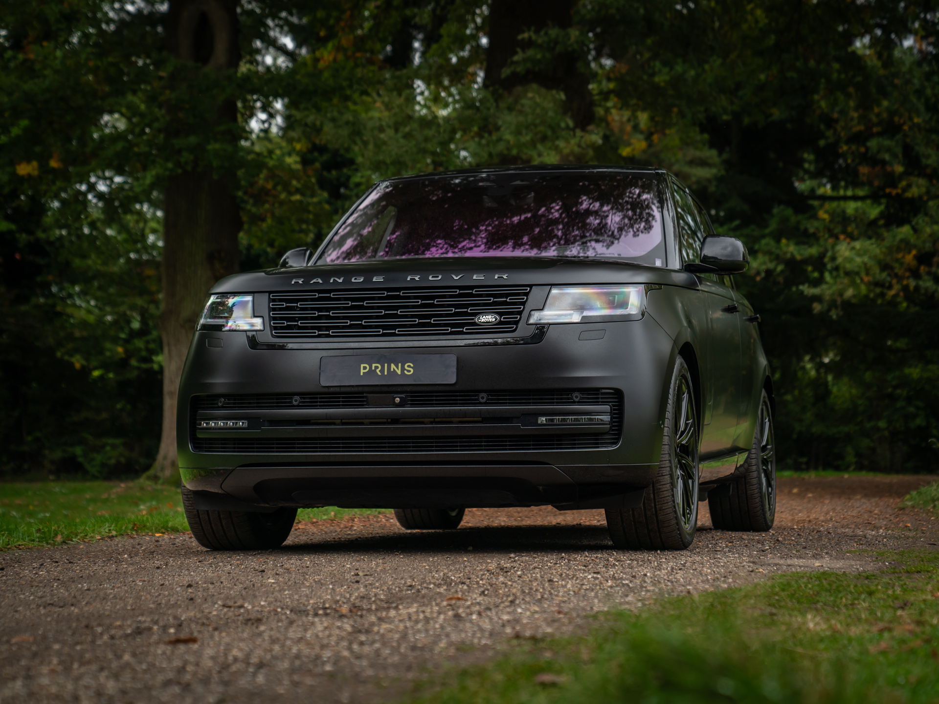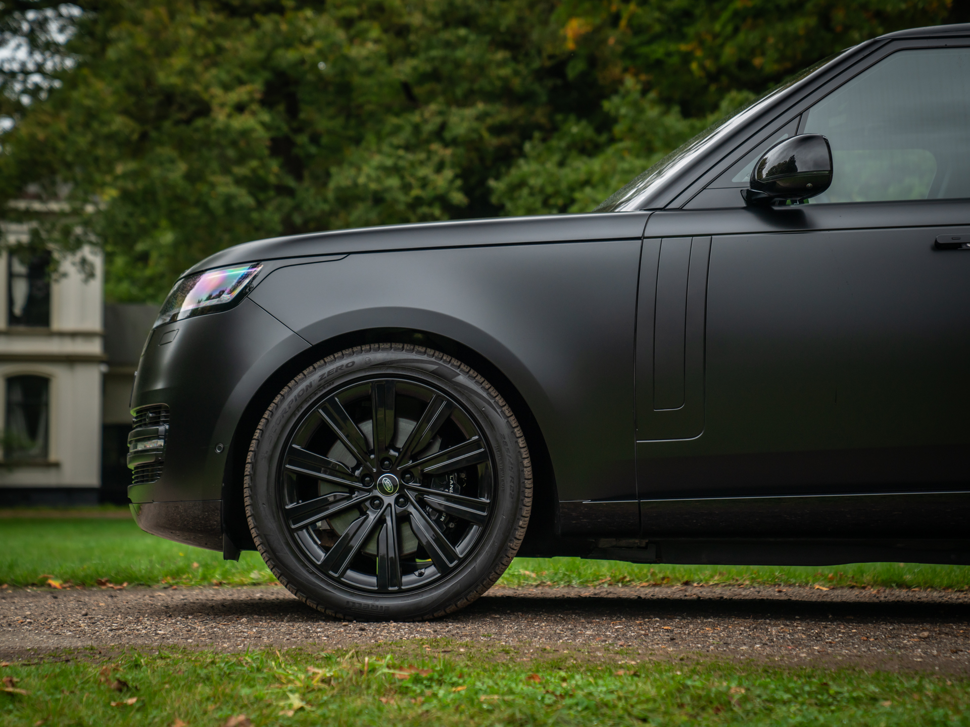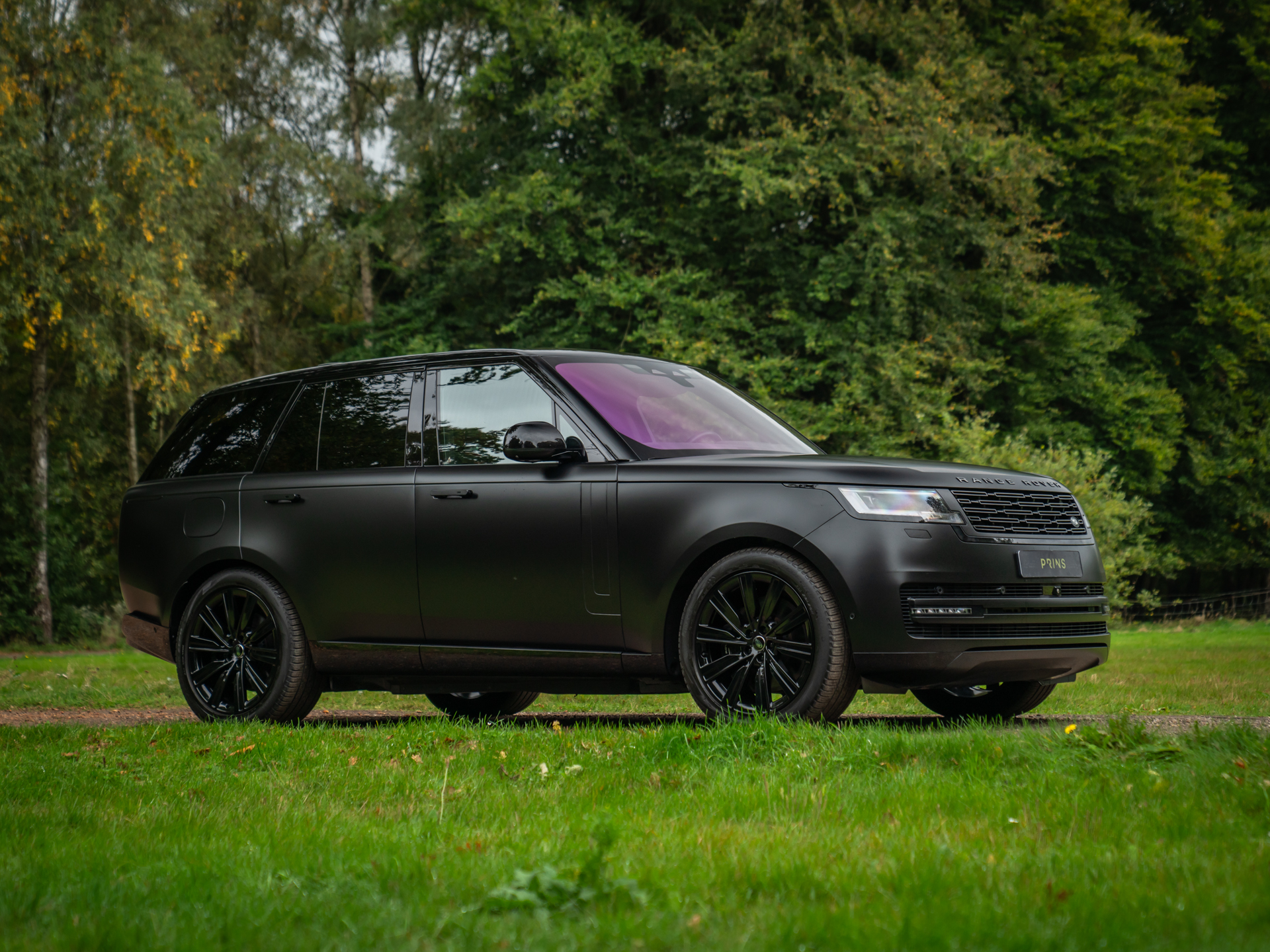 Nieuw binnen: zeer complete Range Rover P510e Autobiography PHEV in het zwart met een zwart lederen interieur.
