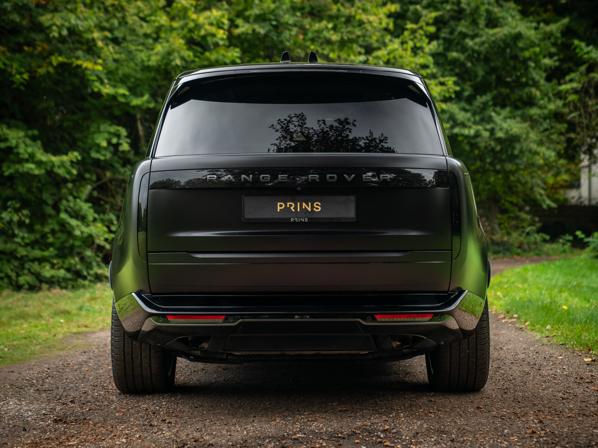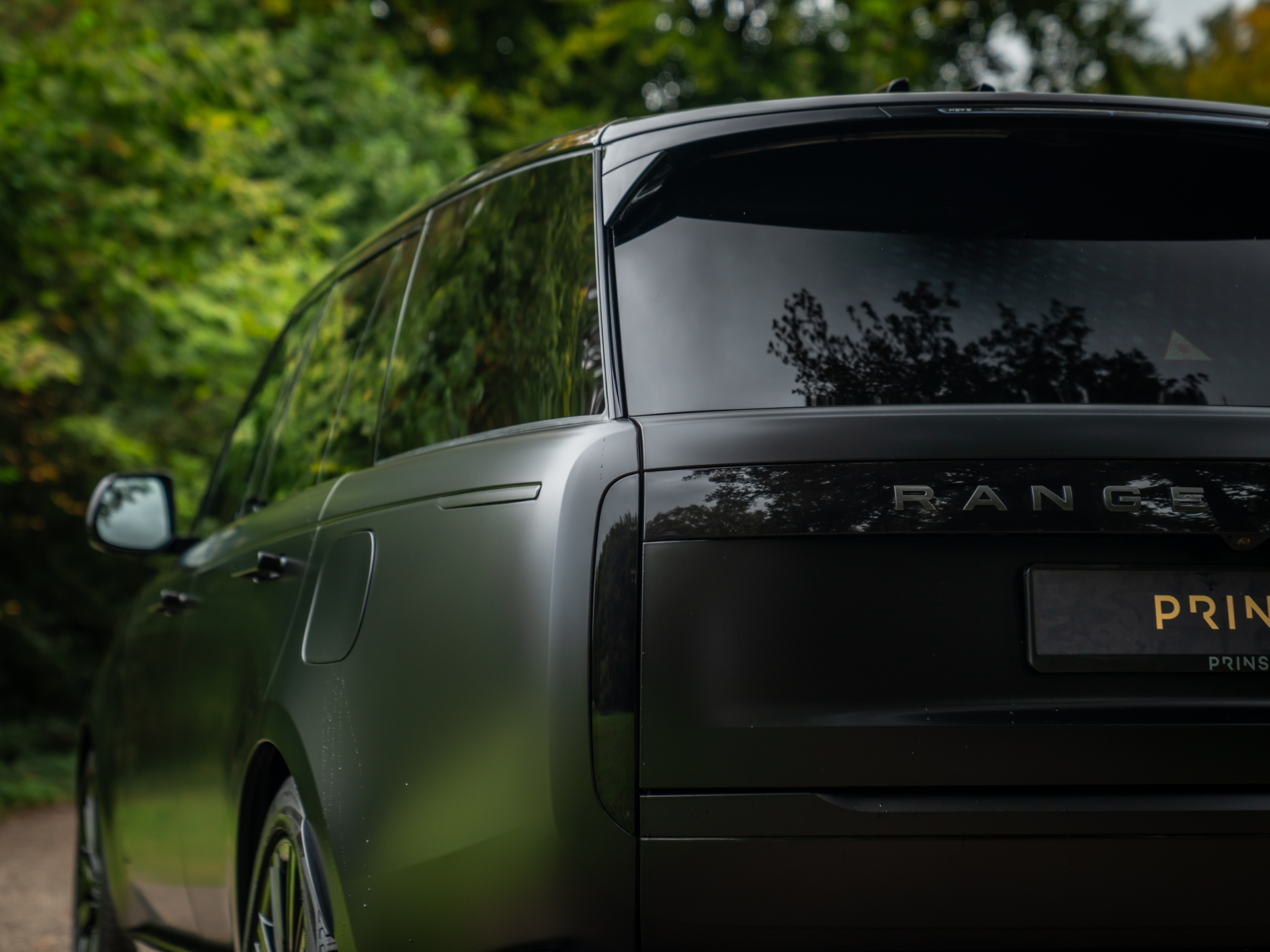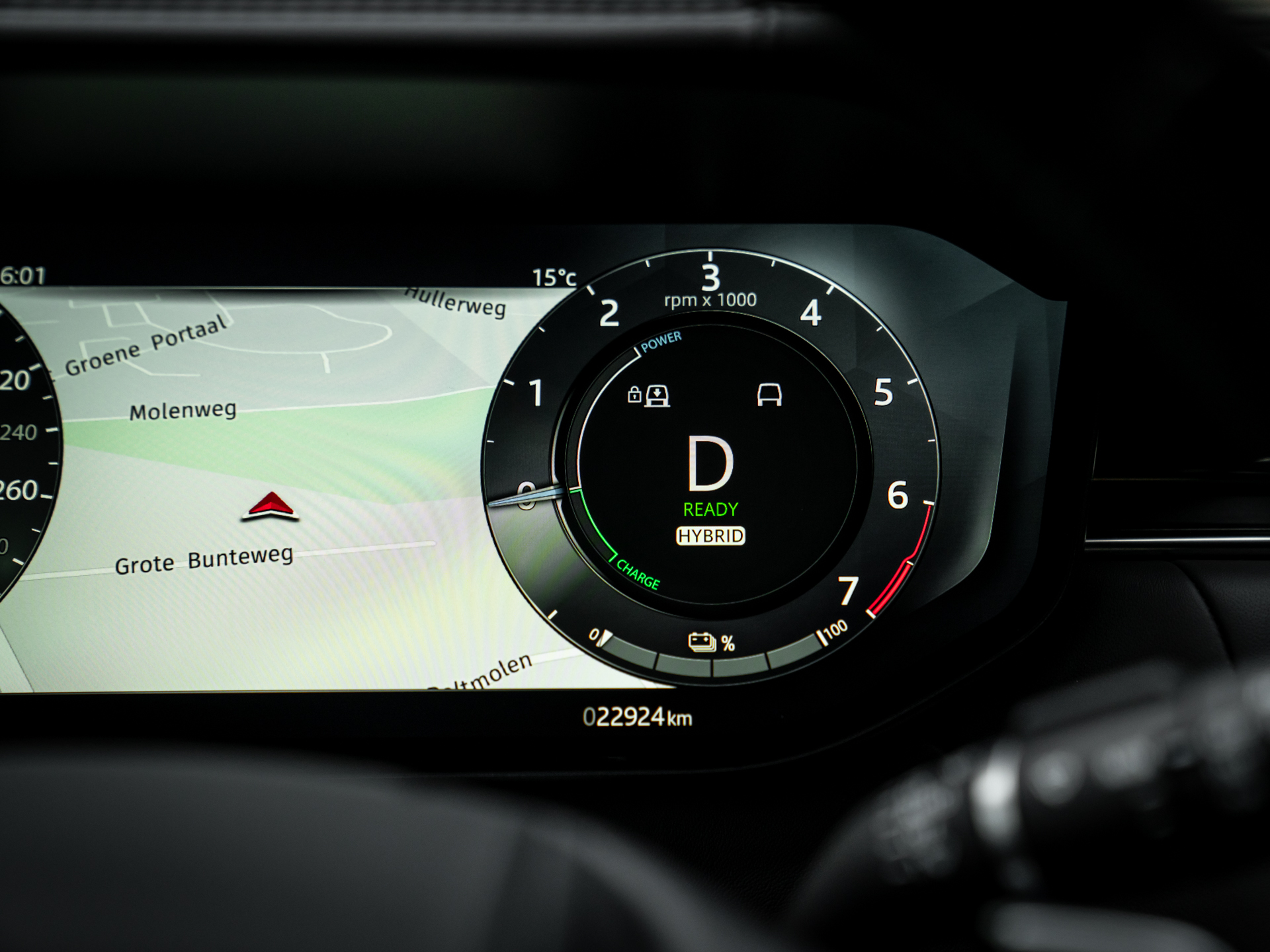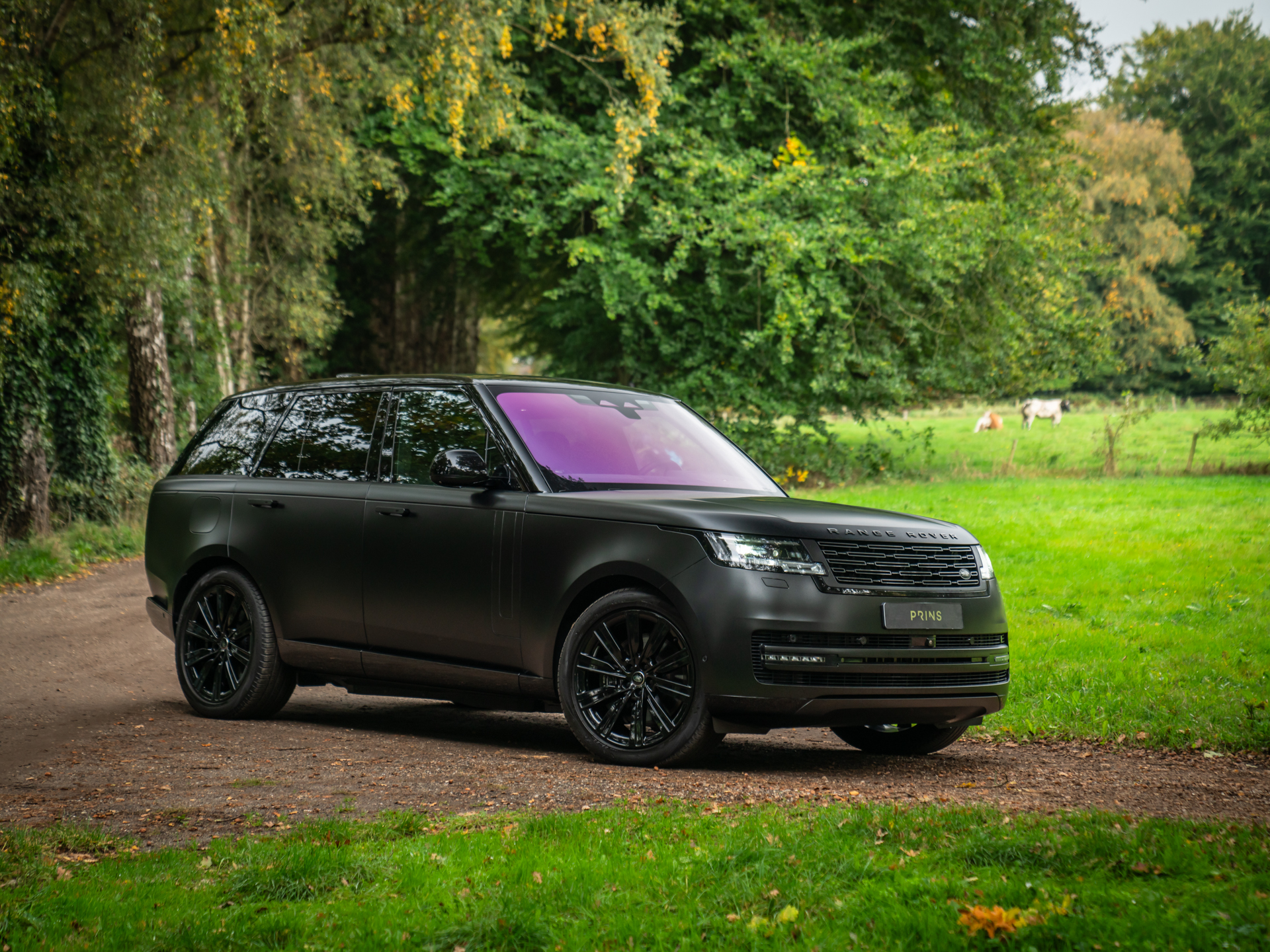 Nieuw binnen: zeer complete Range Rover P510e Autobiography PHEV in het zwart met een zwart lederen interieur.