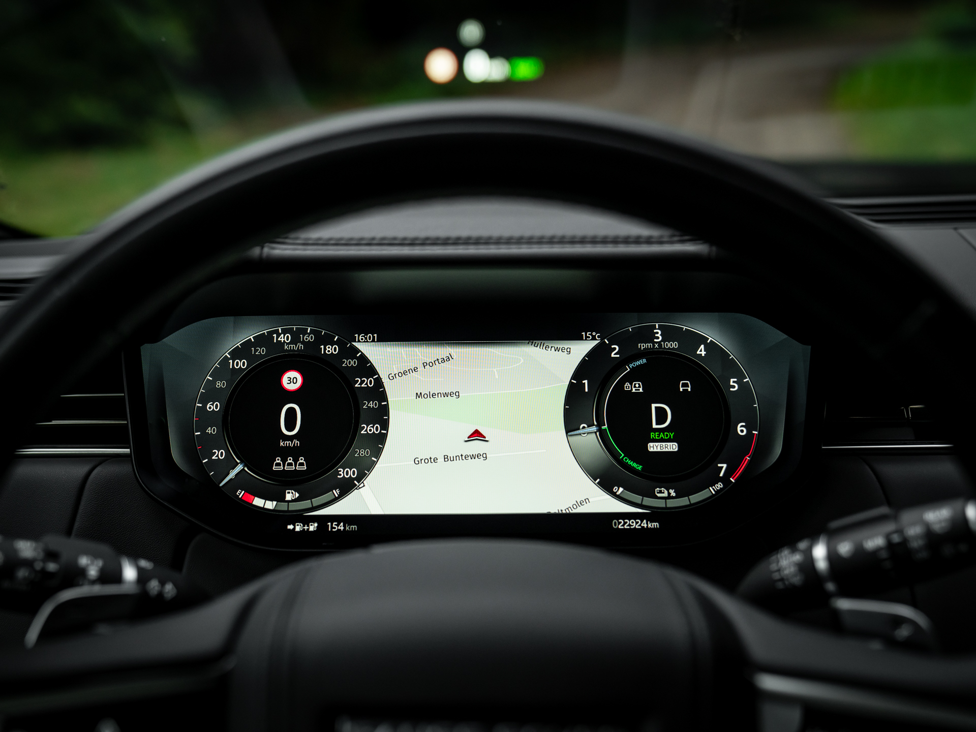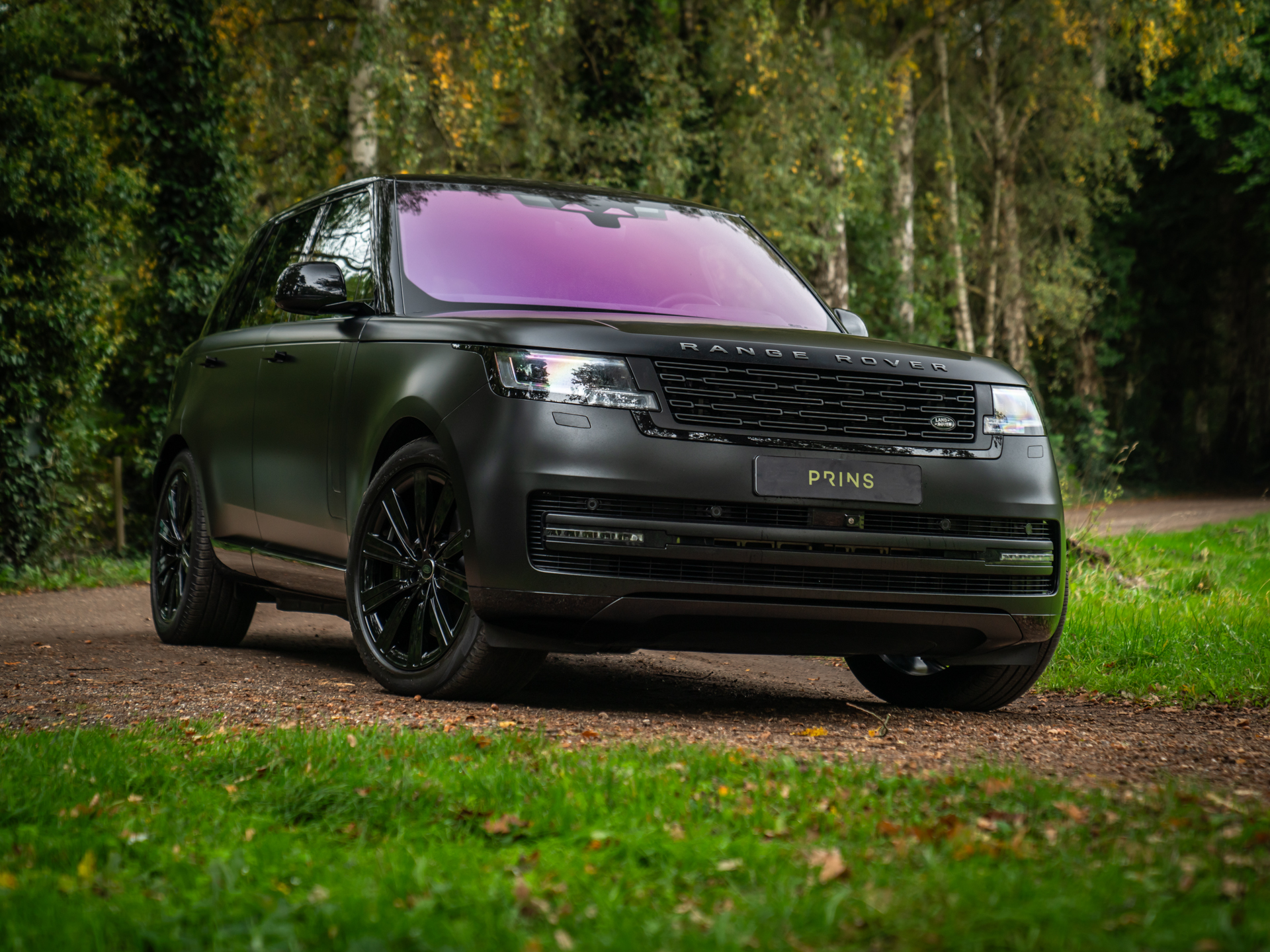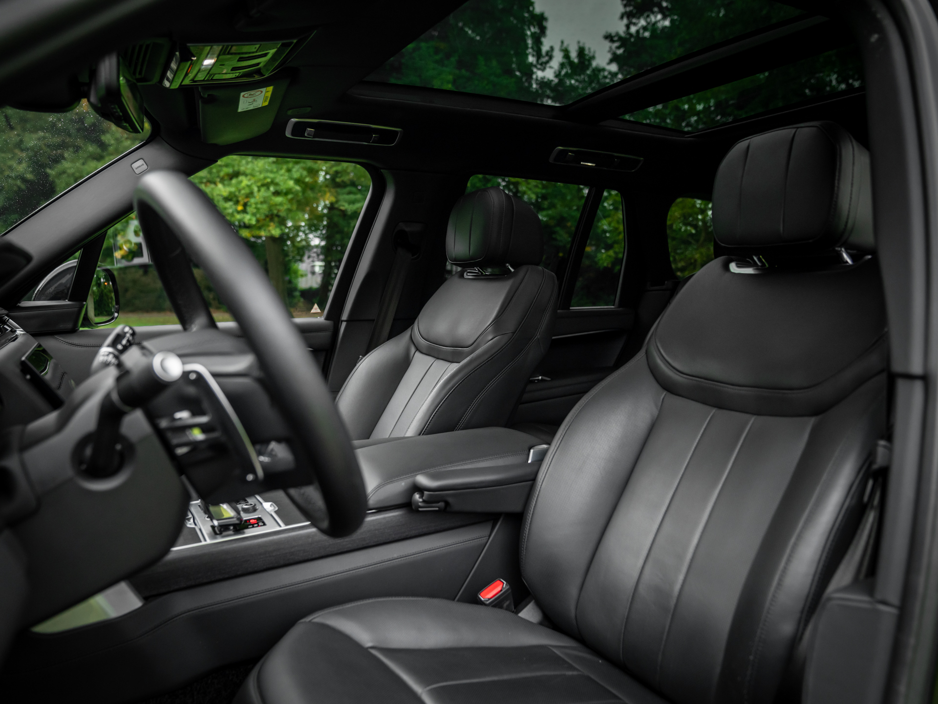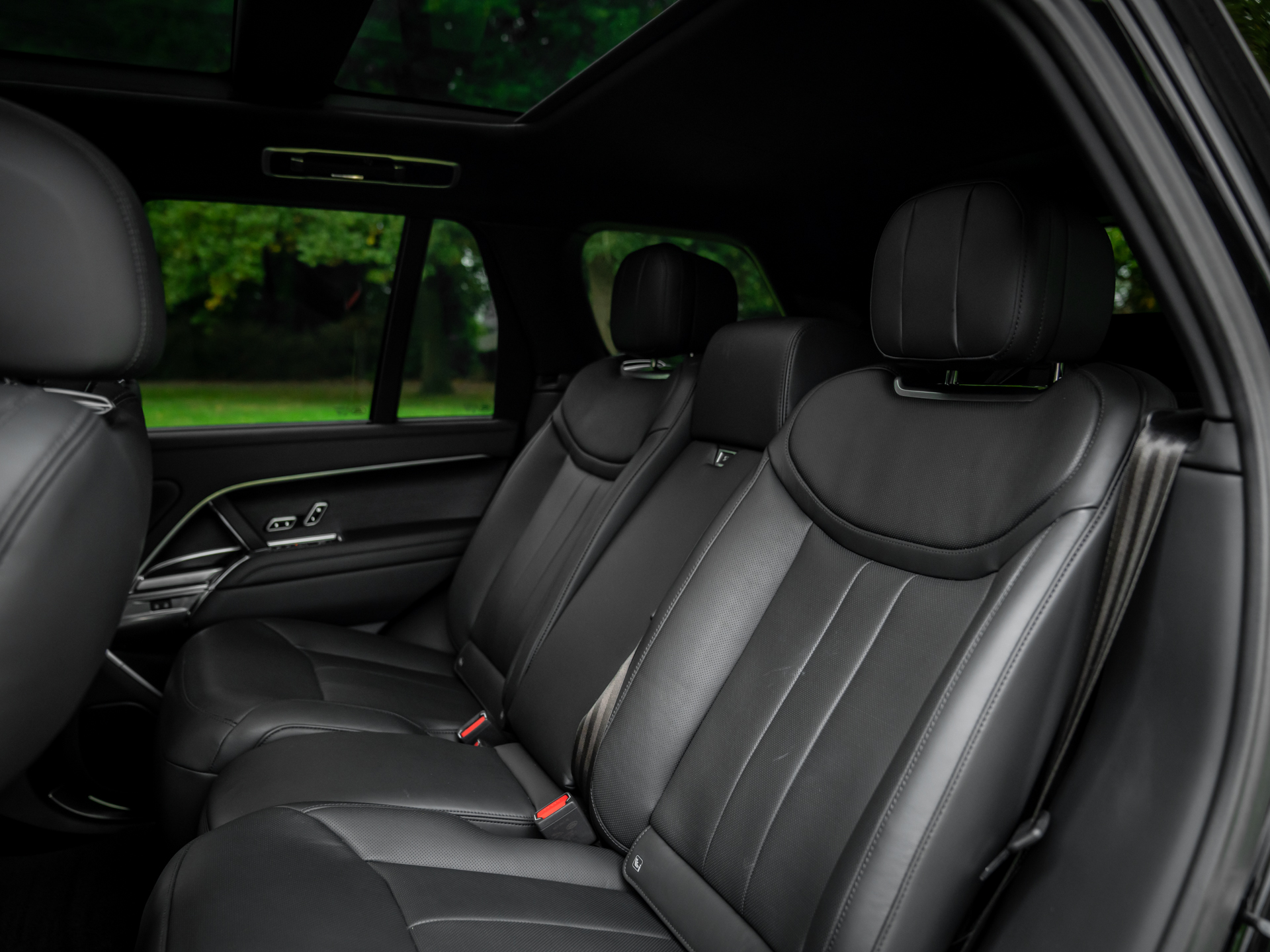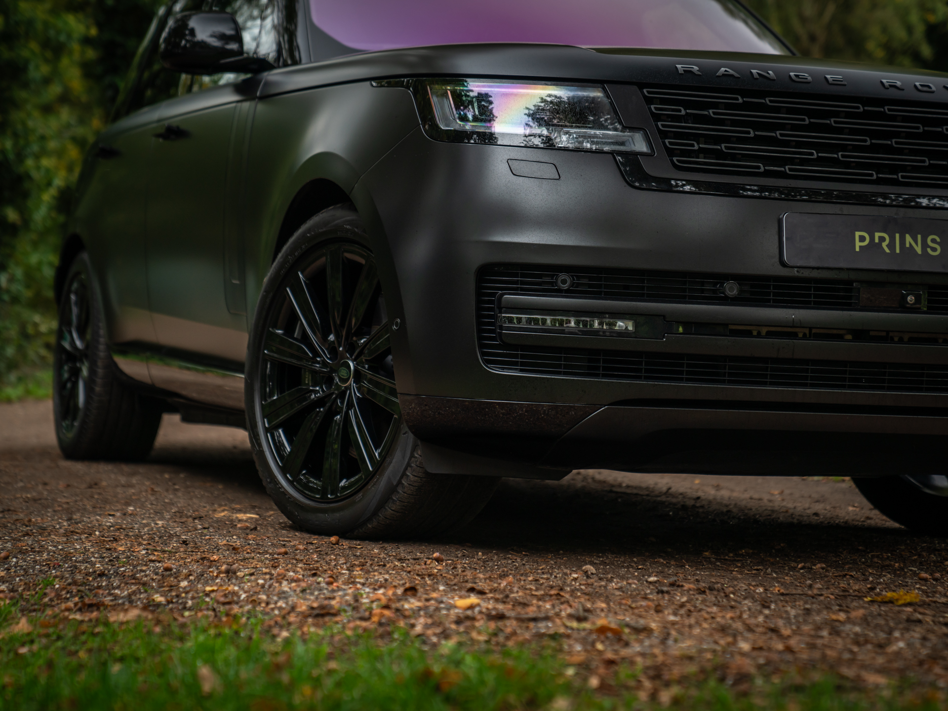 Nieuw binnen: zeer complete Range Rover P510e Autobiography PHEV in het zwart met een zwart lederen interieur.