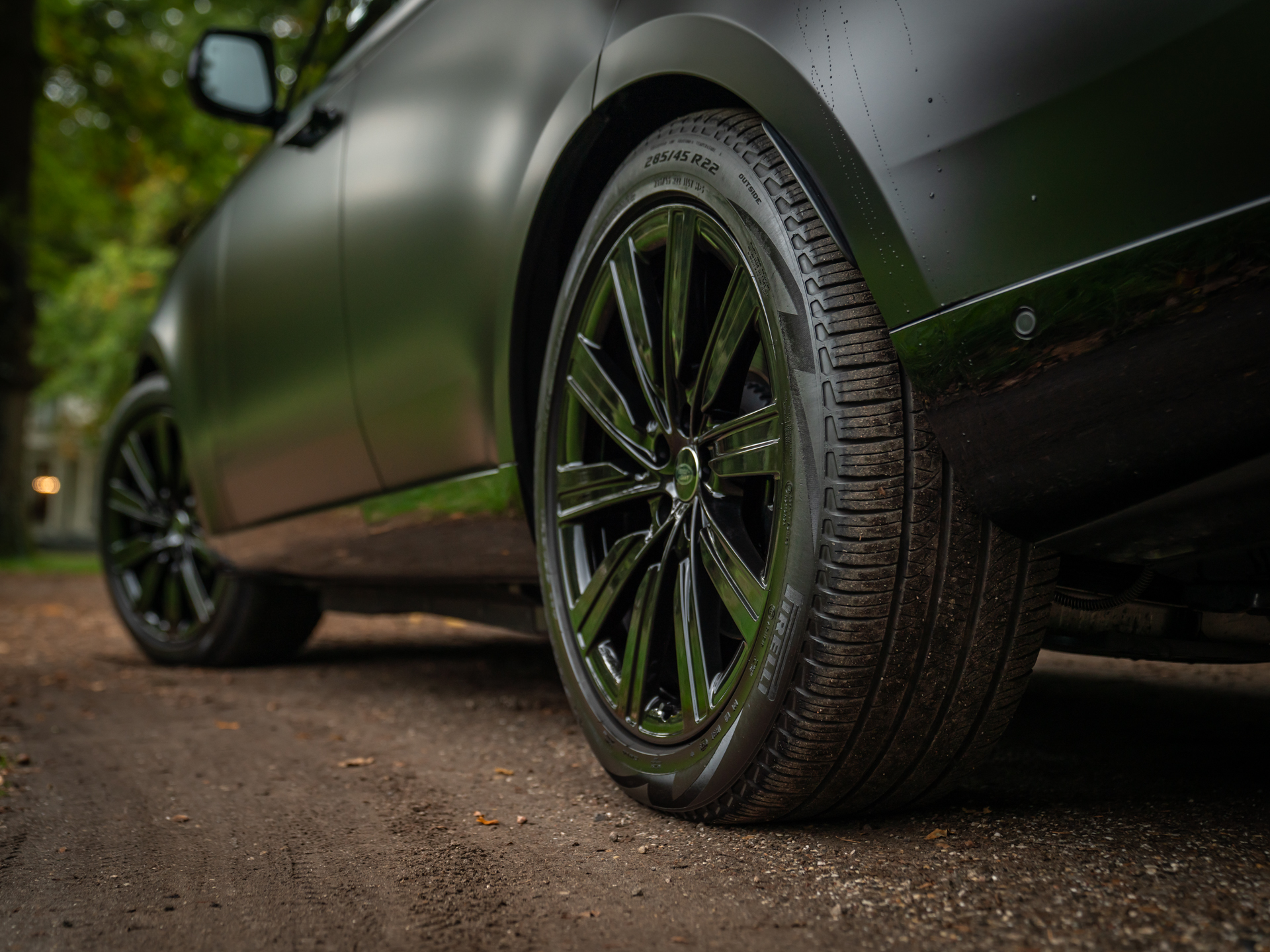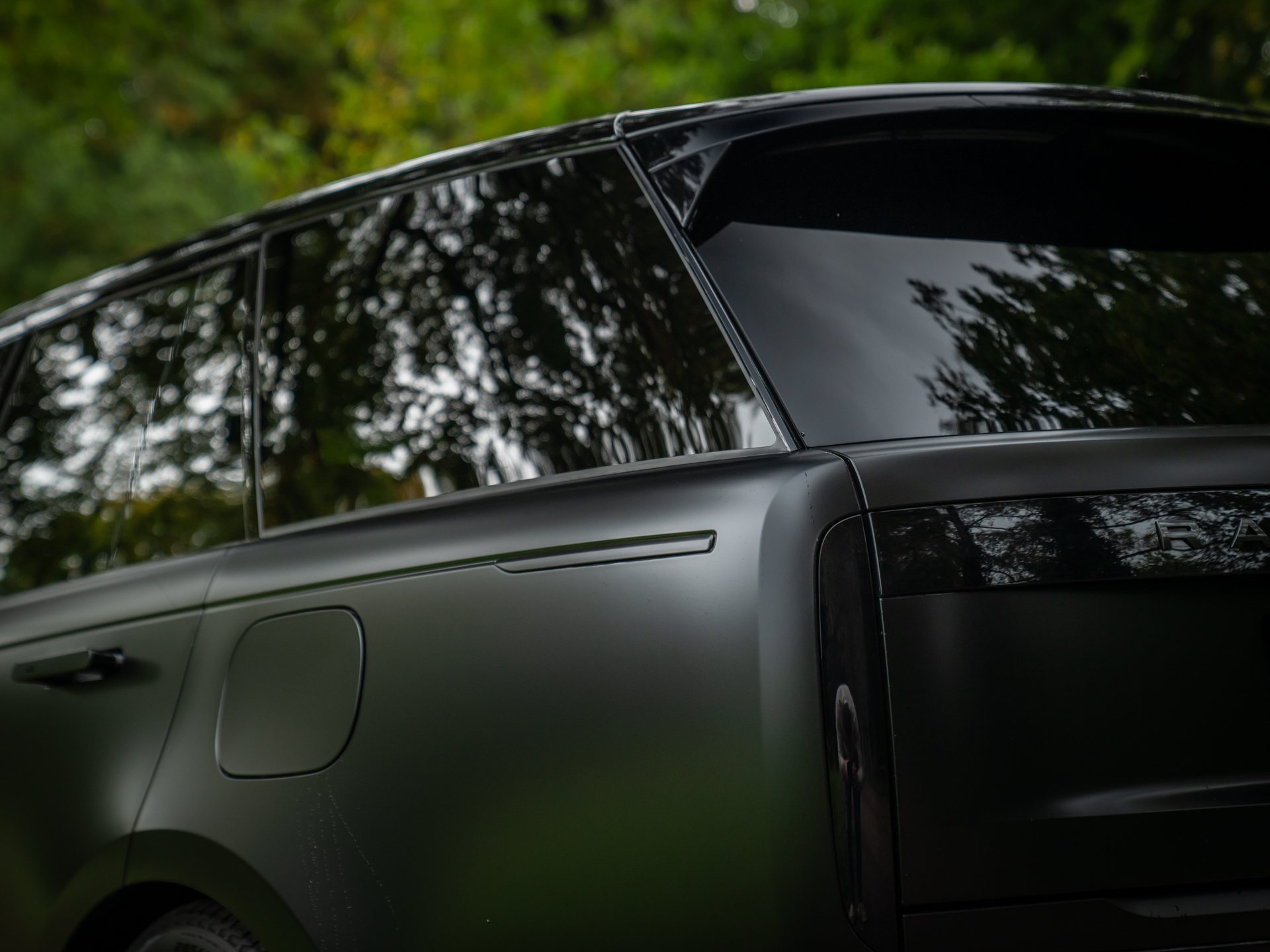 Betreft een matzwarte wrap: origineel is de lak zwart metallic.