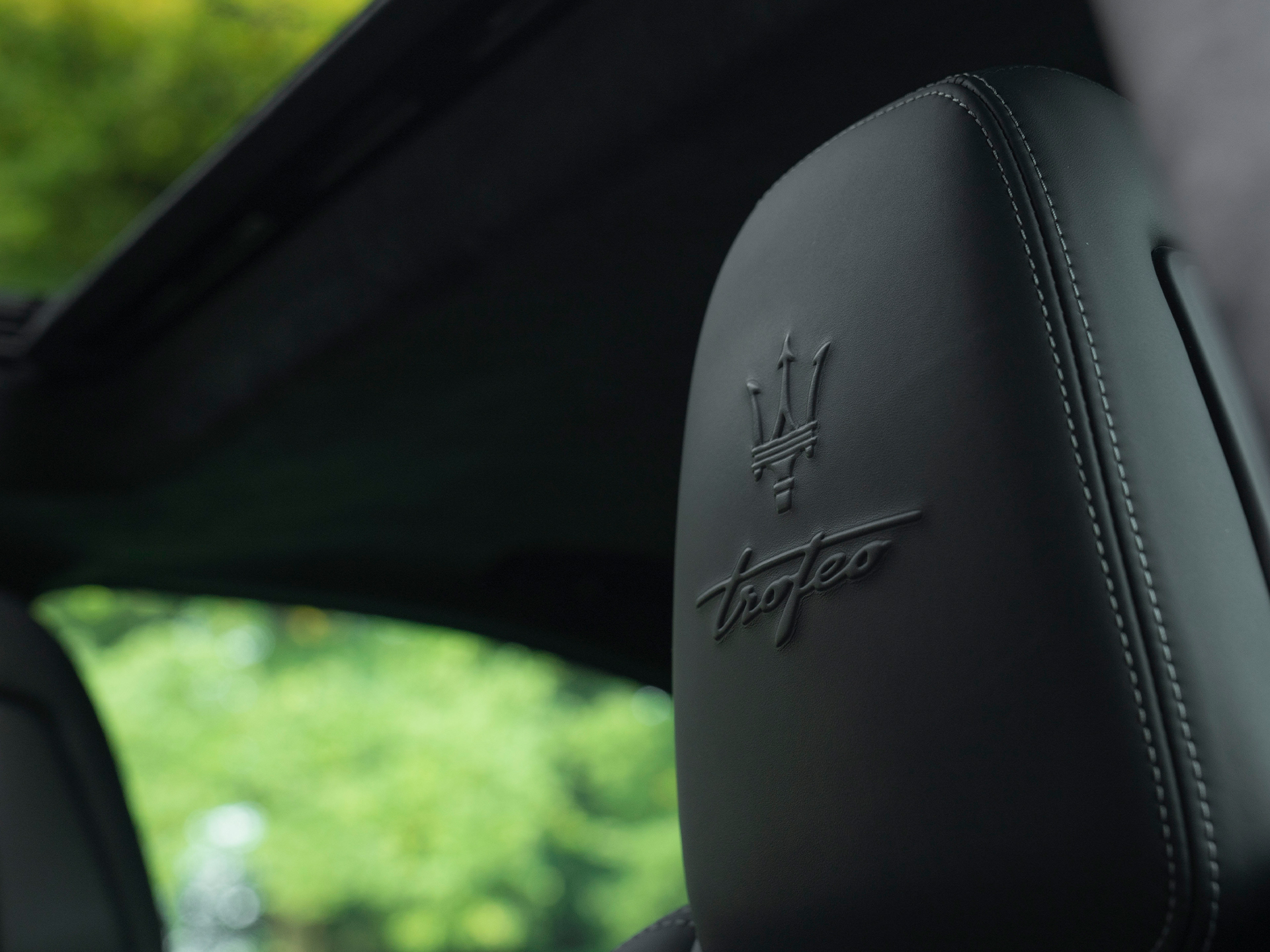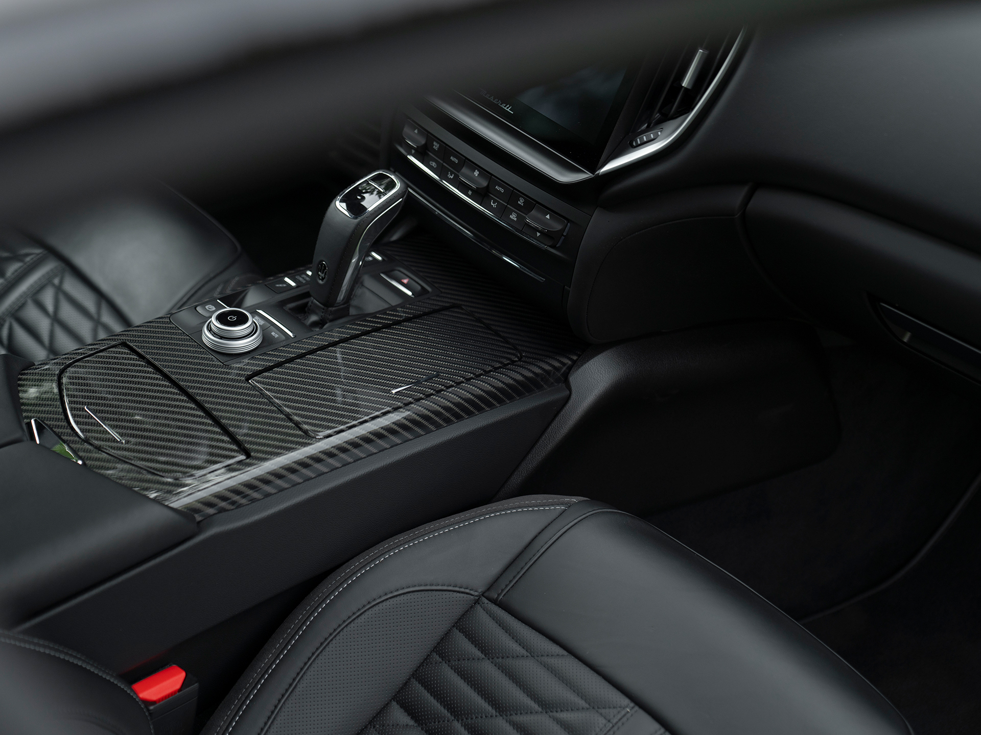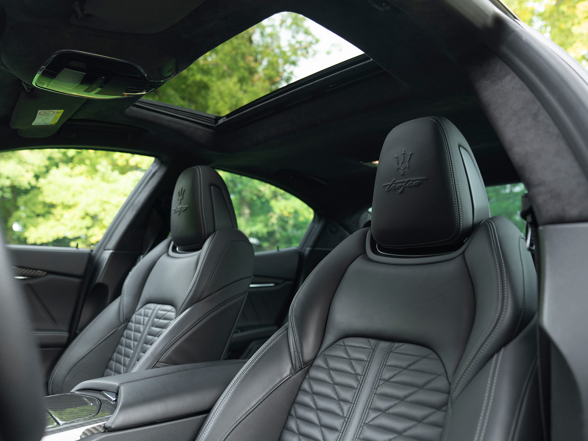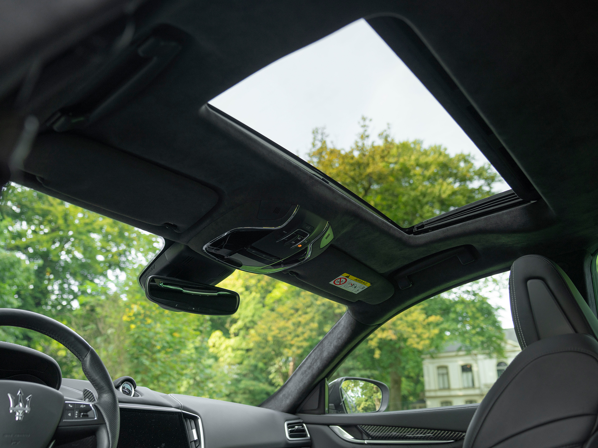 Wonderschoon van buiten, wonderschoon van binnen. De Ghibli V8 Trofeo cockpit wordt gekenmerkt door hoogwaardig materiaalgebruik en oog voor échte klasse. Nero leder heeft de overhand en is toegepast op onder andere het dashboard, de stoelen, het stuurwiel, de portieren en middenarmsteun. Trofeo badges in de hoofdsteunen en alcantara op zowel de stijlen als de dakhemel benadrukken de exclusiviteit van onze Maserati, terwijl een Interior Carbon Pack de sportieve ziel van de V8-aangedreven bella berlina maximaal onderstrepen. Onder andere de midden-/tunnelconsole en portierlijsten zijn voorzien van een schitterende koolstofvezel touch. Contraststiksels en een elektrisch glazen schuif-/kanteldak zorgen op subtiele, maar o zo effectieve wijze voor licht in de overwegende duistere cockpit.