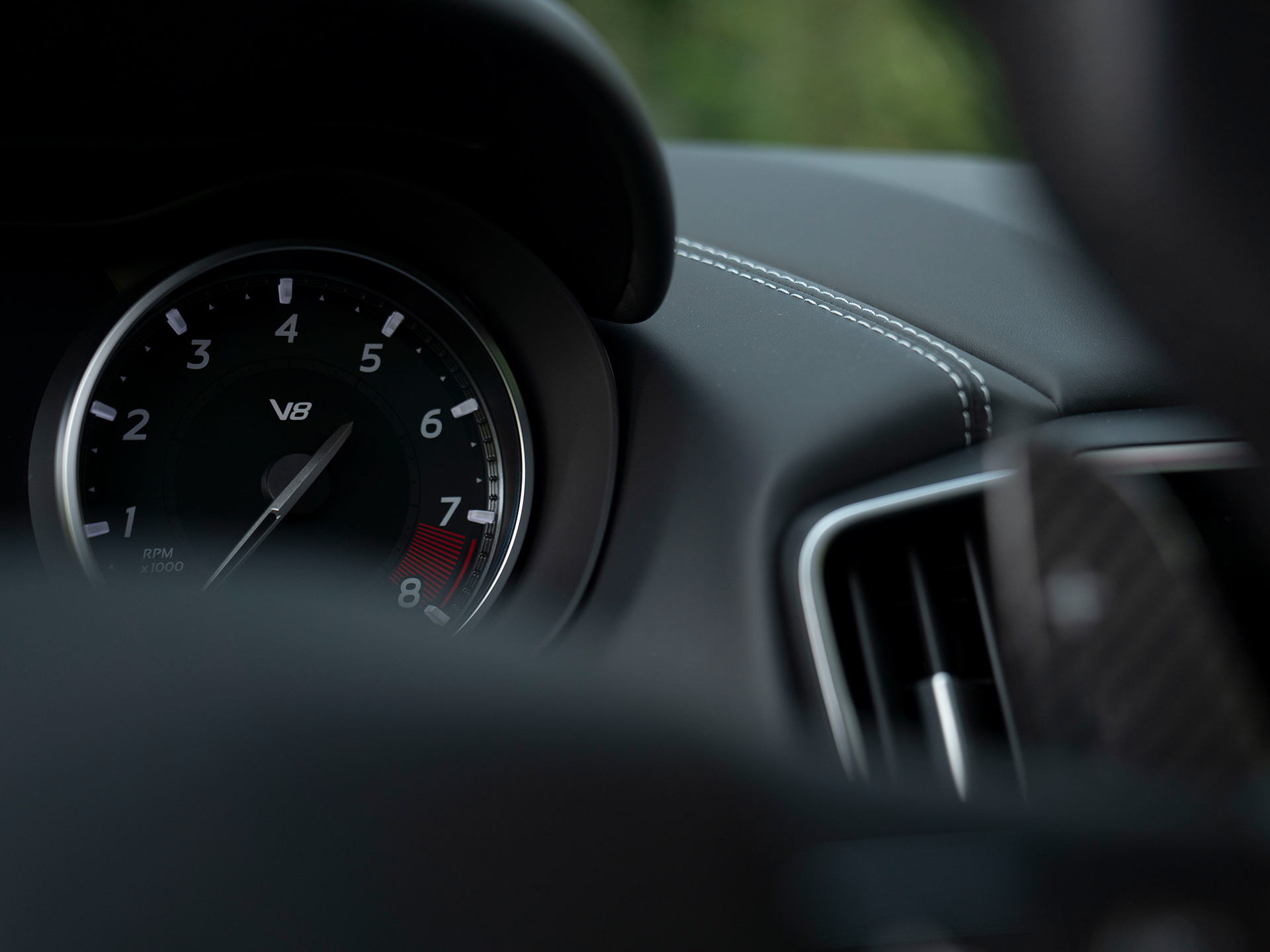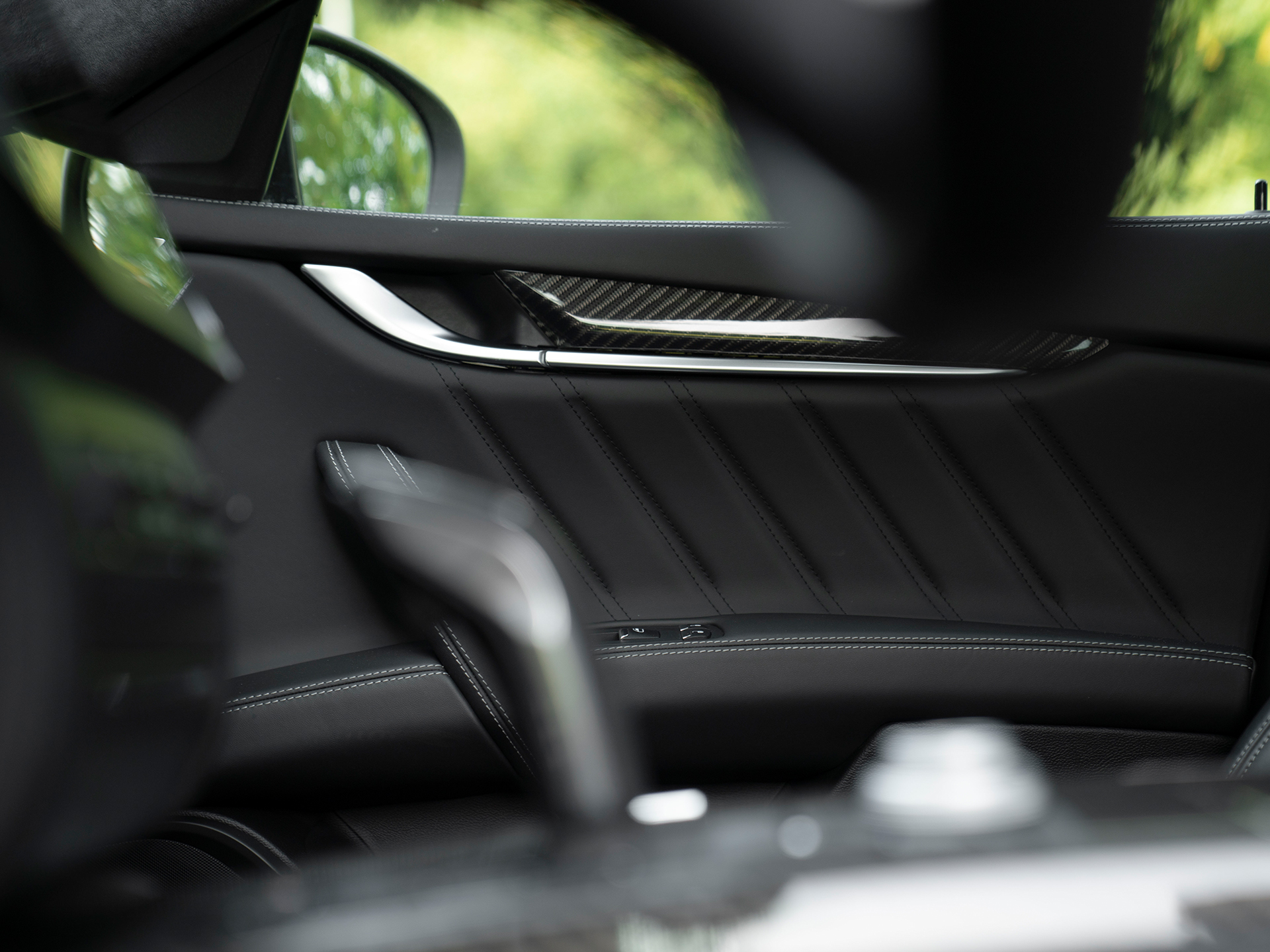 De 3,8 liter V8 in het Maserati front is genadeloos als het om power en prestaties gaat: 580 paarden, 730 Newtonmeters en 8 automatische versnellingen garanderen een 0-100 km/h sprinttijd van slechts 4,3 seconden, terwijl de ultieme performance-sedan een supercar-achtige topsnelheid laat noteren van maar liefst 326 km/h. Daarnaast biedt de bi-turbo niets dan beleving wanneer het rechterpedaal richting het tapijt gaat; de geluidssensatie is enorm en van een ongeëvenaard niveau – zeker in deze klasse! Wie de classy limo in Corsa-modus zet wordt bovendien getrakteerd op bijpassende rijeigenschappen. Van ’t soort dat thuishoort op ‘de ideale sportauto’… We hebben niets te veel gezegd, toch?
