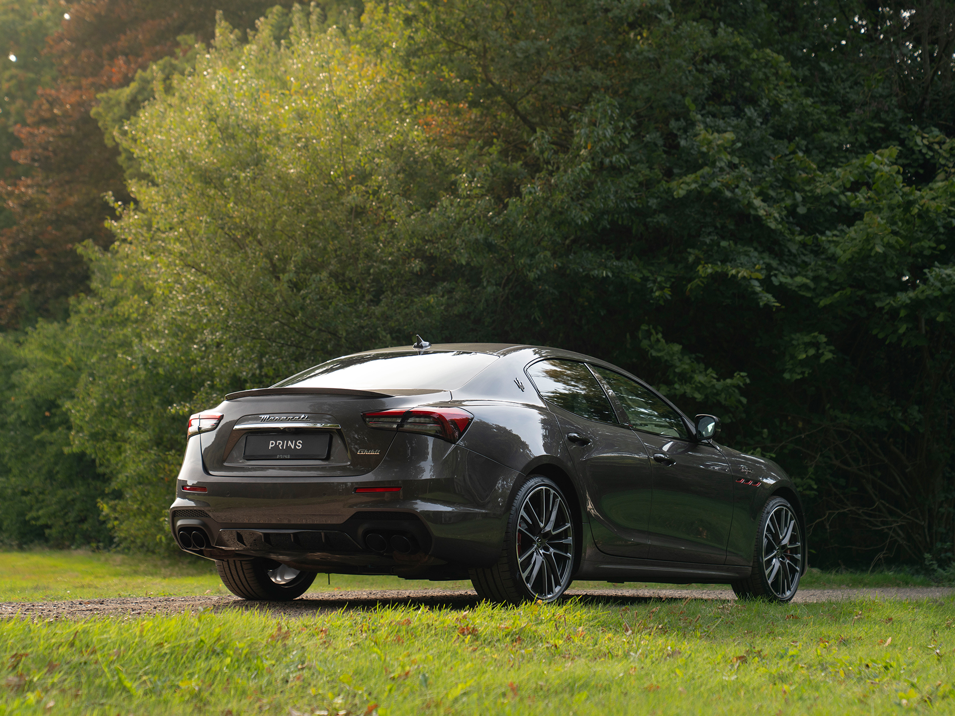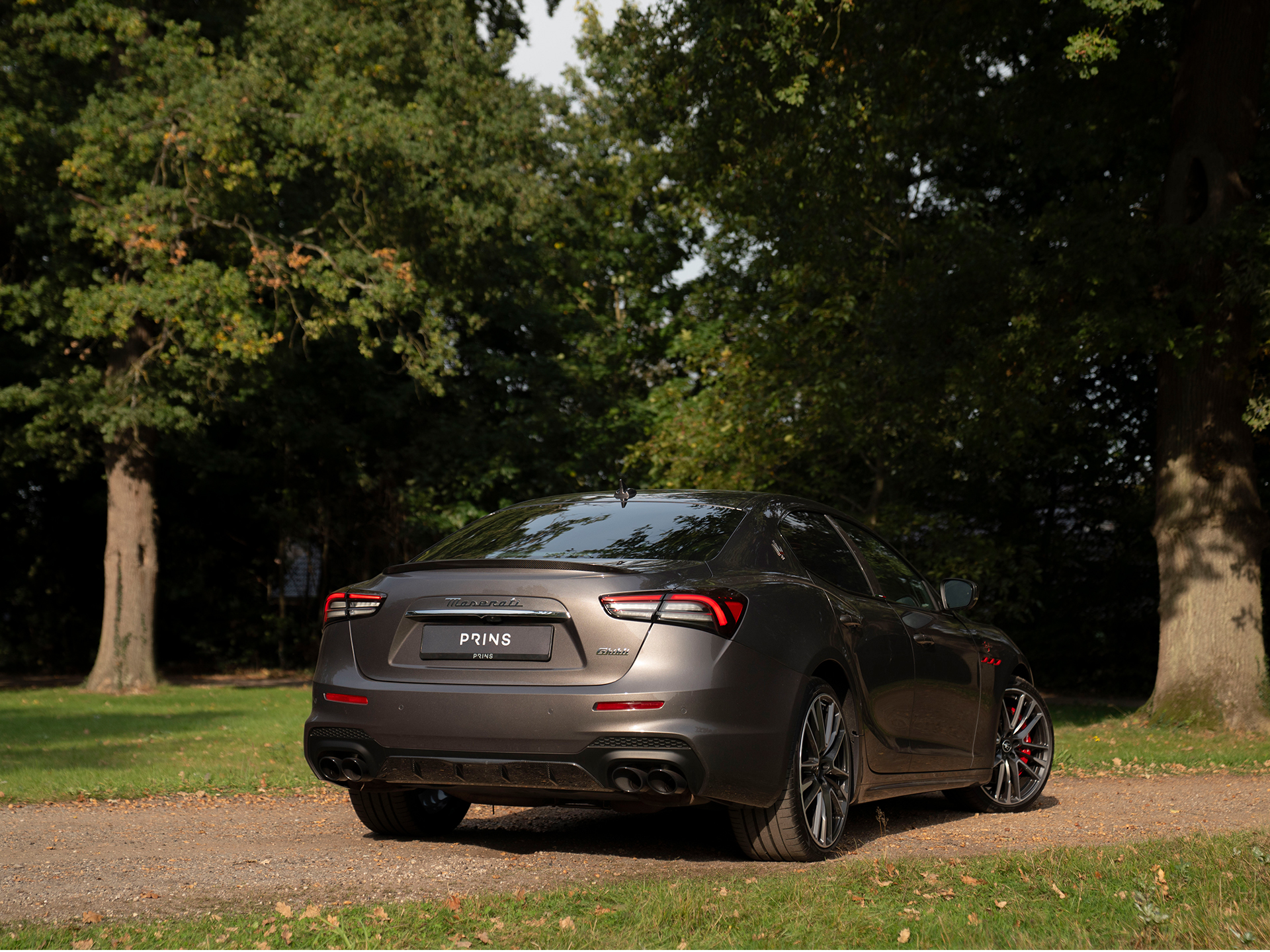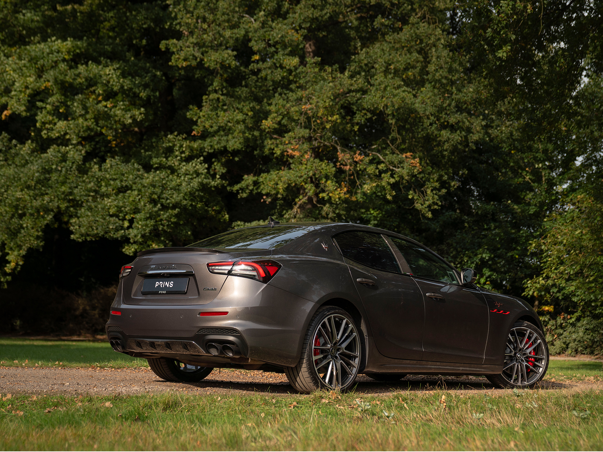 De ideale sportauto bestaat niet? Vanaf vandaag zijn criticasters een illusie armer, want Prins introduceert een uniek mooi uitgevoerde Maserati Ghibli mét meesterlijke V8 – zowel qua sound als performance. Haar naam is Trofeo, en een winnaar is het zeer zeker, in álle opzichten. De 580 pk sterke bella macchina is in het lijf van een luxe limousine geboren, maar is diep van binnen ongehoord sportief en toont zich op detailniveau een opwindende smaakmaker. Onze Ghibli 3.8 maakt het verschil met een hoogst begeerlijke aankleding in de vorm van een Interior én Exterior Carbon Pack. De vele hightech koolstofvezel features uit de racerij worden vergezeld door luxe en comfort dat thuishoort in de absolute topklasse: Adaptive Cruise Control, Driver Assistance Pack Plus, Welcome Pack, Connectivity Pack, Surround View Camera, Premium audio, stoelventilatie en een elektrisch schuif-/kanteldak maken van de Maserati Ghibli Trofeo de meest gepolijste sportwagen van dit moment. Al blijft de sound van de 8-cilinder onverminderd woest en rauw. Precies zoals de liefhebber het hebben wil!