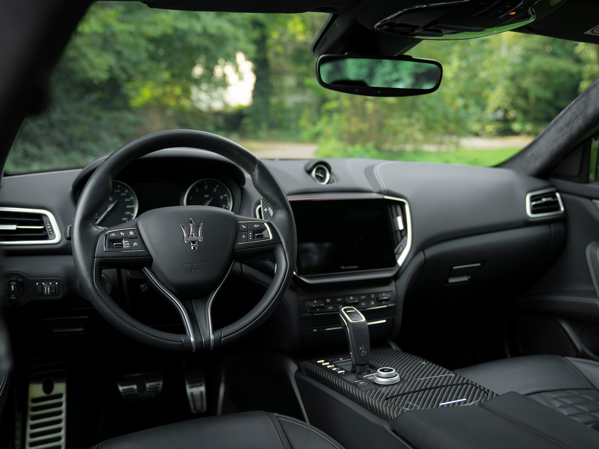 Dat de absolute topversie van de Maserati Ghibli stiekem de perfecte allrounder is, wordt nog eens duidelijk bij het aanschouwen van de rest van de uitrusting: Driver Assistance Pack Plus, Adaptive Cruise Control, stoelverwarming, stoelventilatie, een Welcome Pack, Surround View Camera, Connectivity Pack en Traffic Sign Recognition maken van deze supersporter een heerlijk comfortabele én ontspannen reisgezel. Totdat het volume van het Premium audiosysteem omlaag wordt geschroefd en plaatsmaakt voor de klanken van een magische 8-cilinder…