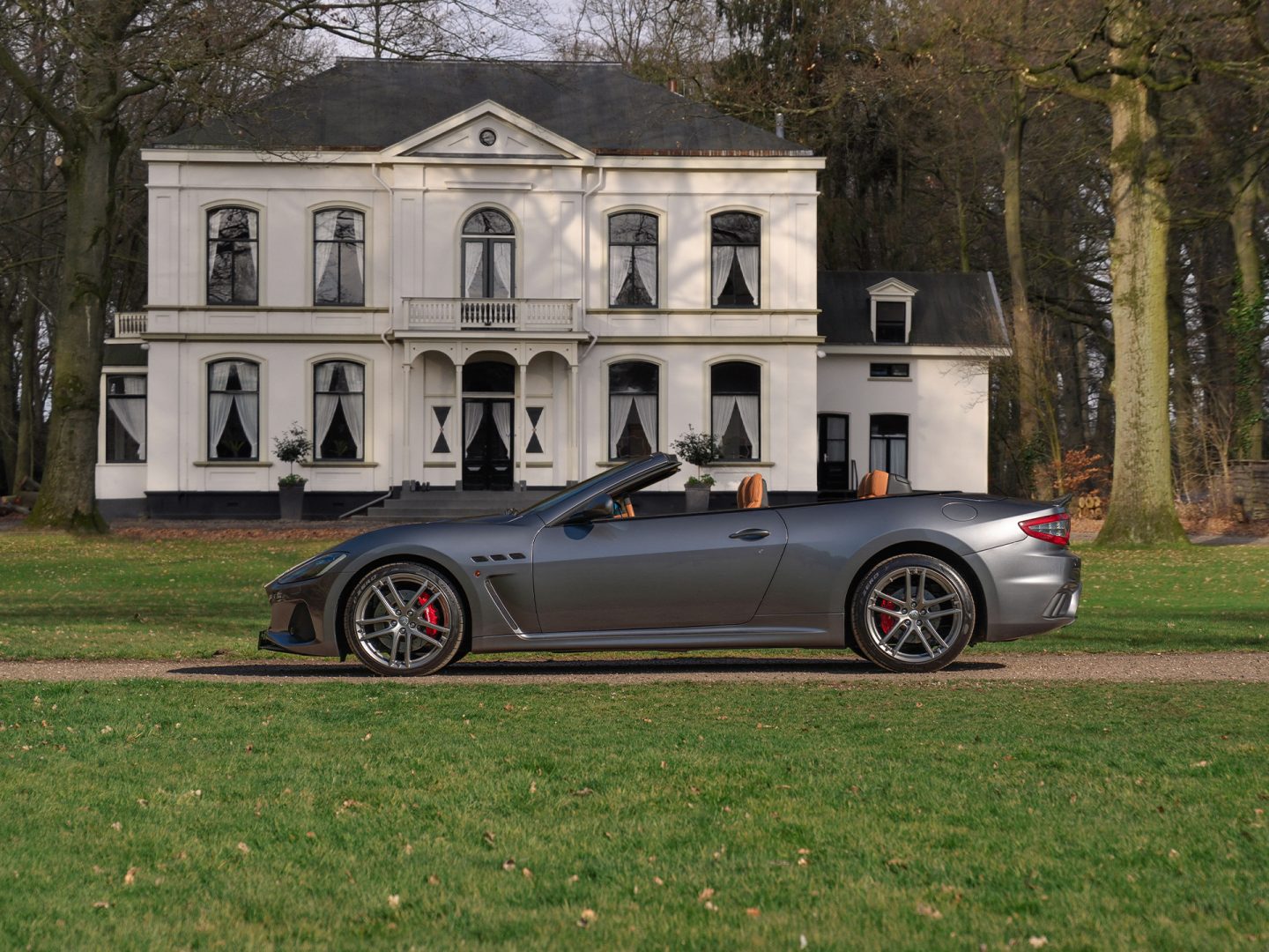 In 2011 gaf Maserati antwoord op een vraag die nooit gesteld werd: ze bouwden de raceversie van de GranTurismo om naar een uitvoering die legaal aan het openbare wegennet mocht deelnemen. Een constructie welke was afgekeken van Ferrari die de 360 Challenge Stradale had geïntroduceerd. Ook de naam zorgde voor inspiratie bij Maserati: de Italianen doopten de hardcore GT “MC Stradale”. Maar toen deden ze iets dat nog niet eerder was vertoond: 2 jaar na de onthulling van de MC Stradale trakteerde Maserati de puristen op de GranCabrio MC: een open versie van de straatlegale uitvoering gebaseerd op de race-geprepareerde GT. Volgt u ons nog? Als klap op de vuurpijl betreft het hier de faceliftversie, te herkennen aan de scherper vormgegeven frontgrille en hoekigere luchtinlaten ernaast in de voorbumper. Net als de andere MC’s beschikt de onze over een fraaie bodykit bestaande uit aangedikte sideskirts, extra (grote) luchtsleuven in de voorste schermen + motorkap, een geïntegreerde kofferklepspoiler, reusachtige diffusor achter en twee, meer naar het midden van de bumper gepositioneerde sportuitlaten met ernaast extra luchtgeleiders. Het Grigio Alfieri lakwerk dat dit specifieke exemplaar opsiert is een toonbeeld van tijdloze stijl, zonder het sportieve aspect uit het oog te verliezen. Dat laatste wordt nog eens geaccentueerd aan de hand van vurige Rosso remklauwen achter lichtgrijs gelakte dubbele 5-spaak MC-designvelgen. Laat u de zwarte soft-top zakken? Dan volgt er nóg een aangename verrassing…