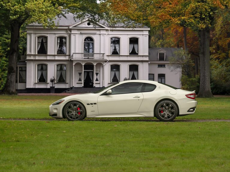 Zie deze “grande” verleiding maar eens te weerstaan: een in Bianco Eldorado gehesen Italiaanse bella met daaronder dé geliefde GT-wielen: Neptune in de maat 20 inch, in dit geval voorzien van een donkergrijze Grigio Mercury finish. Wauw. De zwarte raamlijsten, dito omranding van de cooling slots in de voorste schermen en donkere koplampbehuizing doen ook een aardige duit in het zakje als het om contrast gaat. De aangedikte sideskirts horen bij de “S” en de Rosso remklauwen representeren het performance gedreven DNA van deze galante sportcoupé. Maar bovenal heeft de Maserati GranTurismo zijn geweldige vormen mee: de stroomlijn is onmiskenbaar en tegelijkertijd zo tijdloos als een eeuwenoud pasta recept. Legendarisch designer Pininfarina nam de ruimte voor het perfecte ontwerp, letterlijk, waardoor de afmetingen riant werden. En zo was een grande GT geboren. Zijn naam: GranTurismo.