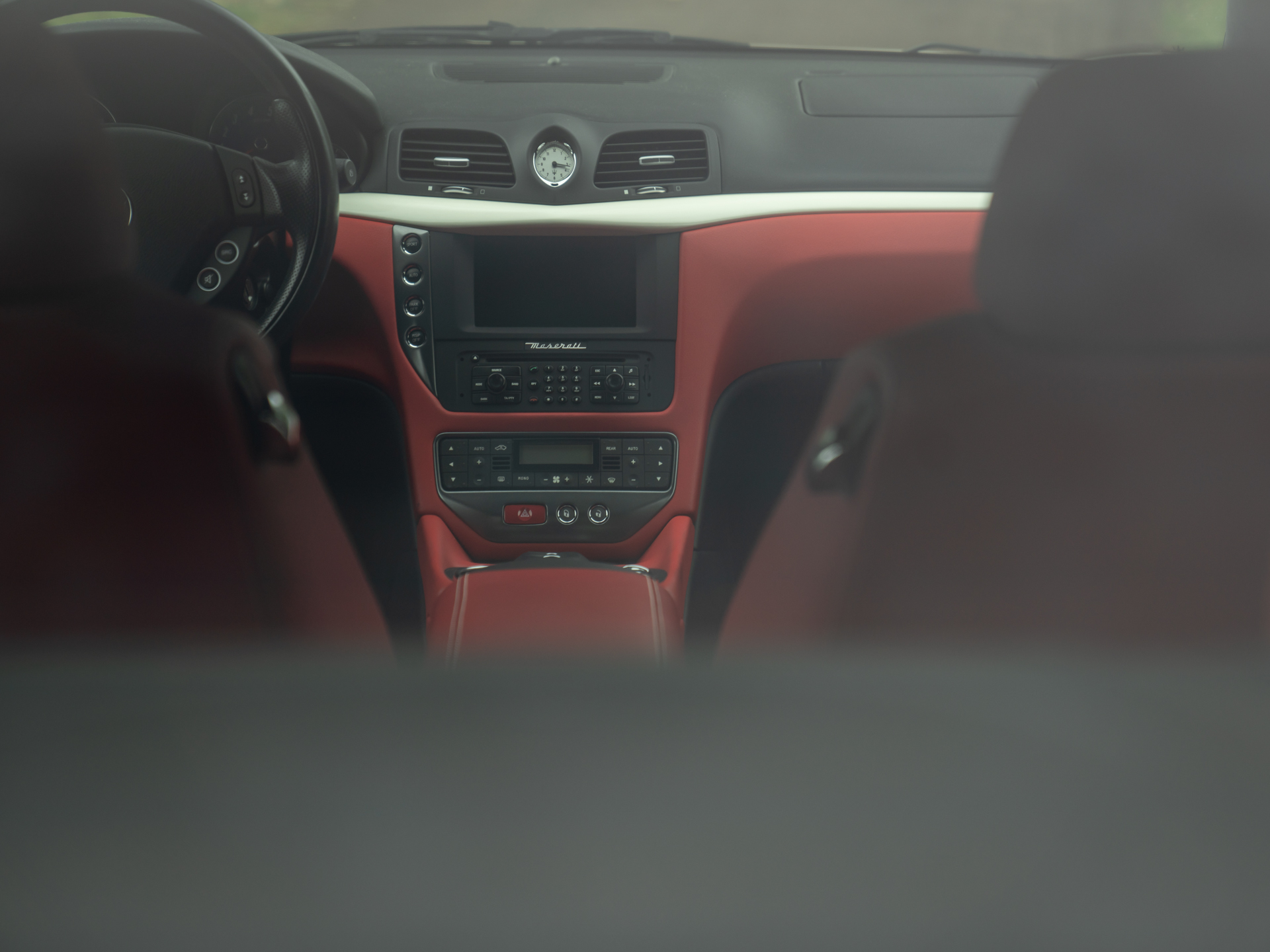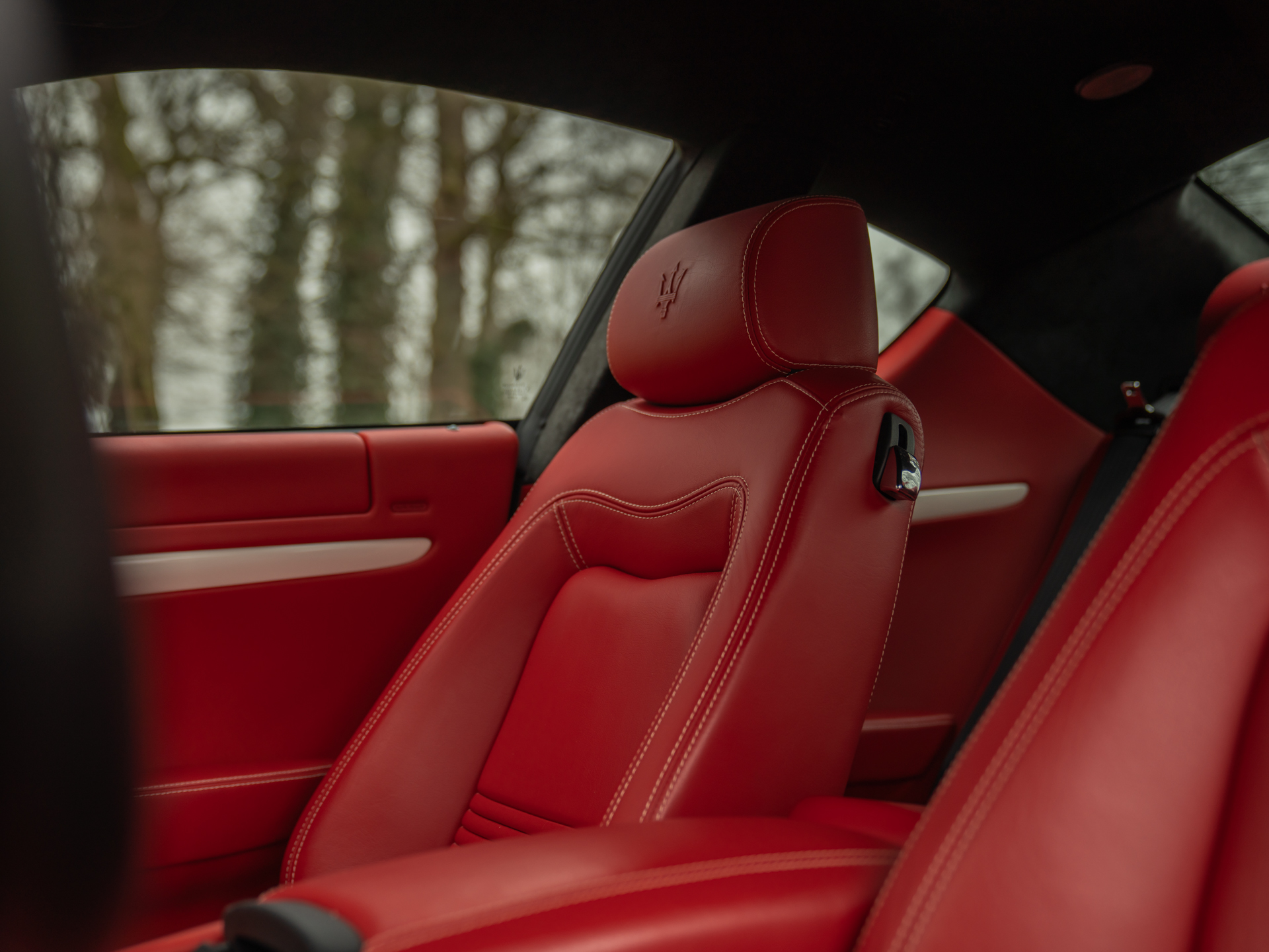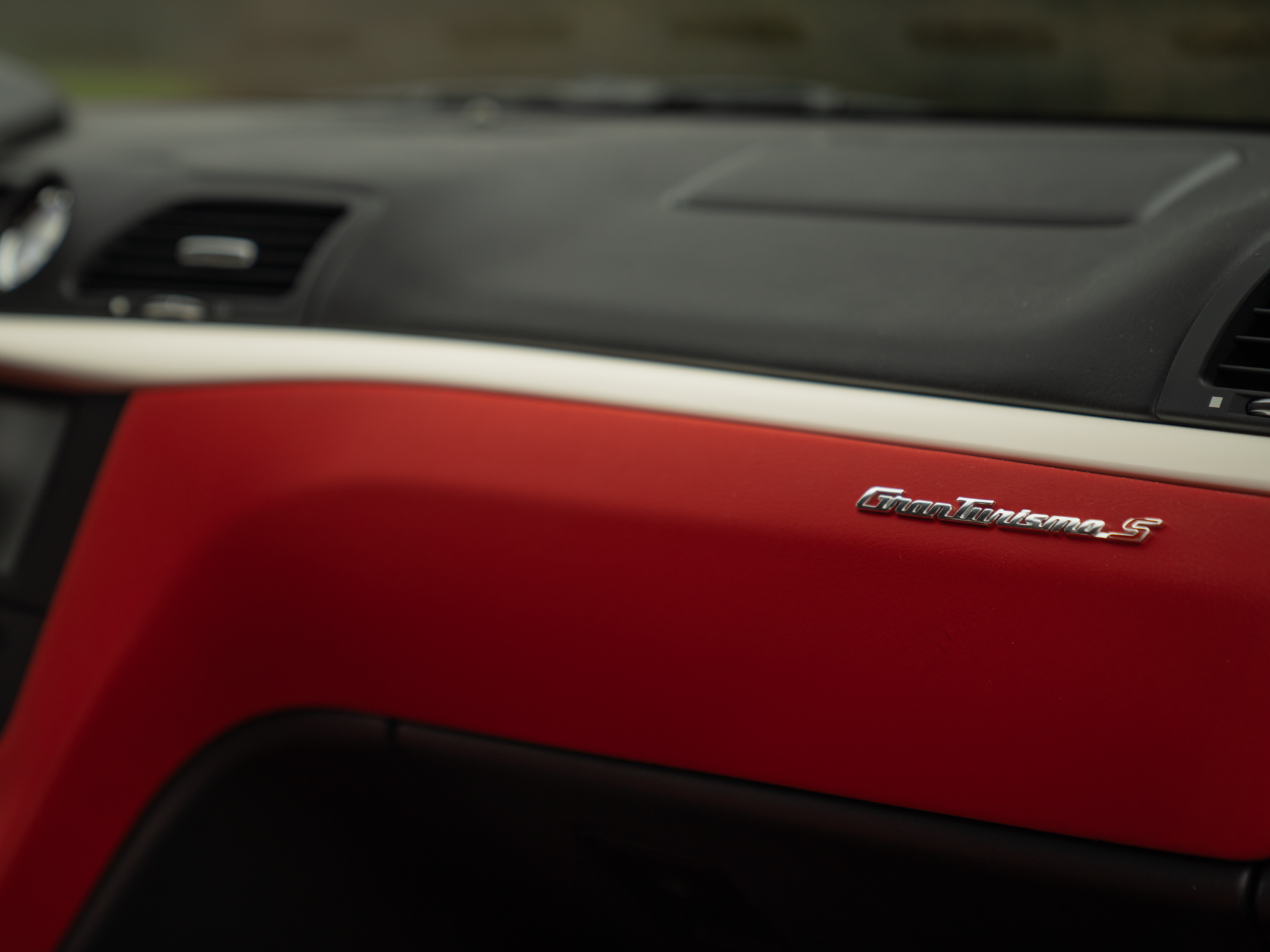 Ja, sommige delen zijn ‘standaard’ zwart, waaronder het lederen stuurwiel, bovenzijde van het dashboard en de Alcantara hemelbekleding. Maar rood overheerst. Rosso Corallo om precies te zijn. Onder andere de lederen stoelen, midden-/tunnelconsole, onderzijde dashboard en portierbekleding beschikken over een knalrode touch. Too much? Nooit! Het is een verademing om een beauty als de Maserati GranTurismo S te zien in een samenstelling die ze verdient. De Avorio contraststiksels, Smoke Quartz afwerking van diverse bedieningselementen plus de Bianco Ice interieurlijsten maken de ultieme smaakmaker uit Italië meer dan af. De legendarische drietand staat gedrukt op de hoofdsteunen en ook het bekende uurwerk mag niet ontbreken op het dashboard, maar de kenner wist natuurlijk allang in kunst op wielen te zijn gestapt.