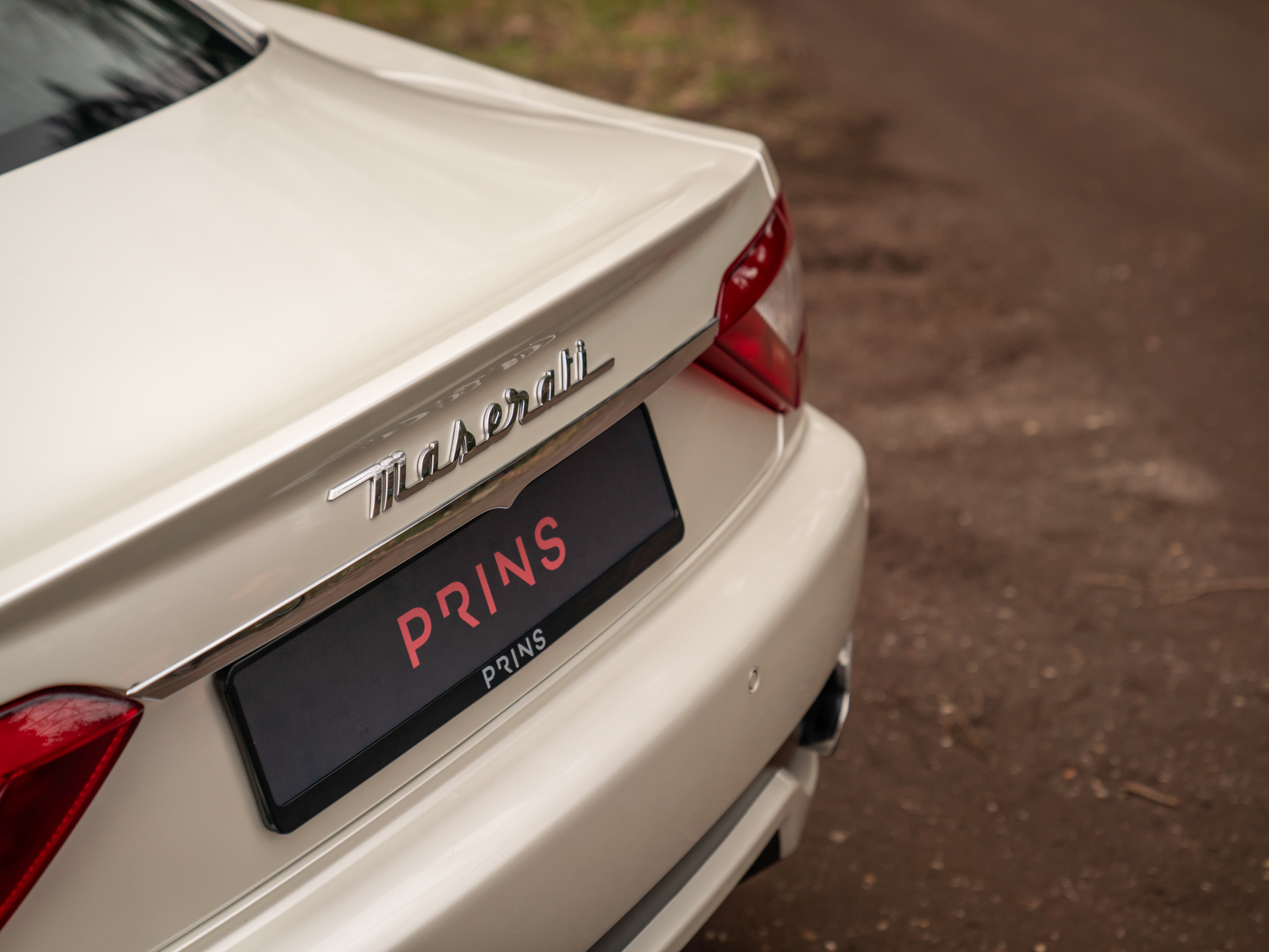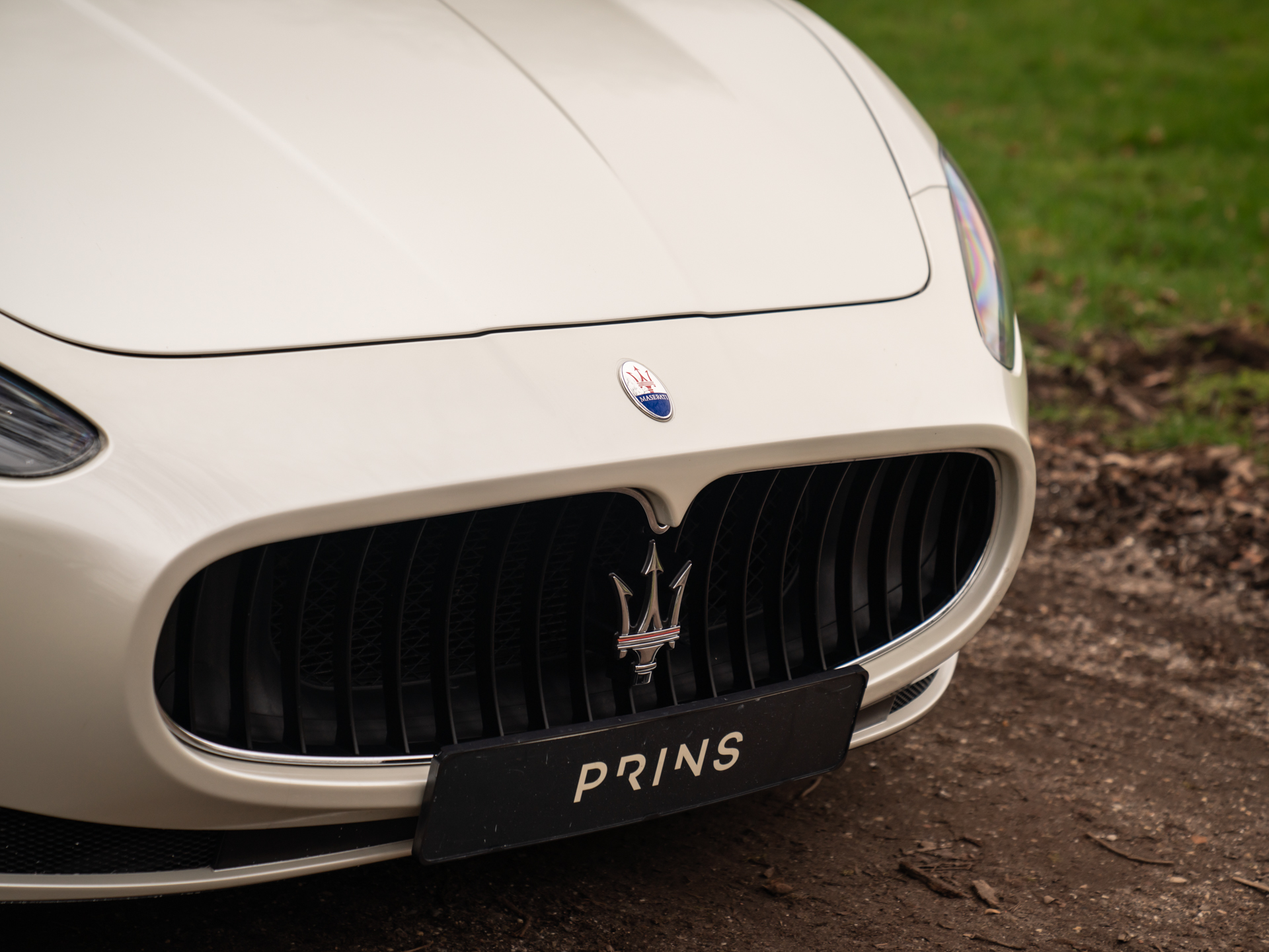 Bij Prins weten we unieke configuraties wel te waarderen. En dat is nog voorzichtig uitgedrukt. We begrijpen dat er legio zwarte auto’s rondrijden en dat er 100.000 verschillende tinten grijs zijn. Echter, zien we dit witte pareltje uit Italië, dan weten we meteen weer waarom wij liefhebbersauto’s verkopen. Deze prachtige Maserati GranTurismo S is klaar(gemaakt) voor de mooiste dag van haar leven en heeft een minstens zo fraai innerlijk. Behalve een heerlijke kleurencombinatie, is de extreem attractieve GT voorzien van de juiste wielen, de fijnste interieurafwerking en de opties die u wilt: Bose Surround, comfortstoelen en een Skyhook onderstel. Kortom, stijlicoon zoekt stijlicoon.