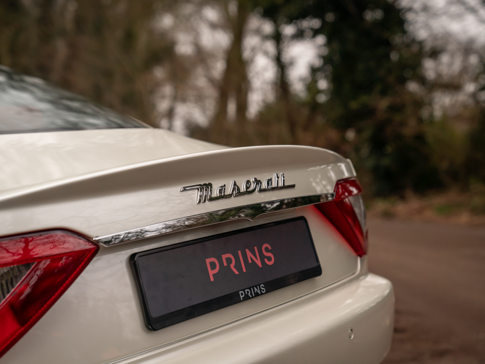 Vrij vertaald betekent “Extra Campionario” extra monsters. We weten niet precies hoe de Italianen het voor elkaar hebben gekregen, maar zeker is wel dat de extra toevoegingen voor een unieke mix hebben gezorgd. Een mix genaamd Bianco Fuji. Het witte lakwerk heeft een schitterend pareleffect, wat de schoonheid van deze drietand een extra dimensie geeft. De charismatische vormen, verleidelijke rondingen, uitgebalanceerde proporties en even chique als sportieve details worden hierdoor extra kracht bij gezet. Voor een extra dimensie zorgen tevens de gewilde 20 inch Neptune wielen, afgewerkt in Grigio Mercury. De Rosso remklauwen lijken vooral de nadruk te willen leggen op de performance van de Maserati GranTurismo. Echter, eenmaal het portier geopend wacht een extra verrassing…