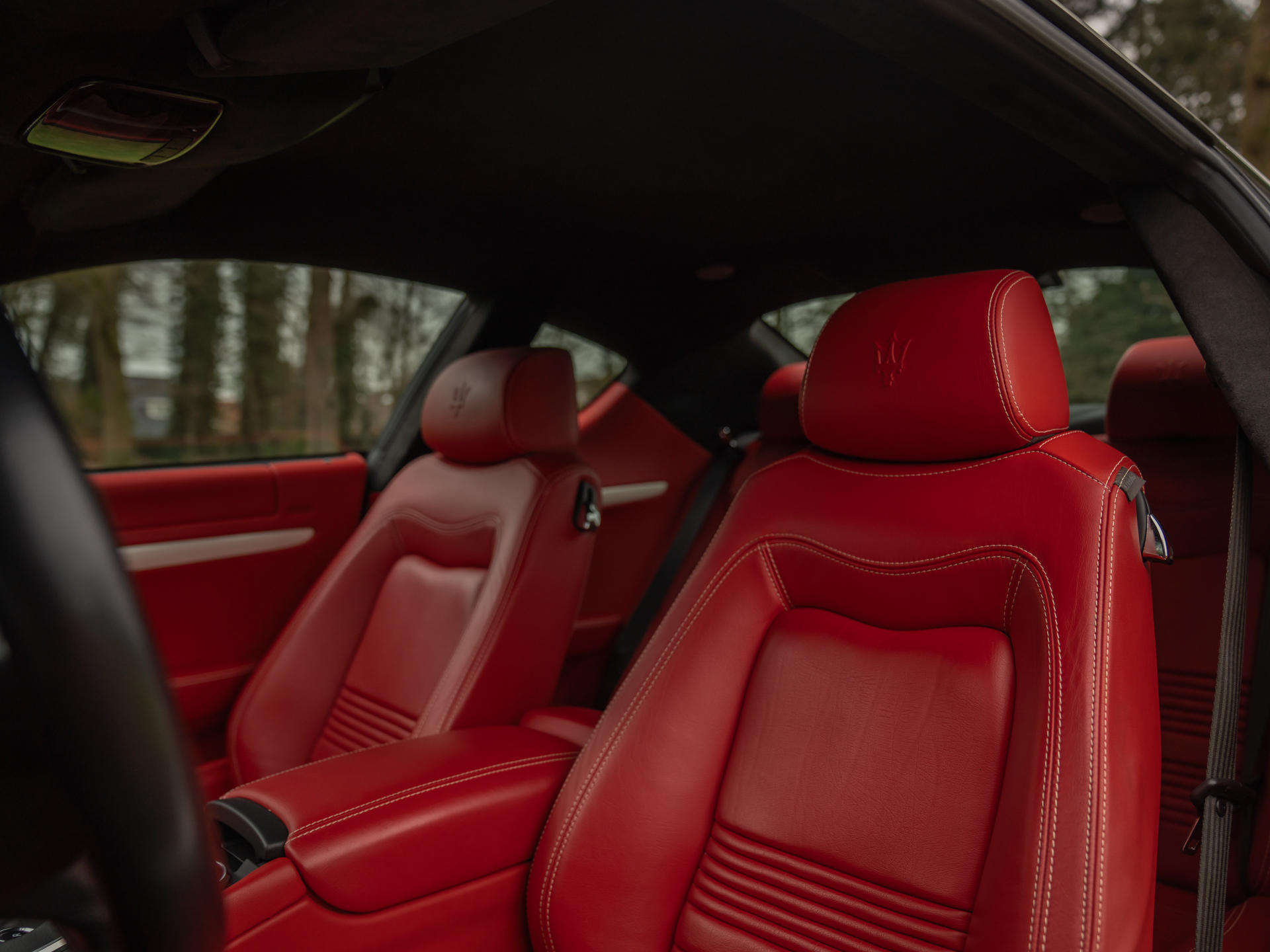 Onze GranTurismo kreeg af-fabriek een Skyhook Suspension mee: variabele demping maakt dan deel uit van de geavanceerde ophangingstructuur. Hierdoor is de Maserati GT 4.7 S nóg stabieler, het onderstel nóg meer uitgebalanceerd, kan er nóg preciezer worden ingestuurd en is er nóg meer grip. Kortom, de ideale manier om 440 paarden los te laten op de achterwielen. De 8-cilinder in het front is van het atmosferische soort; dit betekent dat menig omstander aan de beademing moet in plaats van de V8 zelf. Hoe dat zo? Het geluid is om te janken zo mooi… Vooral wanneer de 0-100 km/h sprint binnen 5 seconden wordt afgewikkeld. Extra genieten geblazen is het wanneer de Maserati GranTurismo via 6 gerobotiseerde versnellingen een topsnelheid van 295 km/h nadert. Maar voordat die top bereikt is, bent u natuurlijk allang verkocht. Tsja, wie niet? De GranTurismo is vorig jaar voorzien van een nieuwe koppeling en verkeert in schitterende staat.