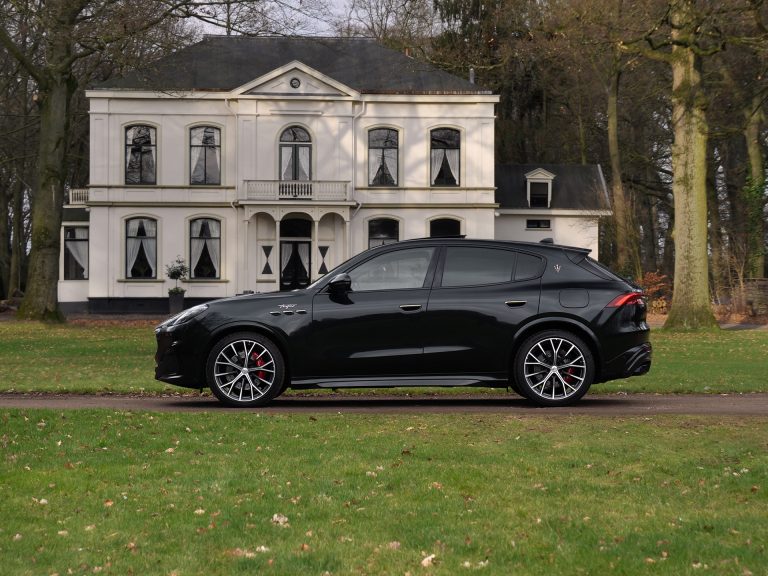 De Grecale van Maserati luidt een nieuw tijdperk in: voor het eerst in de rijke geschiedenis van het iconische Italiaanse sportwagenmerk wordt een model naar keuze aangedreven door een brandstofmotor óf elektropower. De Grecale Hybrid heeft zelfs een beetje van beide. Echter, voor ouderwets veel Maserati plezier is er eigenlijk slechts één juiste versie. En dat is deze: de 3.0 V6 Trofeo! Maar liefst 530 pk heeft de stijlvolle SUV te verdelen over de voor- en achteras. De 6-cilinder draait puur op benzine, maar krijgt wel hulp van turbotechniek om tot verpletterende prestaties te komen. Hoe verpletterend precies? Accelereren van 0 naar 100 km/h gaat binnen 3,8 seconden! Ook aan visueel geweld geen gebrek: ons exemplaar is gitzwart van kleur en staat op 22 inch (!) grote wielen. Verder is het Grecale topmodel uitgerust met carbon, diverse rode accenten, stoelventilatie, stoelverwarming voor- en achterin, een panoramadak, 360 graden camera, Sonus Faber Premium Sound System en heel veel meer moois…