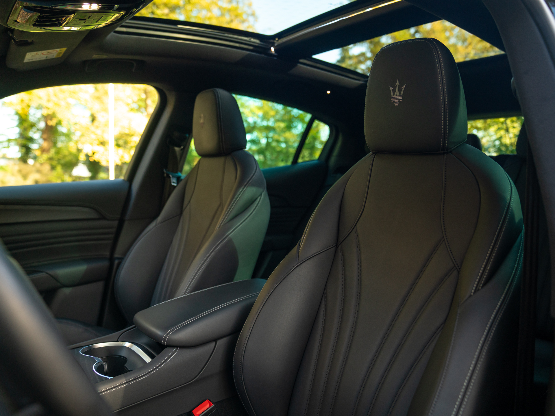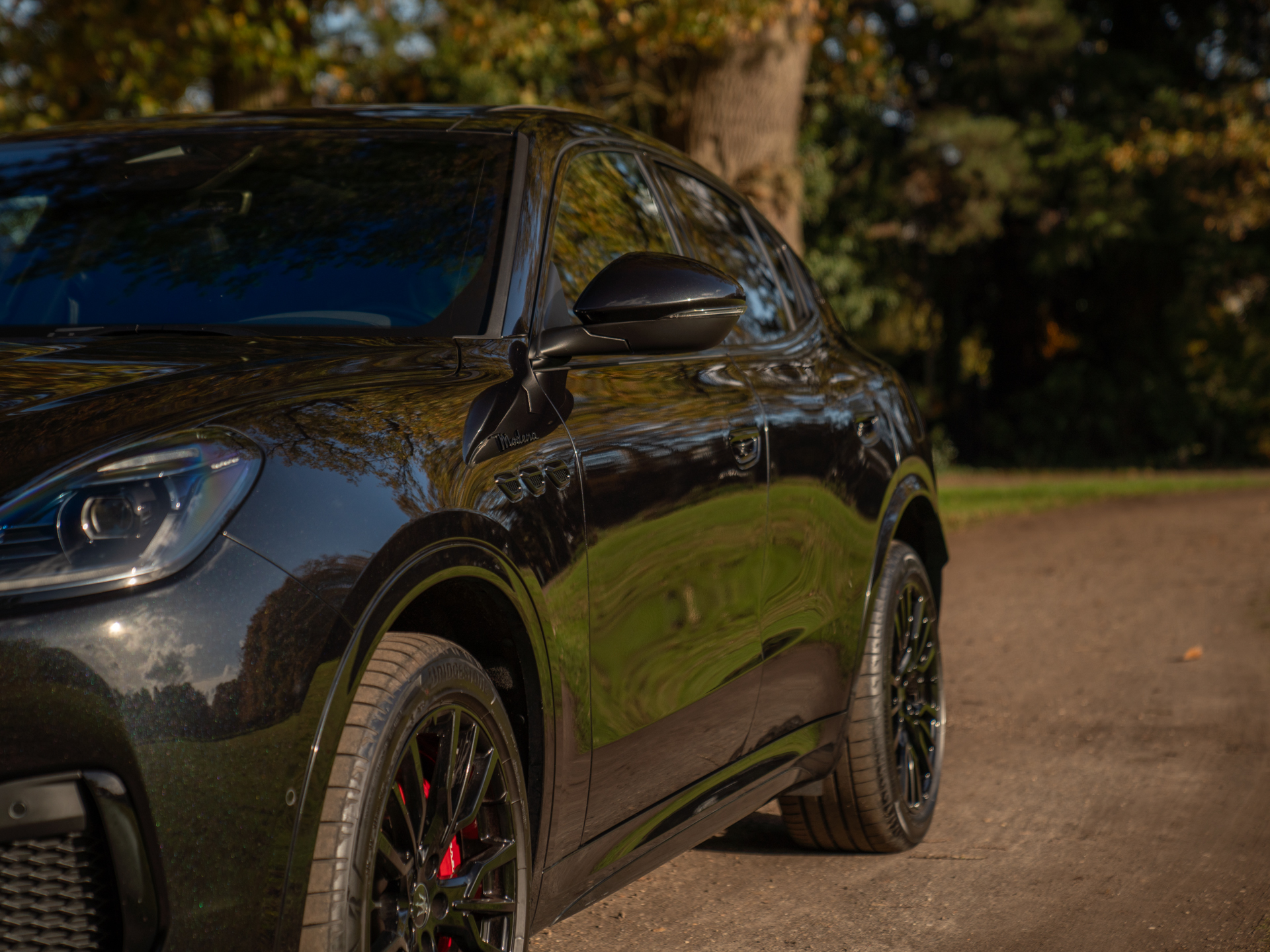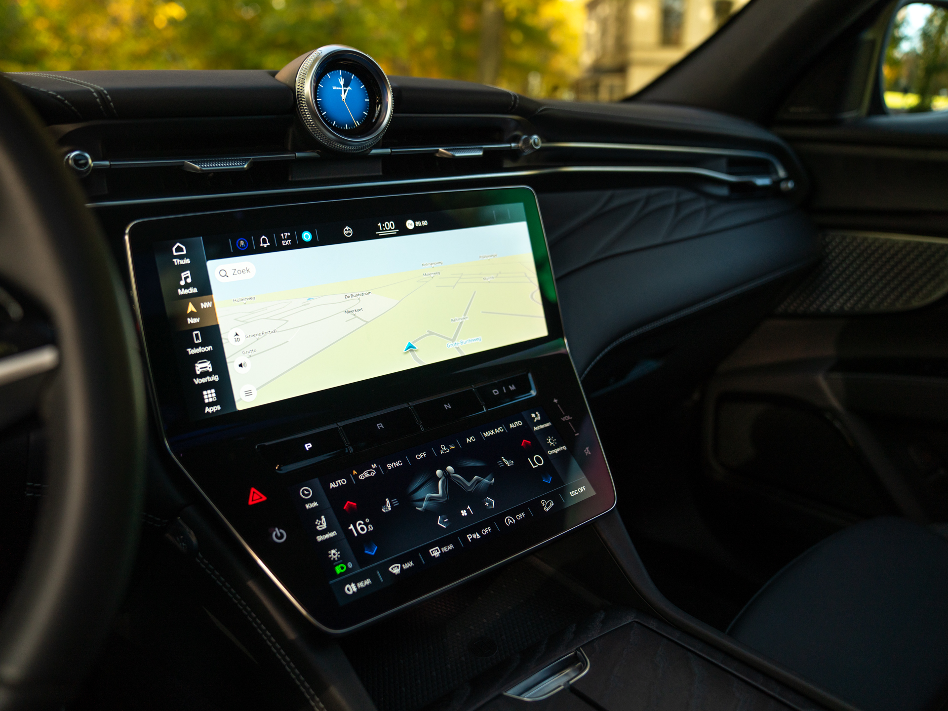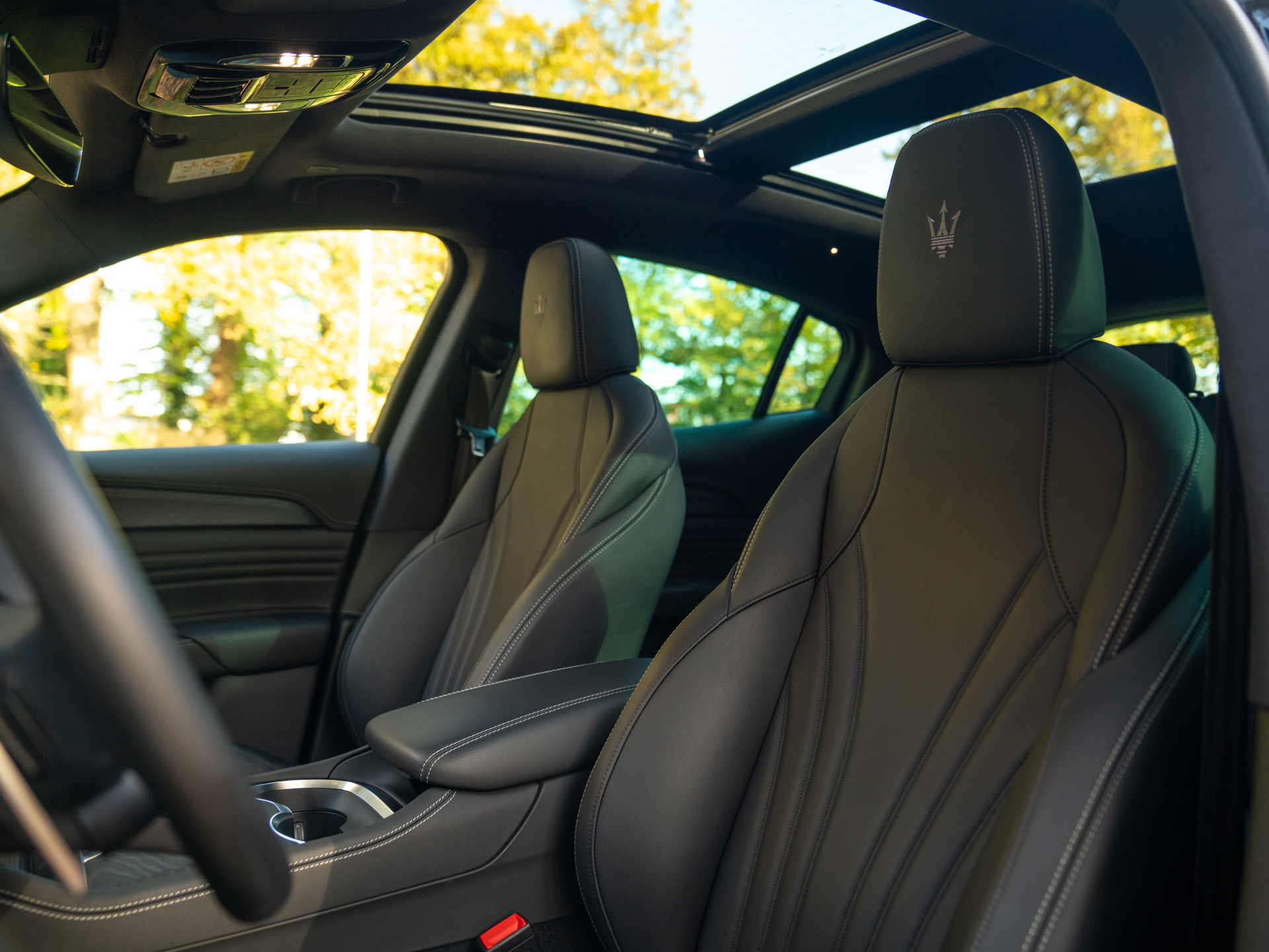 Nieuw binnen: schitterende Grecale Modena 330pk in het Nero Tempesta met oa. panoramadak, Sonus Faber audio, achteruitrijcamera, stoelverwarming etc!