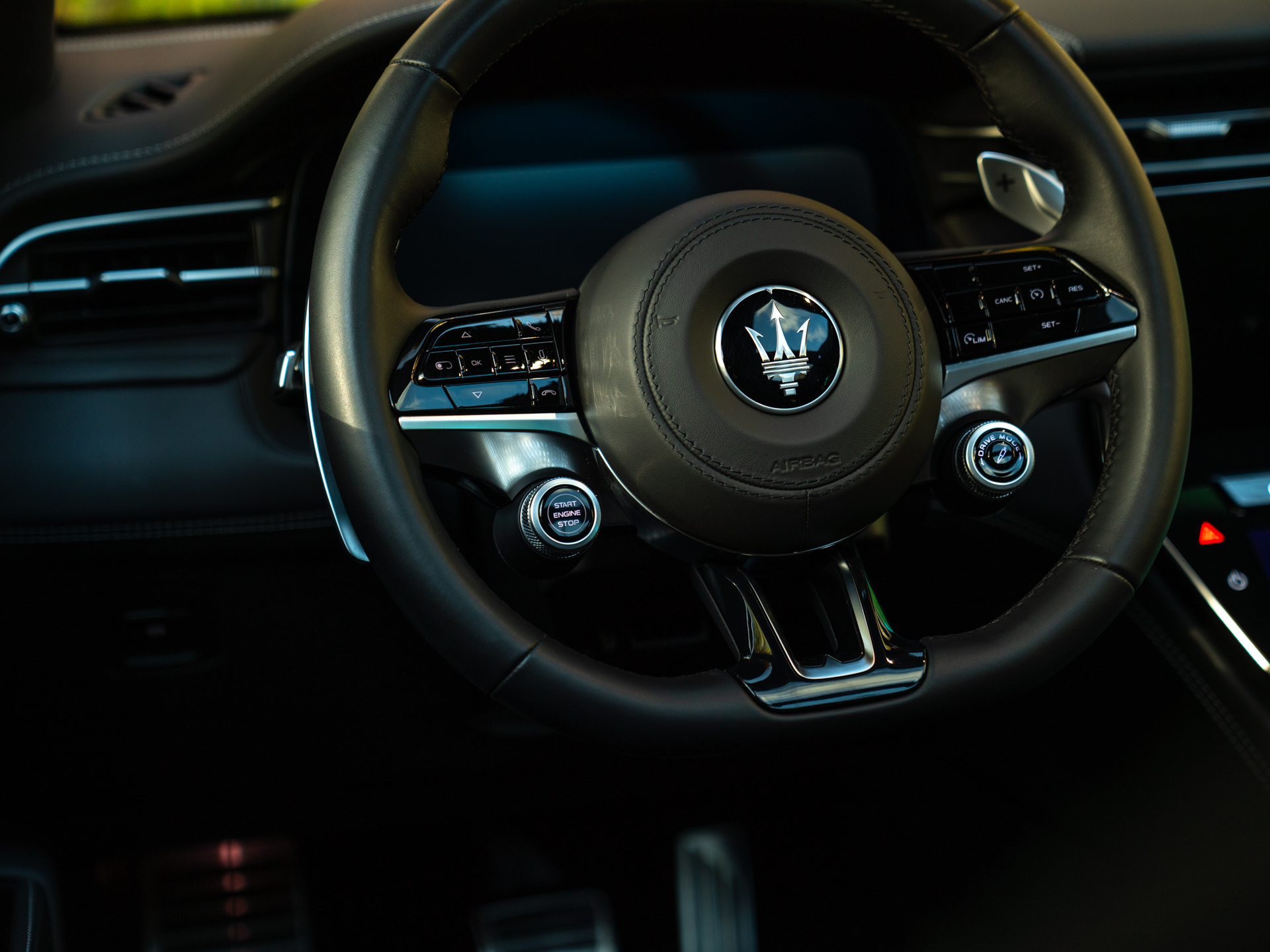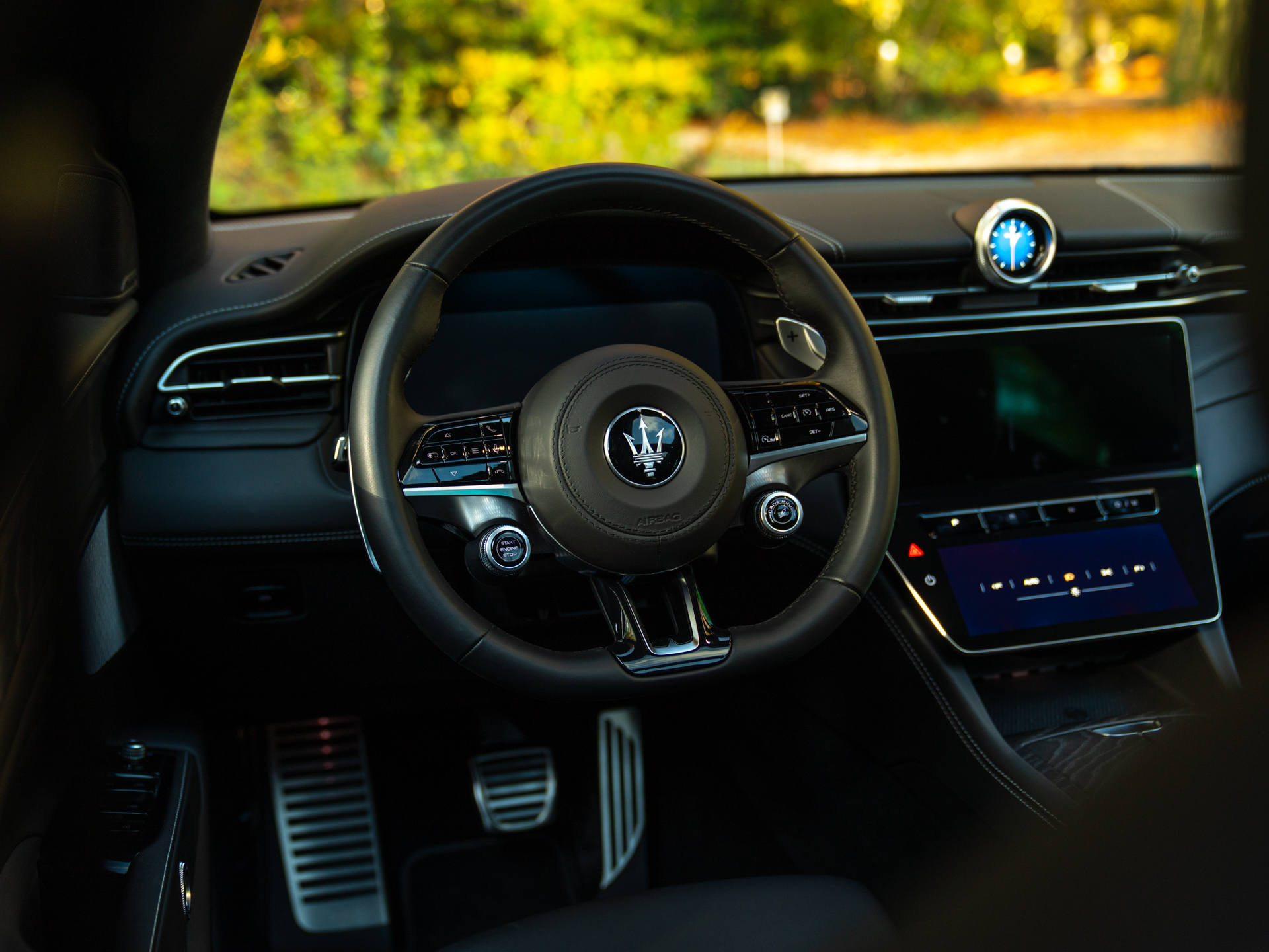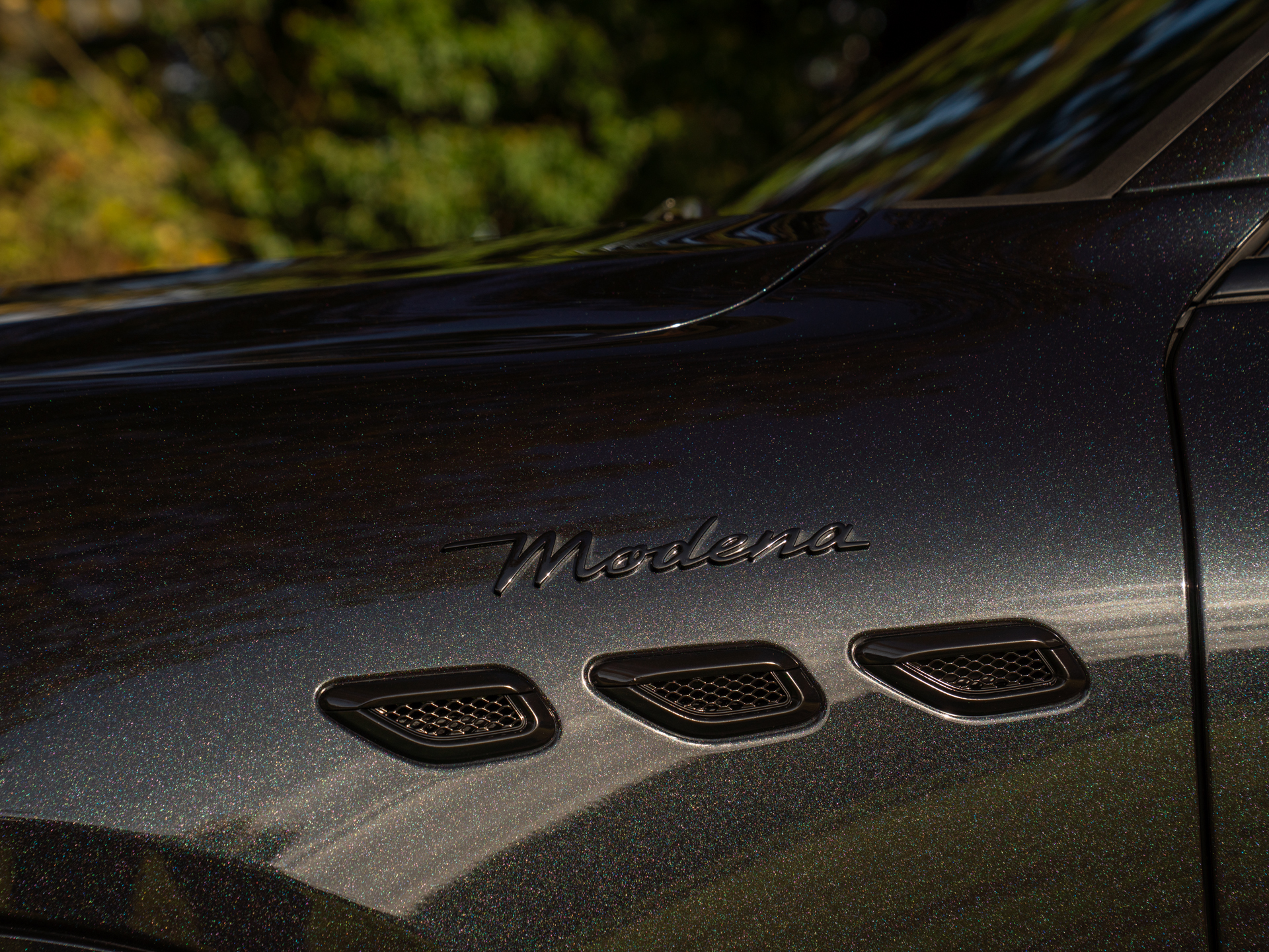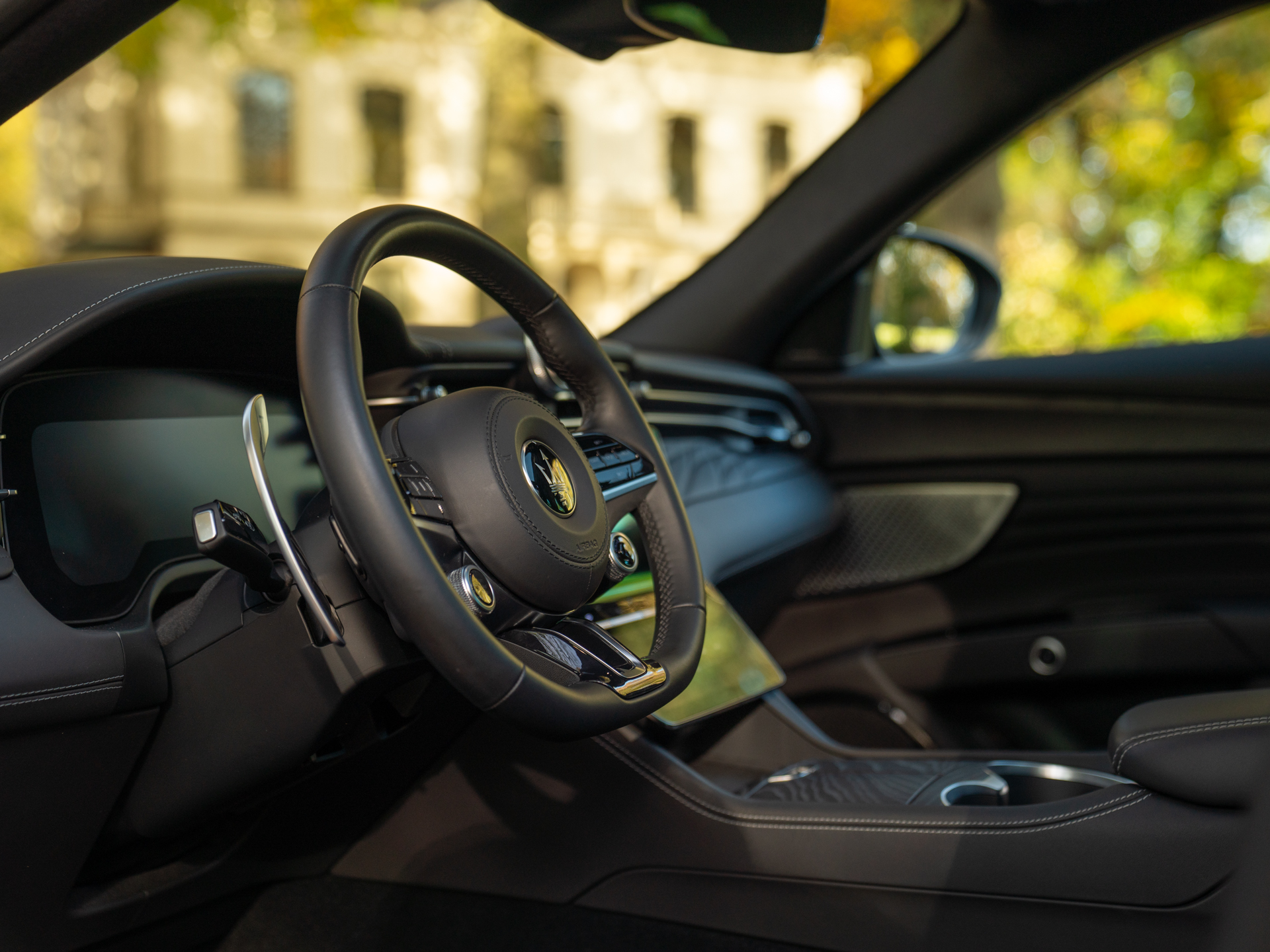 Nieuw binnen: schitterende Grecale Modena 330pk in het Nero Tempesta met oa. panoramadak, Sonus Faber audio, achteruitrijcamera, stoelverwarming etc!