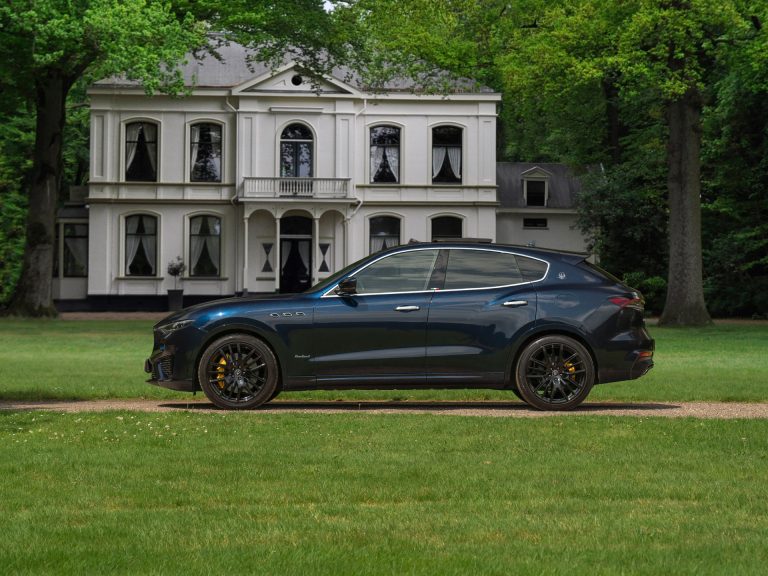 Op papier is een hoge auto niet meteen de meest sexy auto. Met de Levante zijn de kunstenaars van Maserati er echter in geslaagd om een SUV neer te zetten die in vele opzichten attractiever is dan menig traditionele sportwagen. De styling is natuurlijk hartstikke Italiaans, maar wat extra knap is dat de carrosserieverhoudingen beeldschoon zijn. We hebben wel eens anders gezien in dit segment… Kers op de Trident taart is de keuze voor een Blu Nobile lakwerk: de donkerblauwe tint bevat schitterende flakes die de Levante GranSport in de zon van extra flair voorzien. Wachten tot het lakwerk helemaal tot leven komt hoeft niet, want dit is een volwaardige gezinsauto die u moeiteloos en in alle comfort naar zonnige bestemmingen brengt. Ook het bewonderen waard zijn de 21 inch grote Staggered Anteo velgen inclusief Nero finish. Juist die donkere lay-out zorgt ervoor dat de Giallo (!) remklauwen erachter eruit ‘knallen’. Wie Maserati rijdt speelt op chic. Vandaar dat we de ‘klassieke’ chromen afwerking van de grillerand, raamlijsten, logo’s en uitlaten wel kunnen waarderen. Over die laatste gesproken: de Levante telt maar liefst 4 eindstukken en laat daarmee een glimp van zijn ware sportwagenkwaliteiten zien.