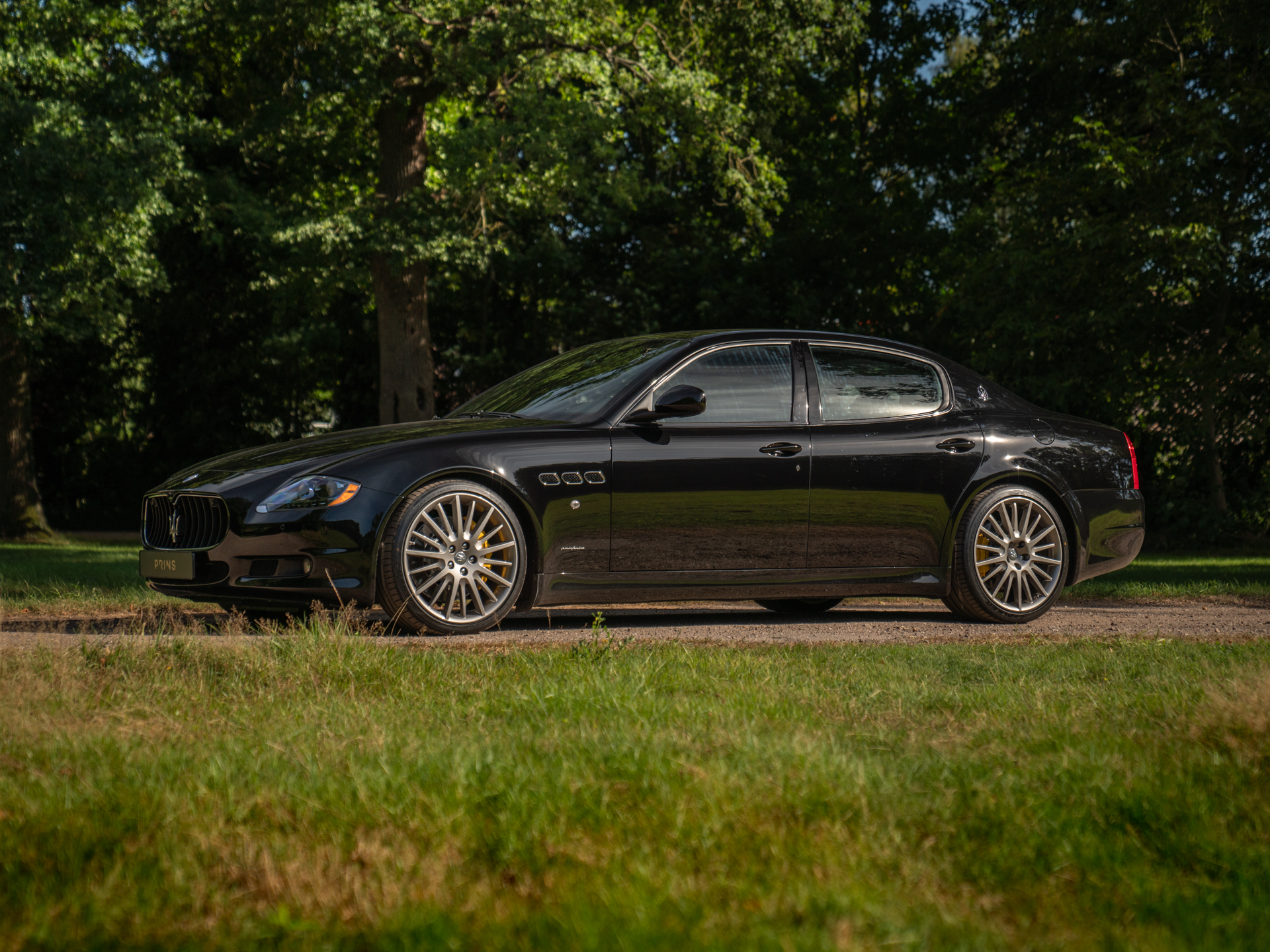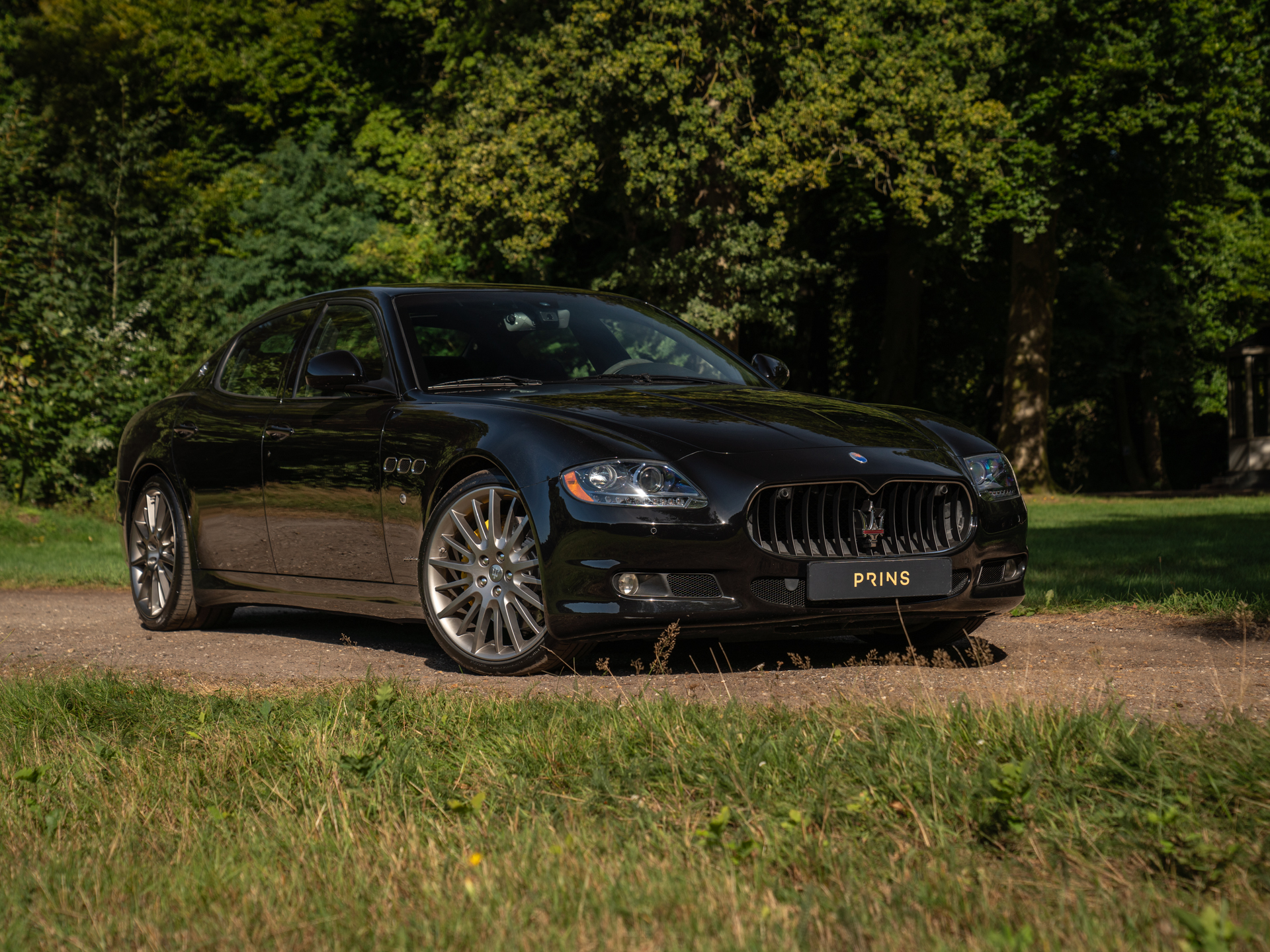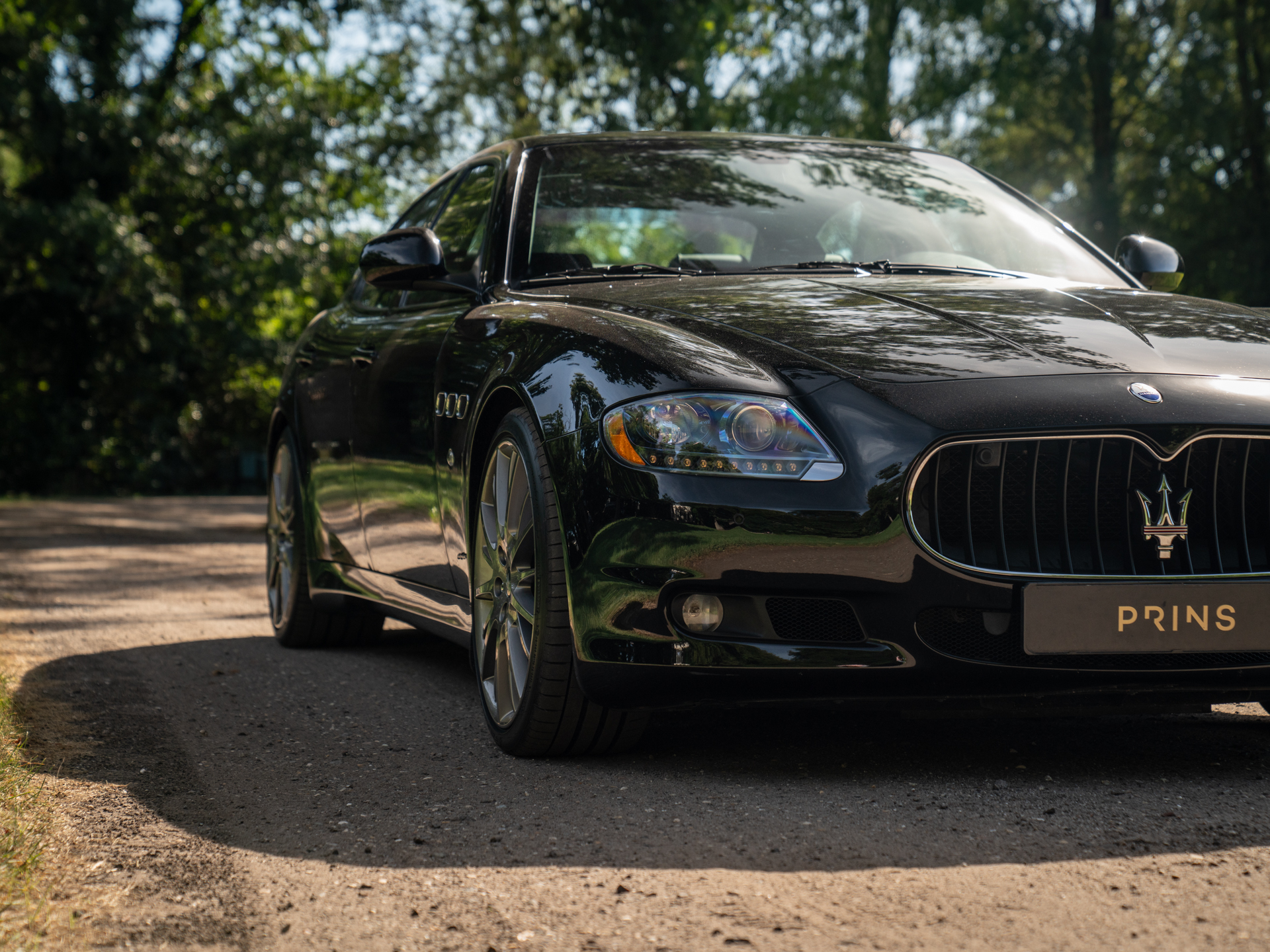 Dit is zonder meer de heilige graal in de wereld van auto’s: de Maserati Quattroporte 4.7 Sport GT S! De uitvoering der uitvoeringen van ’s werelds enige topklasse limousine die het pure sportwagen-DNA op een hoogst stijlvolle manier heeft weten te verpakken. Zoals alleen Italianen dat kunnen! Wat dit specifieke exemplaar nog eens extra zeldzaam, legendarisch en begerenswaardig maakt? Een heleboel… Zo is de staat subliem, het onderhoud door de Maserati dealer uitgevoerd en de samenstelling werkelijk beeldschoon! Highlights zijn onder andere de alcantara interieurfinish, carbon interieurdetails en de super subtiele – maar oh zo effectieve verlaging van het onderstel… Origineel van Maserati! Af-fabriek werd ook het Bose Surround Sound systeem ingebouwd. Maar dit zal met een dubbelgevoel zijn gebeurd, want niets gaat boven de sound van atmosferische Ferrari V8. Laat staan als die voorin de neus van Maserati’s grootste sportsedan ligt!