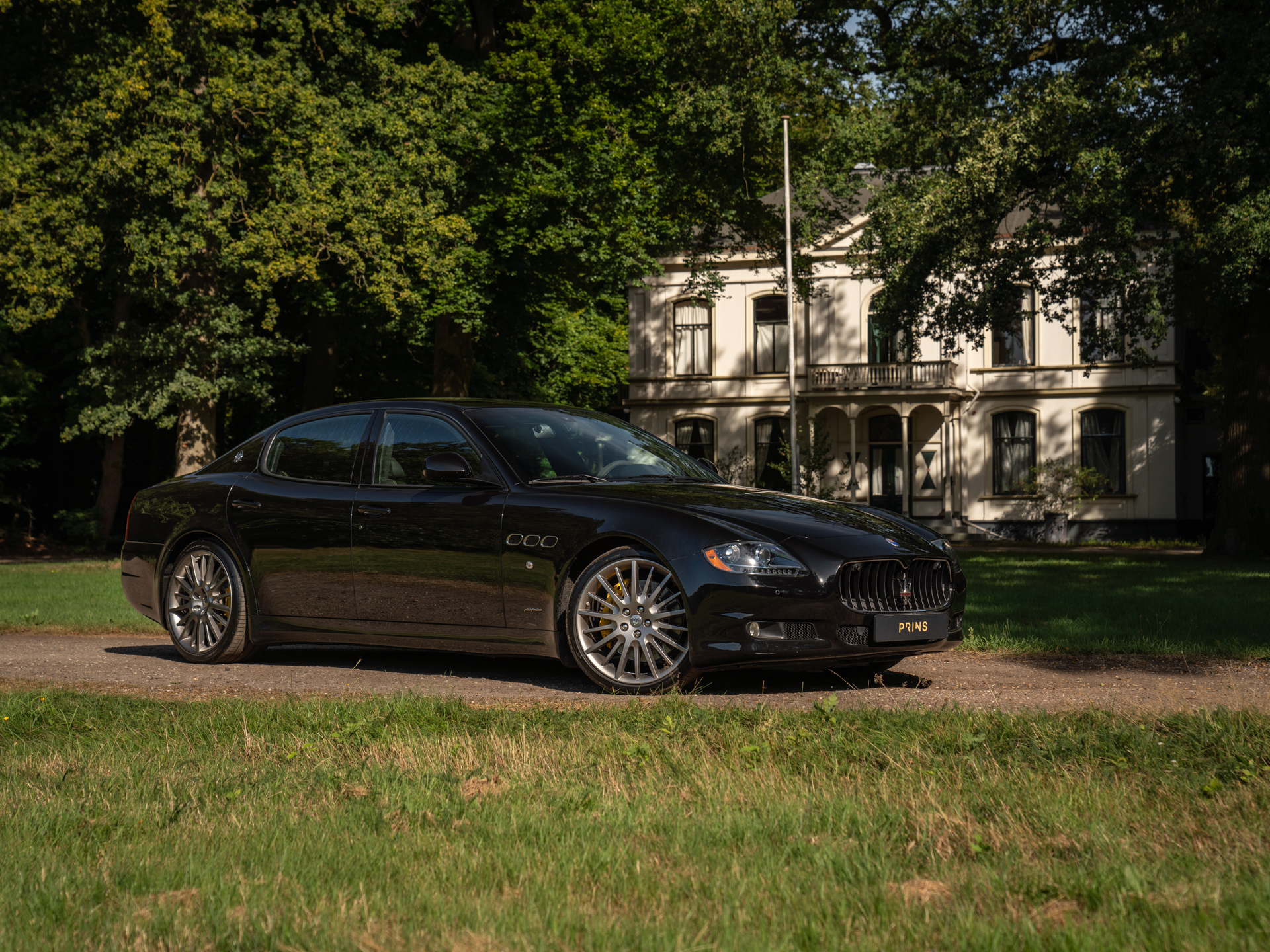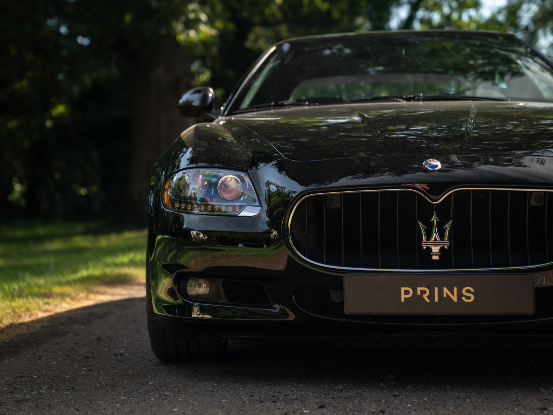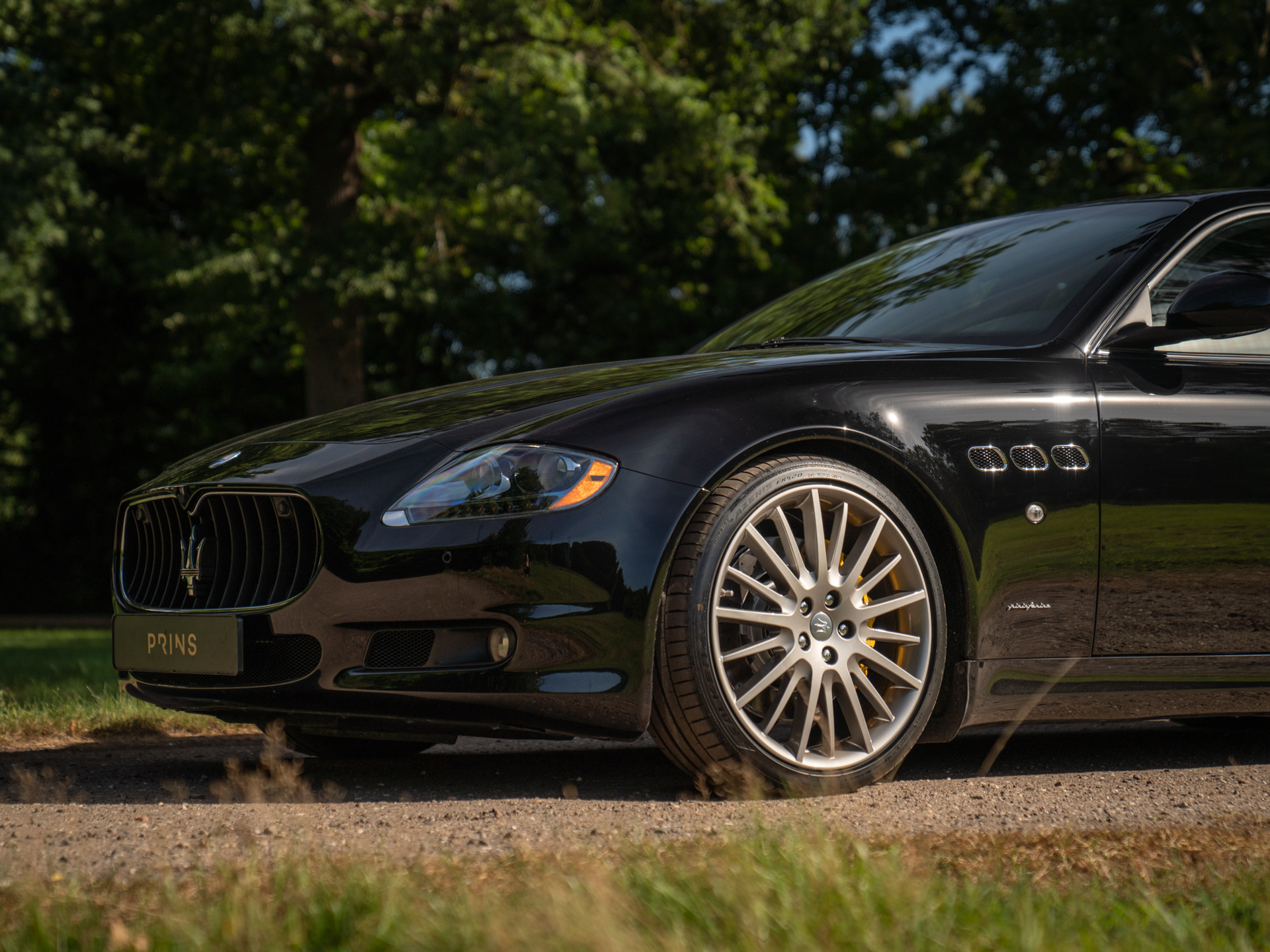 Dit is zonder meer de heilige graal in de wereld van auto’s: de Maserati Quattroporte 4.7 Sport GT S! De uitvoering der uitvoeringen van ’s werelds enige topklasse limousine die het pure sportwagen-DNA op een hoogst stijlvolle manier heeft weten te verpakken. Zoals alleen Italianen dat kunnen! Wat dit specifieke exemplaar nog eens extra zeldzaam, legendarisch en begerenswaardig maakt? Een heleboel… Zo is de staat subliem, het onderhoud door de Maserati dealer uitgevoerd en de samenstelling werkelijk beeldschoon! Highlights zijn onder andere de alcantara interieurfinish, carbon interieurdetails en de super subtiele – maar oh zo effectieve verlaging van het onderstel… Origineel van Maserati! Af-fabriek werd ook het Bose Surround Sound systeem ingebouwd. Maar dit zal met een dubbelgevoel zijn gebeurd, want niets gaat boven de sound van atmosferische Ferrari V8. Laat staan als die voorin de neus van Maserati’s grootste sportsedan ligt!