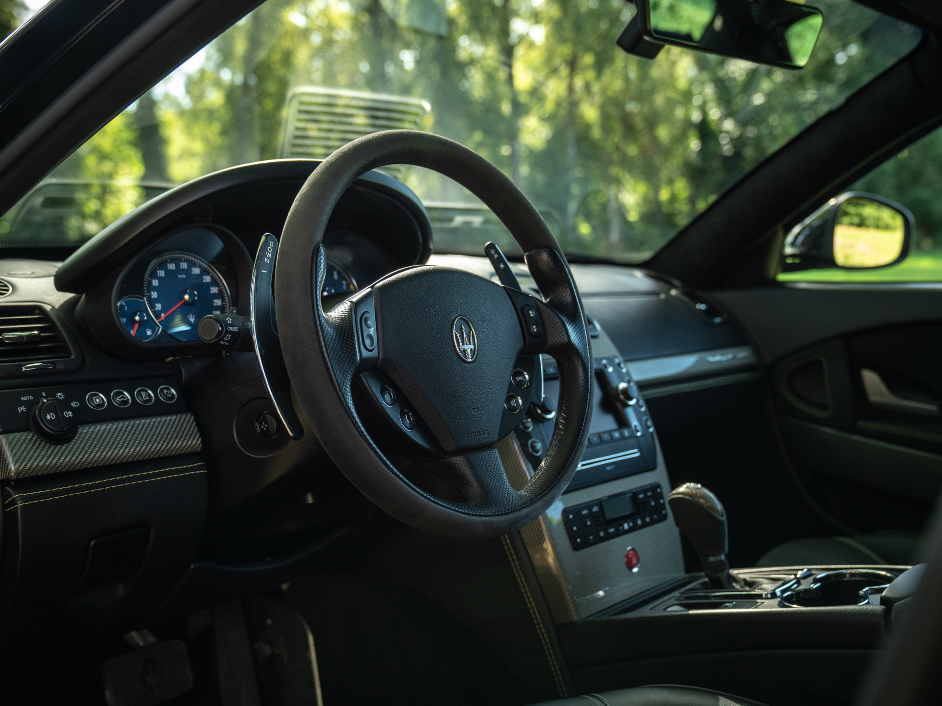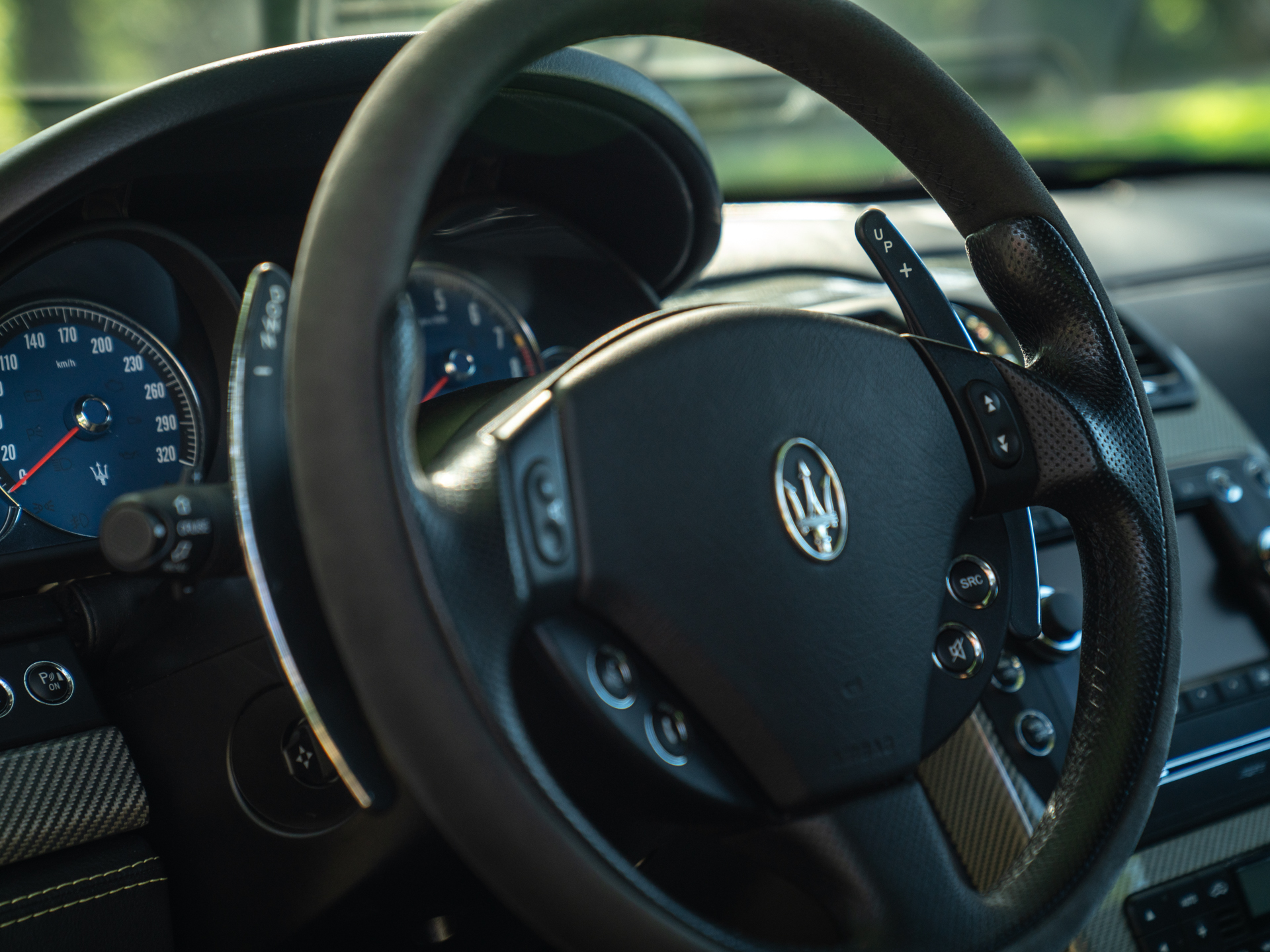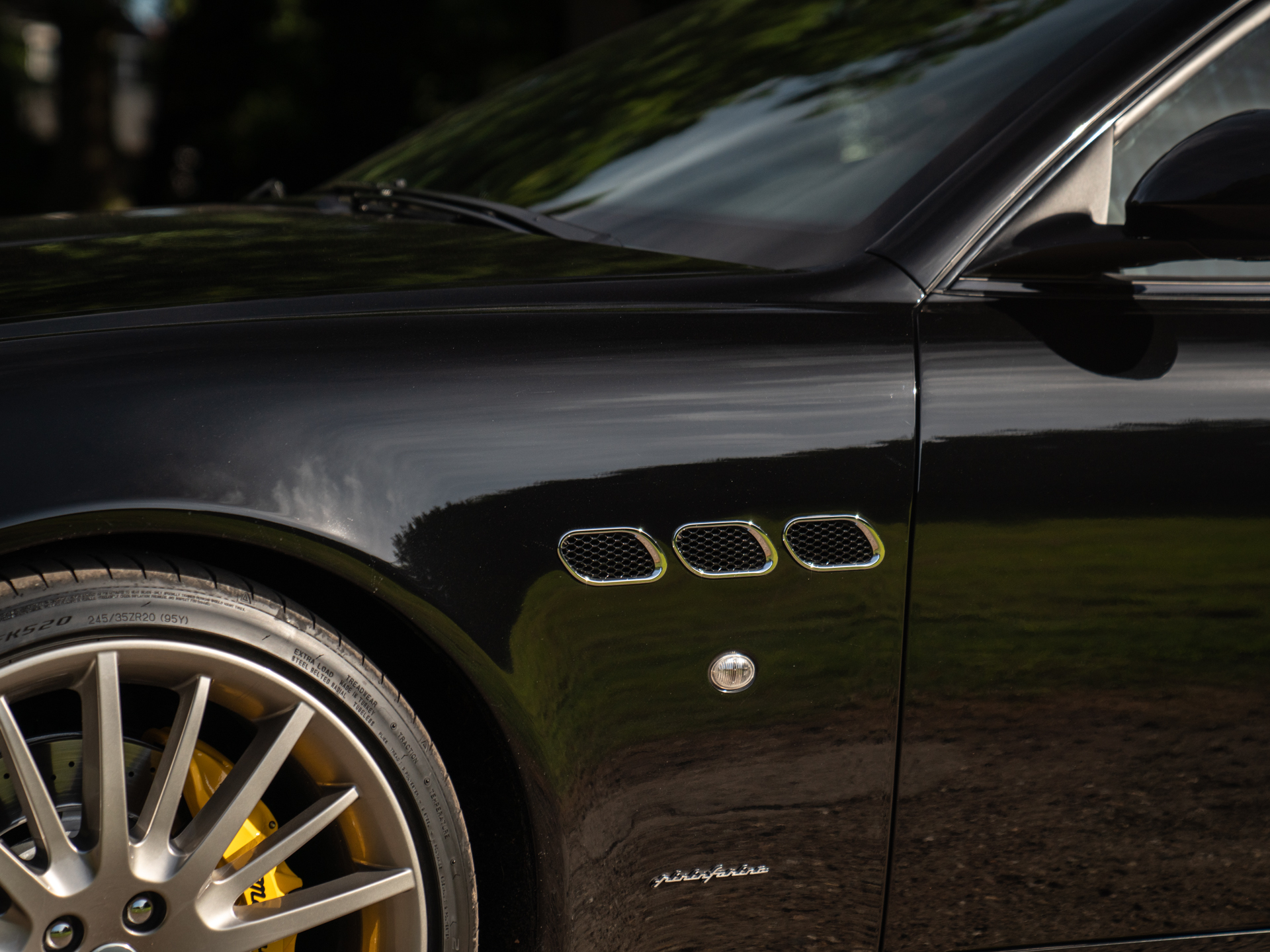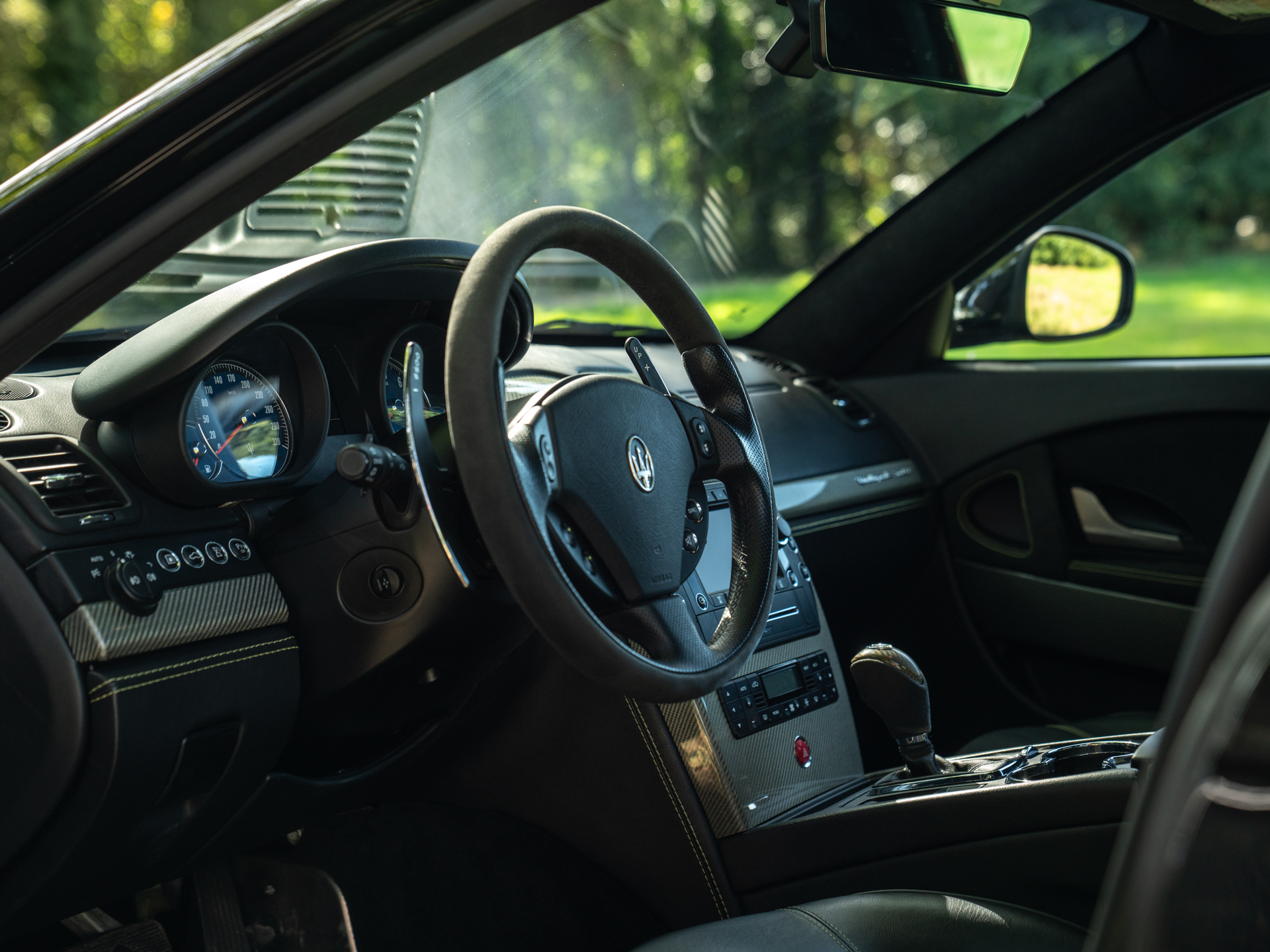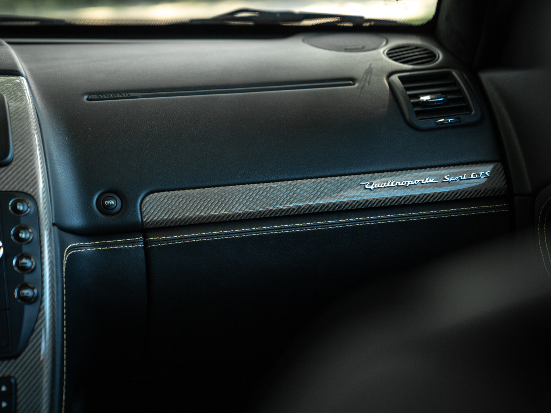 Binnenin waant u zich in de royaalste racecabine die er bestaat. Delen van het dashboard, de automaatpook en middenconsole zijn namelijk afgewerkt met hightech koolstofvezel, terwijl het stuurwiel, de middenarmsteun, deur- en hemelbekleding een zeer sportieve alcantara finish hebben. Ruimte voor luxe en cachet is er uiteraard eveneens in overvloede: Nero lederen stoelen + dashboard afgewerkt met Giallo (hallo knipoog naar remklauwen) contraststiksels leggen de ziel van het meesterwerk achter de Quattroporte bloot: Pininfarina. Hij en hij alleen wist wat ervoor nodig was om een topklasse 4-deurs Berlina om te toveren tot de oprechte stijlicoon die het geworden is. Neem plaats en alles valt op zijn plek.