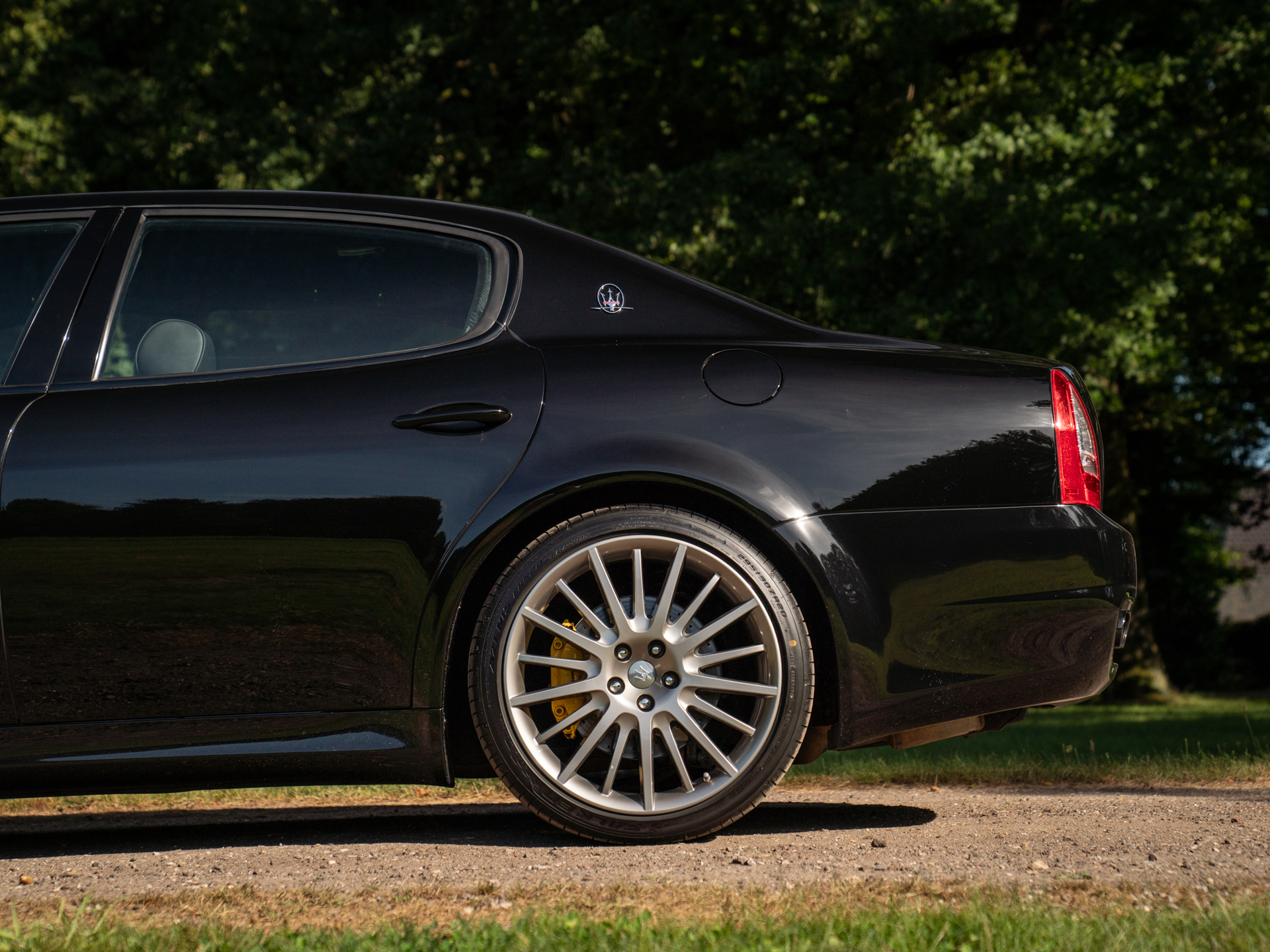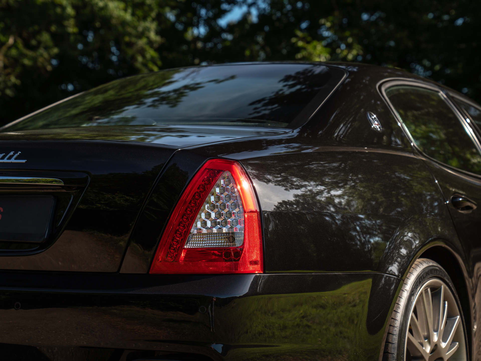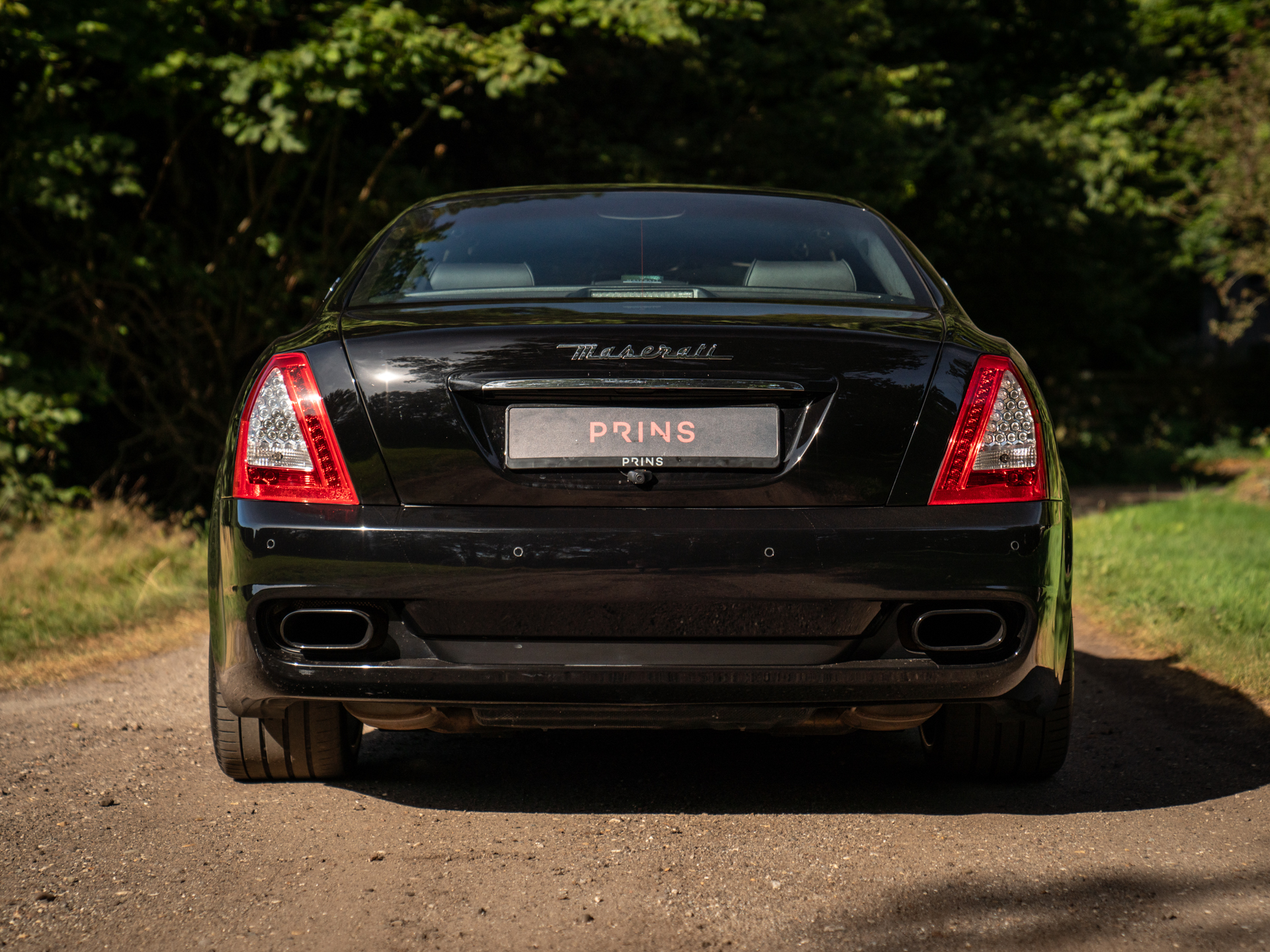 Dit is zonder meer de heilige graal in de wereld van auto’s: de Maserati Quattroporte 4.7 Sport GTS! De uitvoering der uitvoeringen van ’s werelds enige topklasse limousine die het pure sportwagen-DNA op een hoogst stijlvolle manier heeft weten te verpakken. Zoals alleen Italianen dat kunnen! Wat dit specifieke exemplaar nog eens extra zeldzaam, legendarisch en begerenswaardig maakt? Een heleboel… Zo is de staat subliem, het onderhoud door de Maserati dealer uitgevoerd en de samenstelling werkelijk beeldschoon! Highlights zijn onder andere de alcantara interieurfinish, carbon interieurdetails en de super subtiele – maar oh zo effectieve verlaging van het onderstel… Origineel van Maserati! Af-fabriek werd ook het Bose Surround Sound systeem ingebouwd. Maar dit zal met een dubbelgevoel zijn gebeurd, want niets gaat boven de sound van atmosferische Ferrari V8. Laat staan als die voorin de neus van Maserati’s grootste sportsedan ligt!