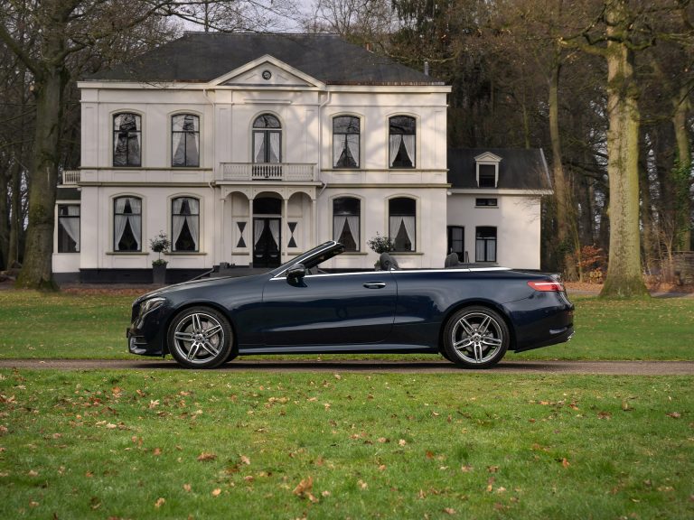 De E-Klasse Cabriolet kent een rijker verleden dan zijn naam doet vermoeden. Vorig decennium voerde het merk met de ster namelijk en naamswijziging door die duidelijkheid moest scheppen in de rangeorde van de Mercedes modellen. Eerder ging de E-Klasse Cabrio namelijk door het leven als CLK, die doet vermoeden dat de auto gebaseerd was op de C-Klasse. Maar dat is hij dus nooit geweest, in tegenstelling tot de CLC. Volgt u ons nog? Hoe dan ook, dit betreft het pre-faceliftmodel van de meest recente generatie Mercedes E-Klasse Cabriolet (codenaam A238); een auto die wezenlijk anders is dan de veel hoekigere A207. Daarmee volgden ze de lijn van de executive sedans (respectievelijk W213 en W212) waarop deze modellen gebaseerd zijn. Het gestrekte koetswerk zet de elegante toon en dankzij het diep donkerblauwe Cavansitblau metallic lakwerk ligt het accent letterlijk op het cachet waarmee de Mercedes A238 zich weet te onderscheiden van de minder verfijnde concurrentie uit eigen land. Het AMG exterieur designpakket doet de krachtige prestaties van de open Benz recht toe en bestaat uit gerestylede bumperpartijen, grotere luchtinlaten en schitterend gepolijste wielen in 5-spaak ster-design met daarachter zilveren remklauwen die qua kleur perfect zijn afgestemd op de vele aluminium en chromen contrastdetails.