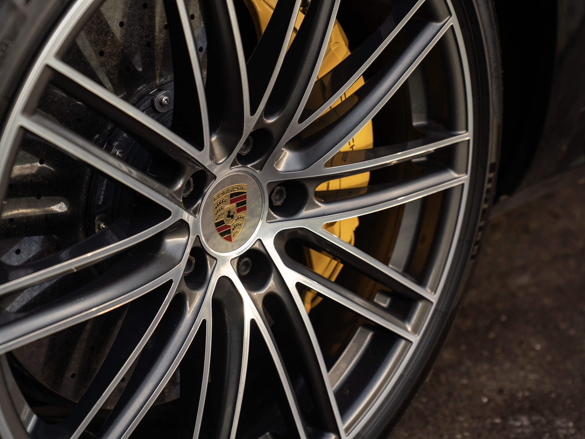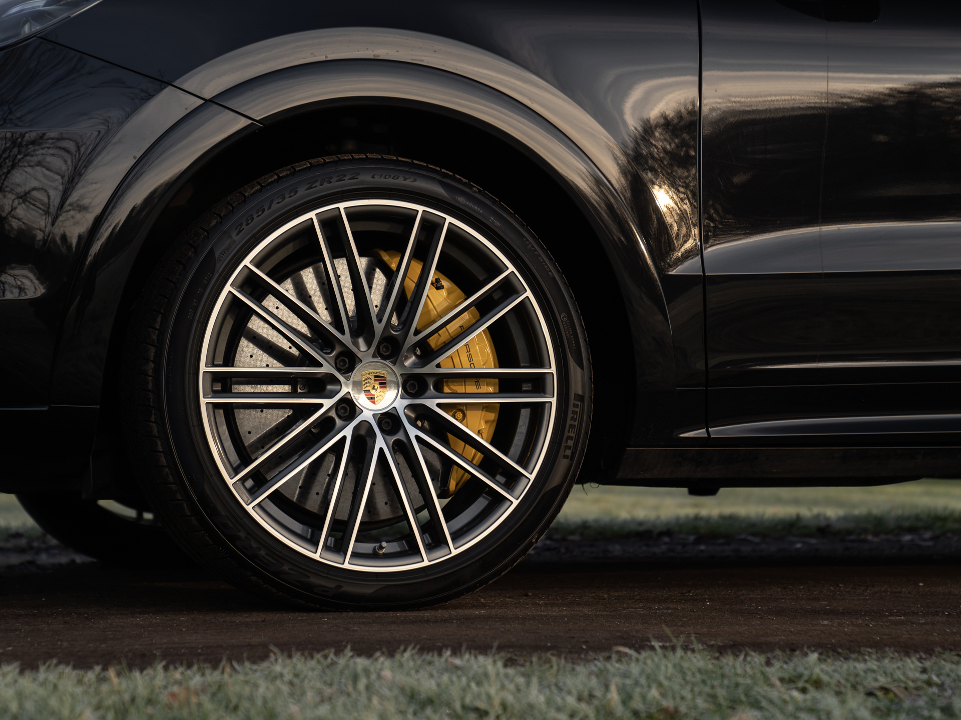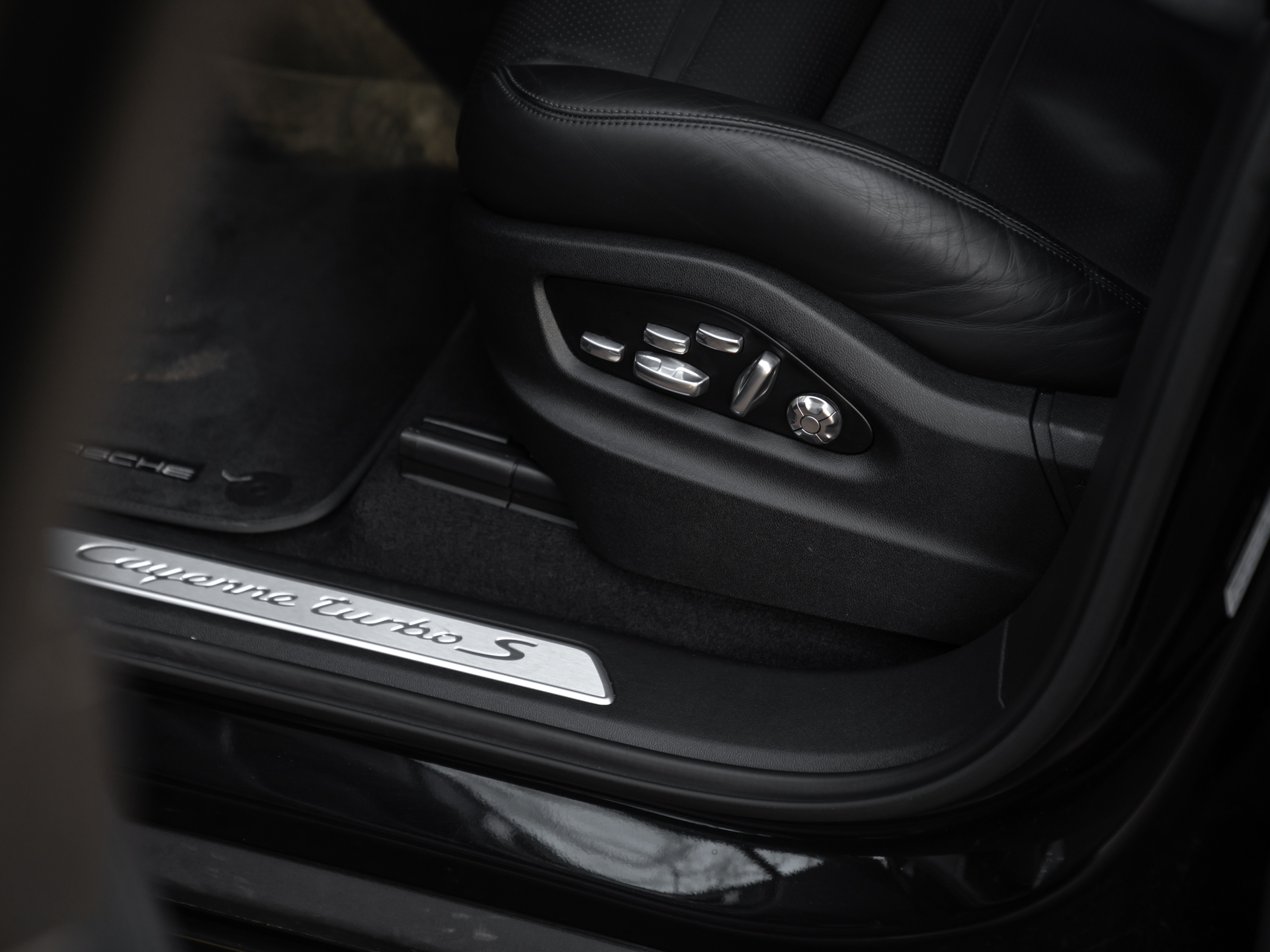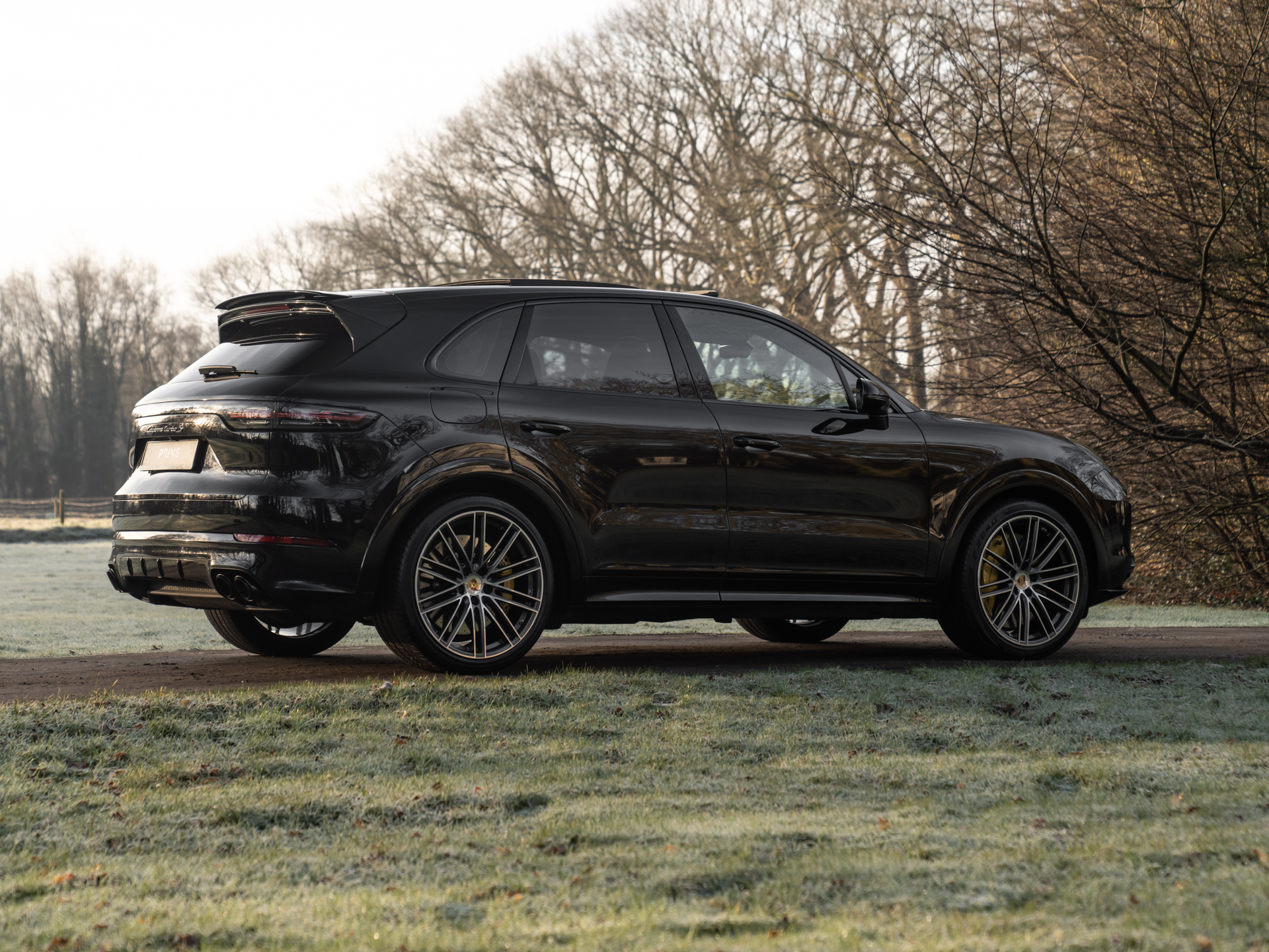 Met de eerste generatie Cayenne drukte Porsche haar stempel op de Performance-SUV. Velen geloofden niet in het concept, maar tegenwoordig valt een hoge topsporter in het hoge segment niet meer weg te denken onder de zichzelf respecterende sportautomerken. Aan de absolute top van de voorlaatste serie Porsche Cayenne’s staat deze Turbo S E-Hybrid. Ons exemplaar dikt zijn spierballen extra aan door middel van het SportDesign pakket. Geprononceerdere bumperspoilers, sideskirts, alsook de (verstelbare!) dakspoiler maken optisch het verschil. Achter de two-tone multi-spaakwielen schuilen gigantische gele remklauwen die nog indrukwekkendere keramische schijven vastgrijpen. De LED Matrix-koplampen zitten standaard verscholen in een donkere koplampbehuizing, welke naadloos aansluit op de Diepzwart metallic carrosserie. Ook de eindstukken van de sportuitlaat zijn alvast zwart gemaakt, want dat worden ze toch na een stevige rit…