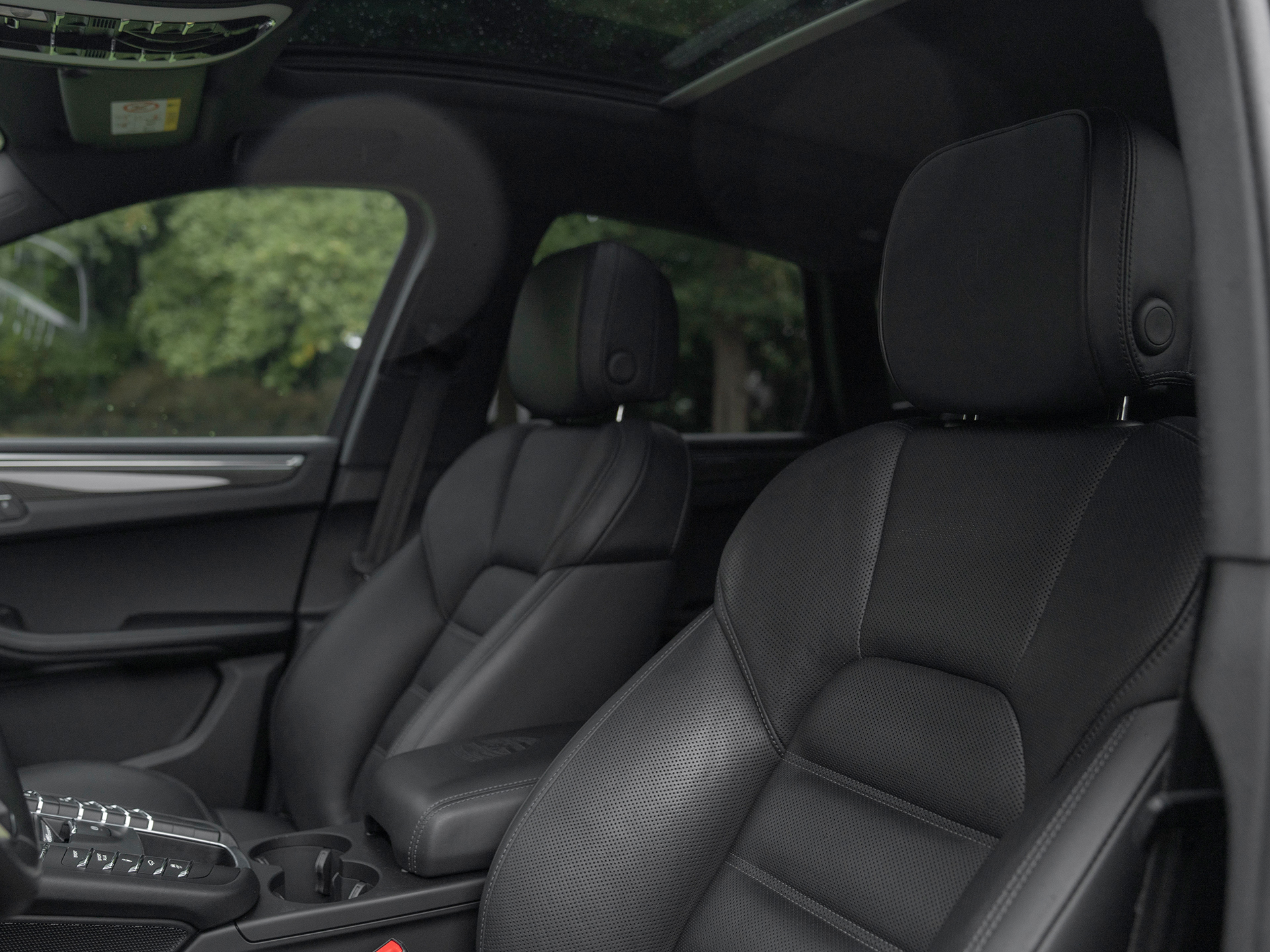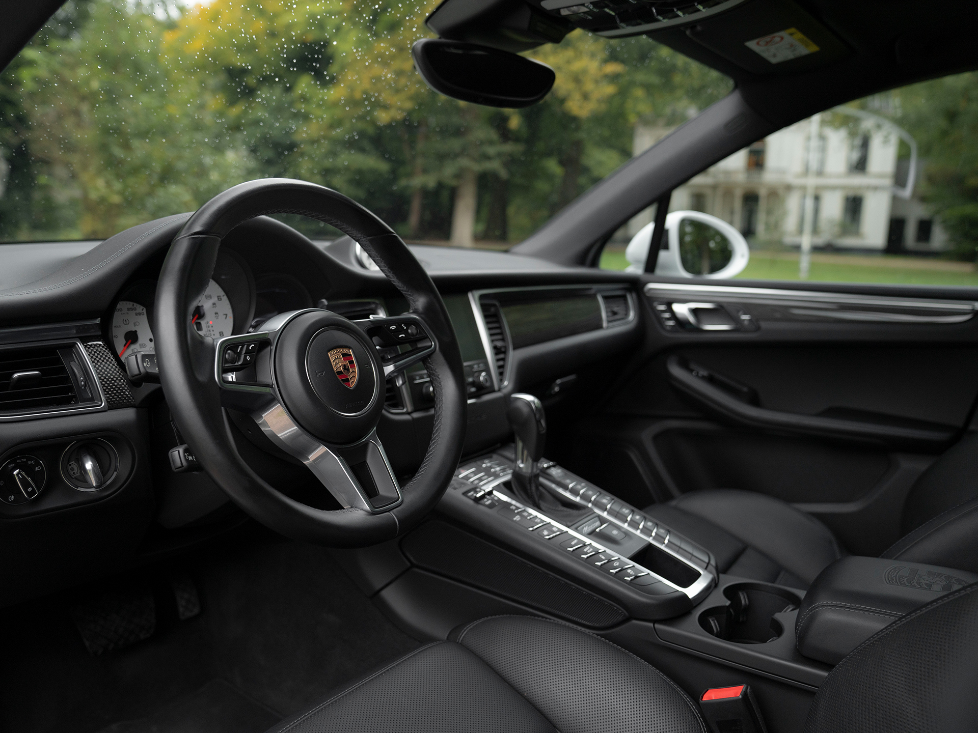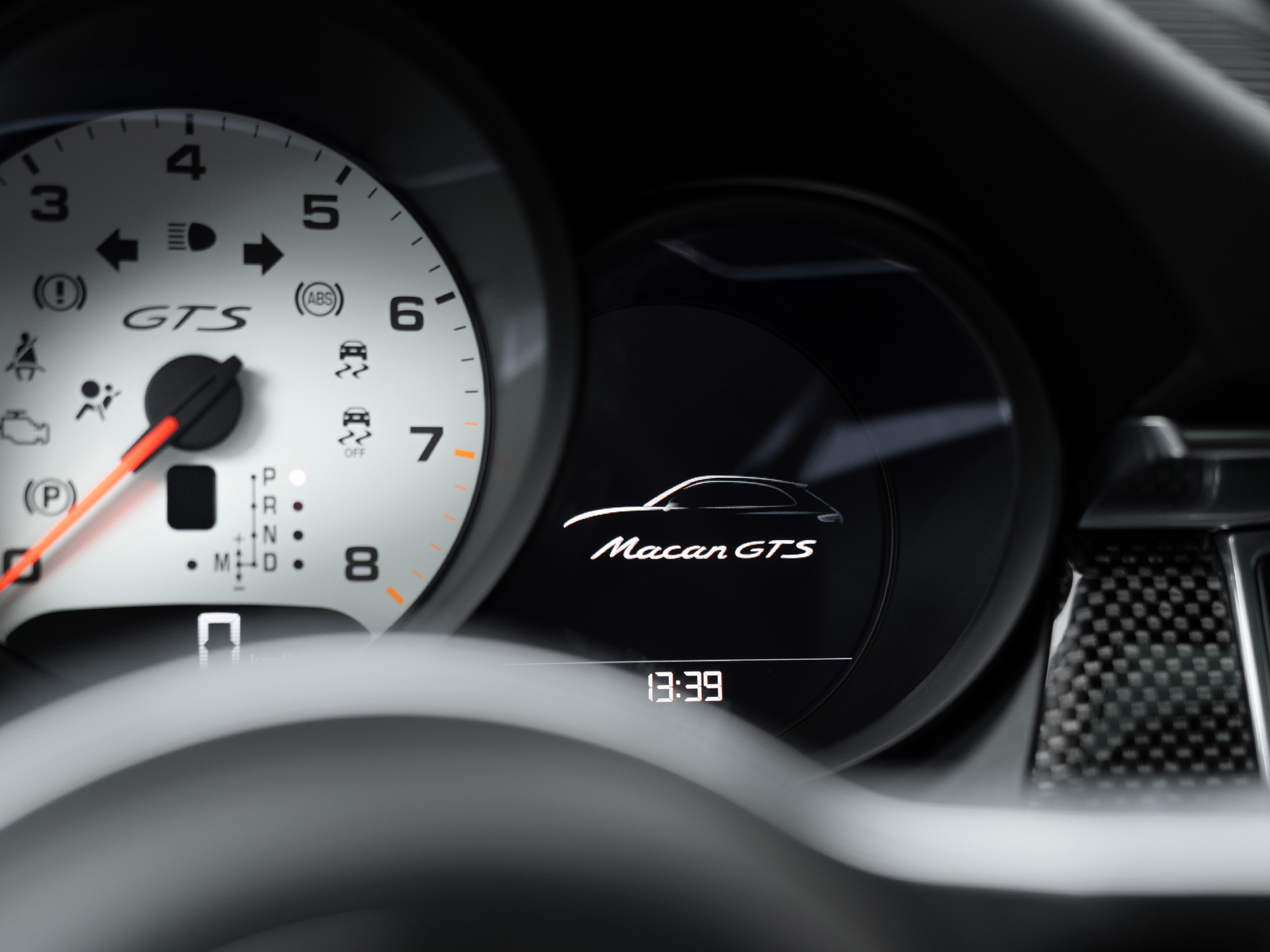 Het genoemde klokje is onderdeel van het gelijknamige pakket, zoals we dat van Porsche kennen. Maar dat de GTS-versie volgens traditie een heerlijke afstandscruiser is, wordt ook bij deze Macan weer eens bevestigd: de Adaptieve Sportstoelen zijn 18-voudig elektrisch verstelbaar, bevatten een memoryfunctie én zijn zowel te koelen als te verwarmen. Ondersteunend aan comfortabel rijden + parkeren zijn de luchtvering (inclusief niveauregeling en hoogteverstelling), rijstrookwisselhulp, achteruitrijcamera en HomeLink garagedeuropener. Het grote glazen panoramadak en Bose Surround Sound zorgen ondertussen voor een prettige ambiance voor alle inzittenden. Echter, sta niet raar te kijken als tijdens een comfortabele rit de zintuigen spontaan op scherp worden gezet: Porsche Active Suspension Management (PASM) staat immers symbool voor maximale rijdynamiek. Over dynamiek gesproken: de LED-koplampen zijn uitgerust met Porsche Dynamic Light System Plus (PDLS+) voor een optimale lichtbundel onder alle omstandigheden. En word je niet gezien, dan wel gehoord dankzij de opzwepende sound van de sportuitlaat zodra de Macan GTS tot het uiterste wordt gedreven.